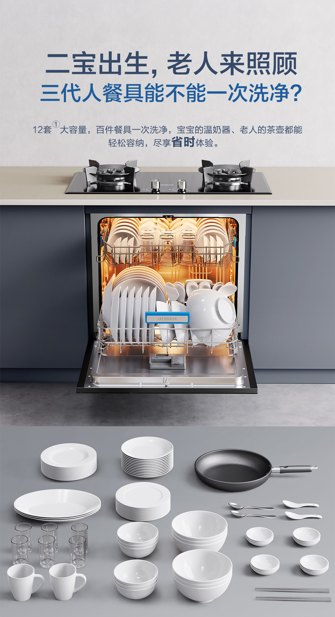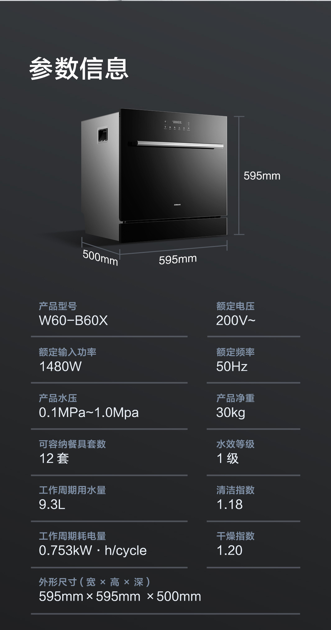 【灶下系列】老板官方B60X洗碗机12套大容量全自动家用小型嵌入式
