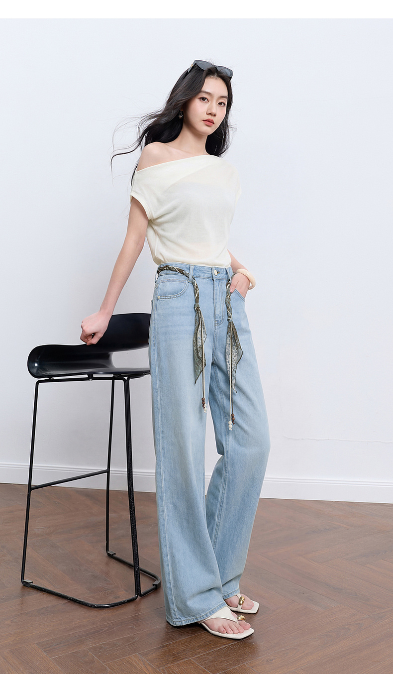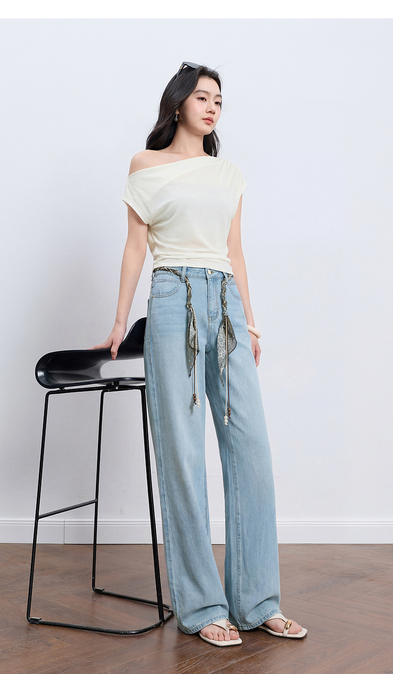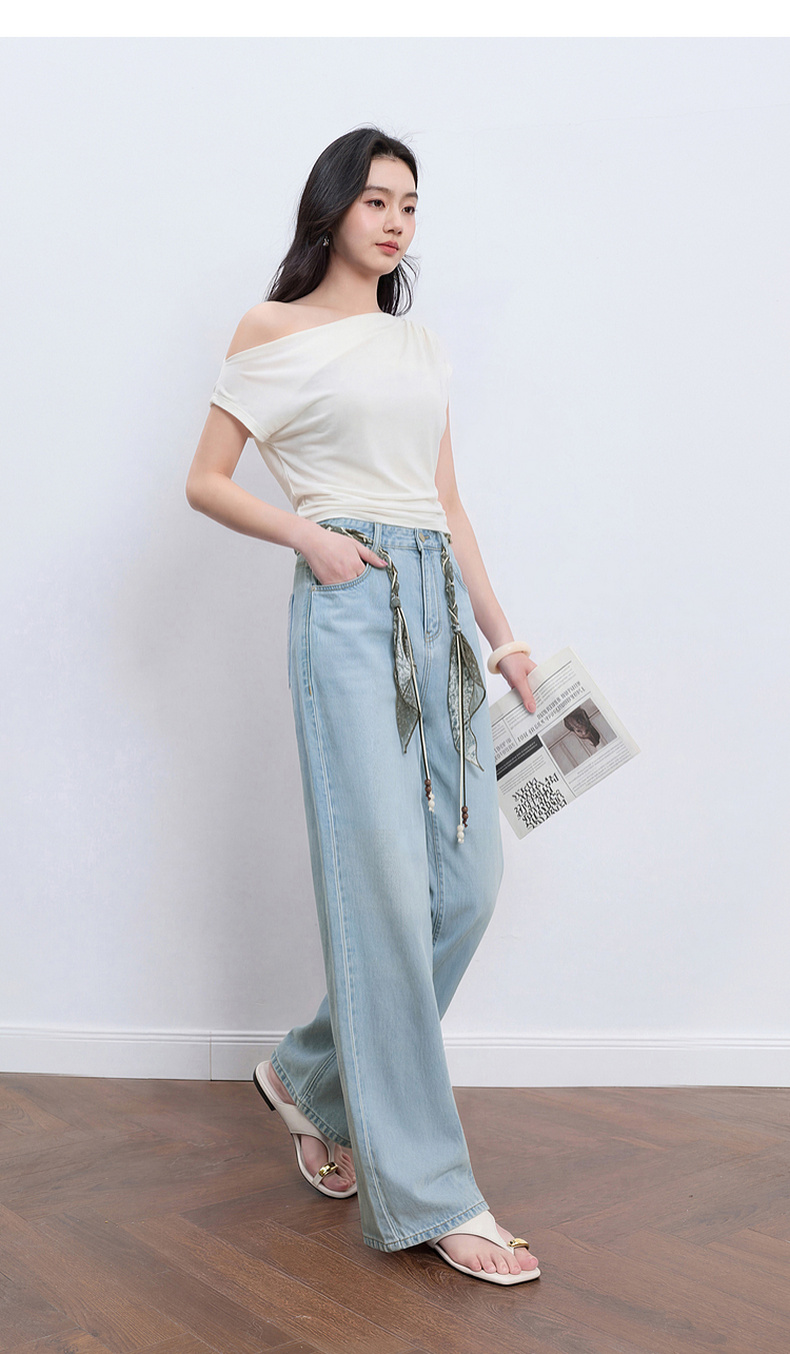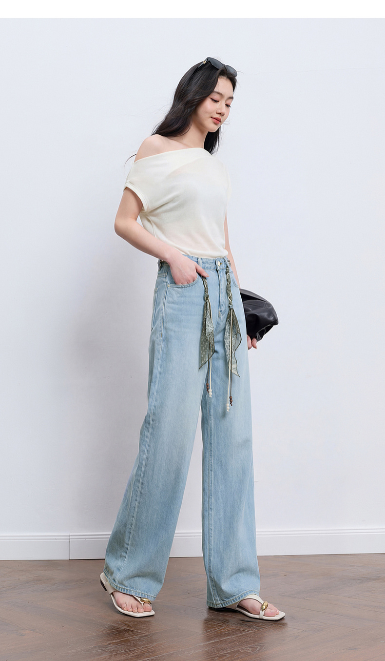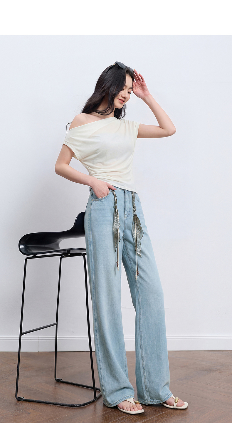 【莱赛尔】三彩2026夏季新款休闲裤牛仔裤高腰宽松直筒裤长裤S
