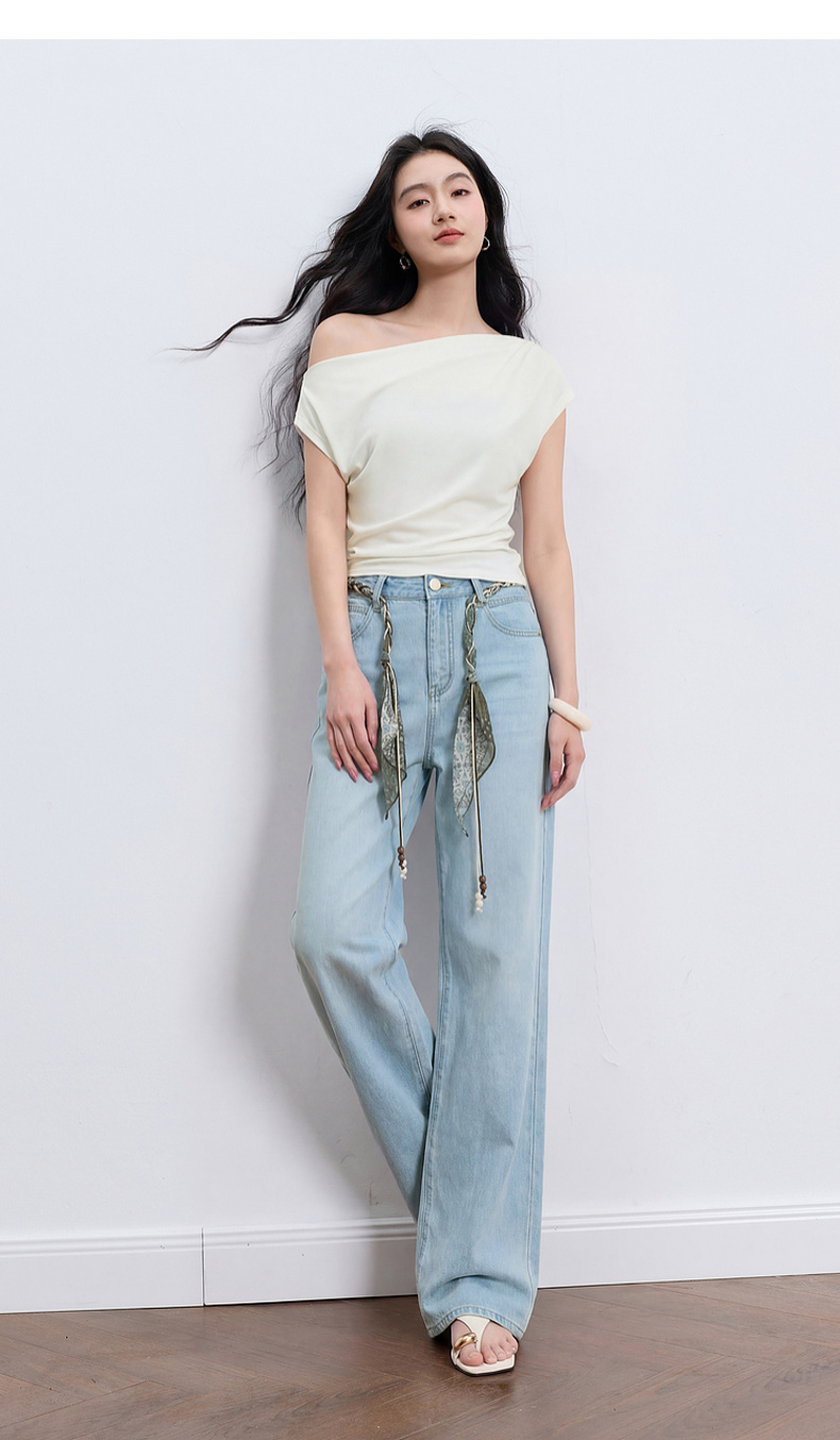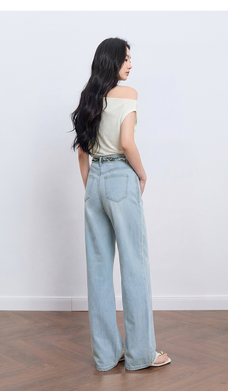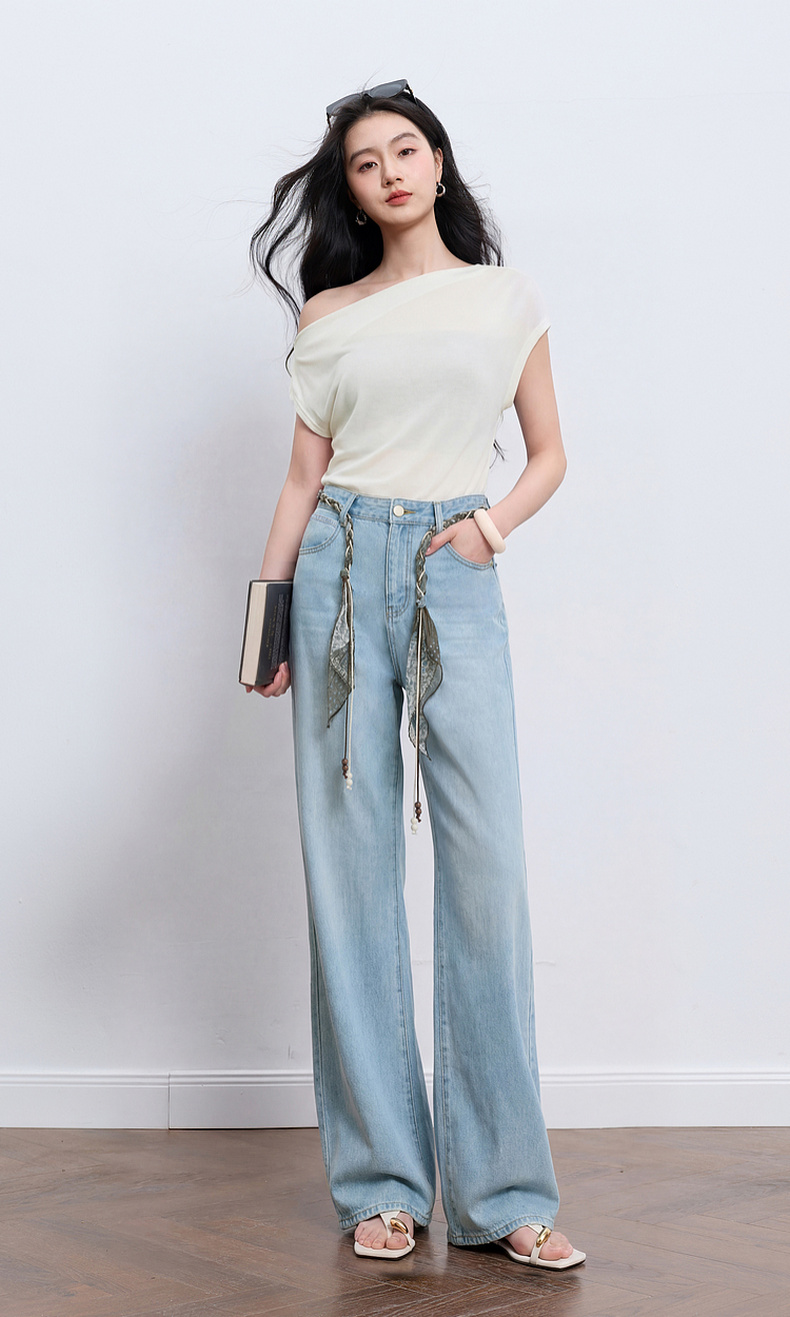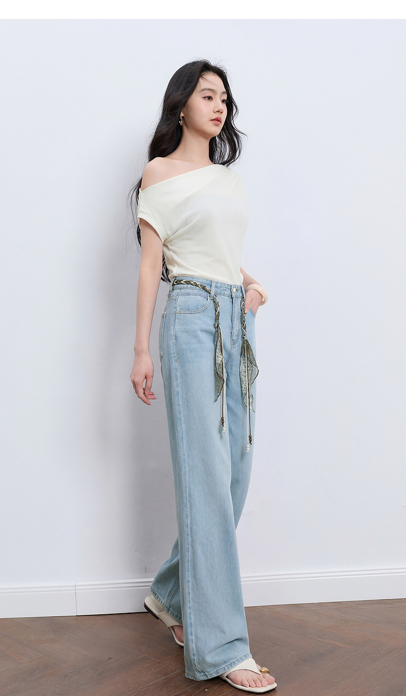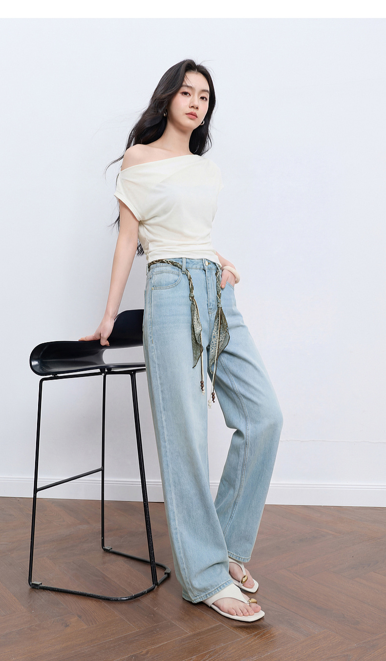 【莱赛尔】三彩2026夏季新款休闲裤牛仔裤高腰宽松直筒裤长裤S