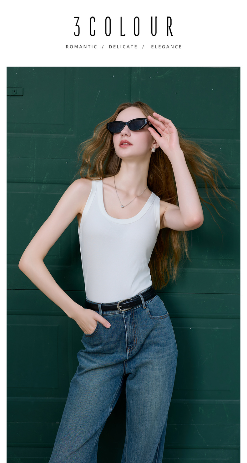 三彩2025秋季新款圆领无袖吊带背心修身短款显瘦打底外穿百搭M