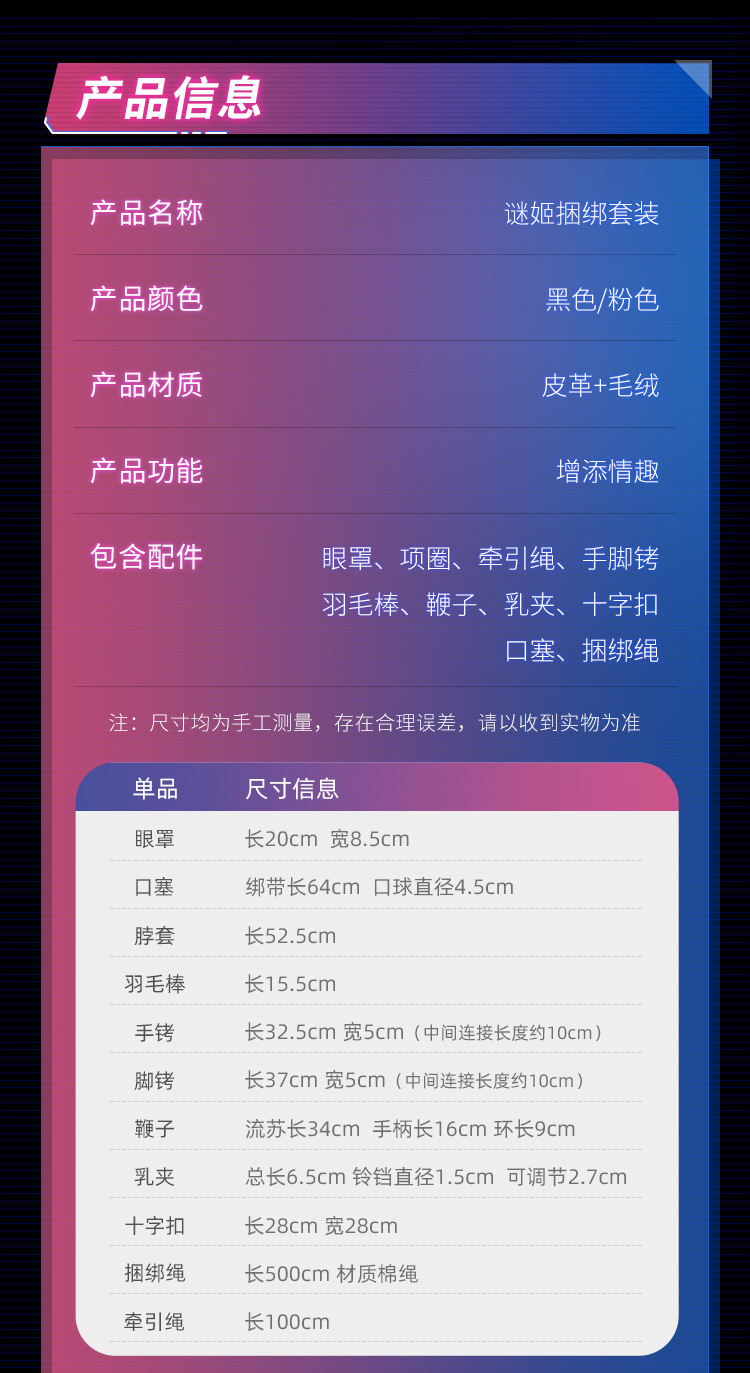【情趣用品】谜姬 sm皮革套装调情趣女用调教房趣玩具捆绑手铐十件套