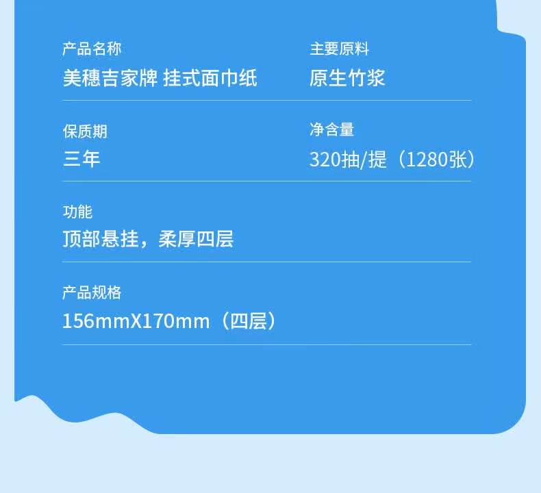 美穗吉家(mihooce)挂式面巾纸原生竹浆卫生纸餐巾纸擦手纸便利抽