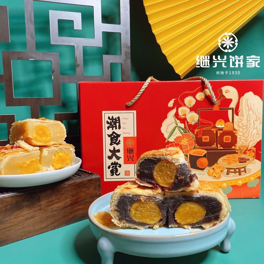 【寻味潮汕】继兴潮汕传统糕点朥饼纯豆沙老香黄芋泥双蛋黄口味2块袋装400g&600g