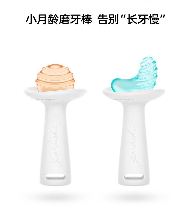 【牙医推荐】garkoko佳尔优优小月亮+小太阳磨牙棒婴儿牙胶两只装全硅胶咬胶安抚玩具