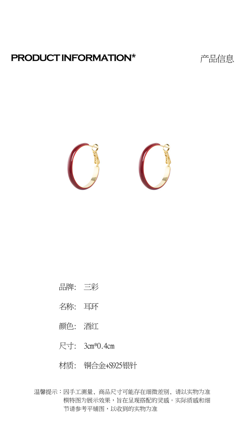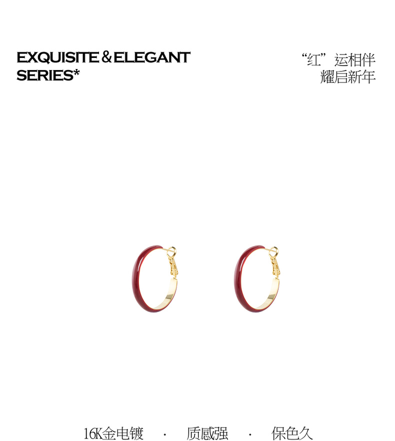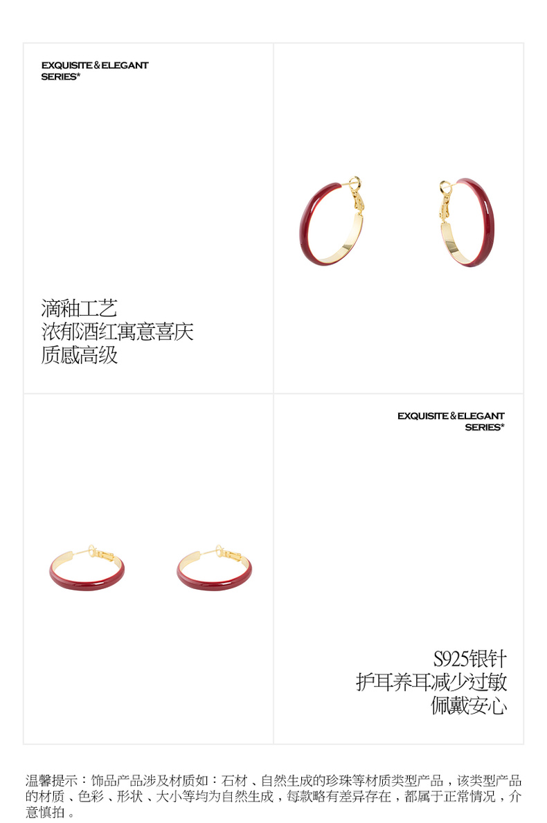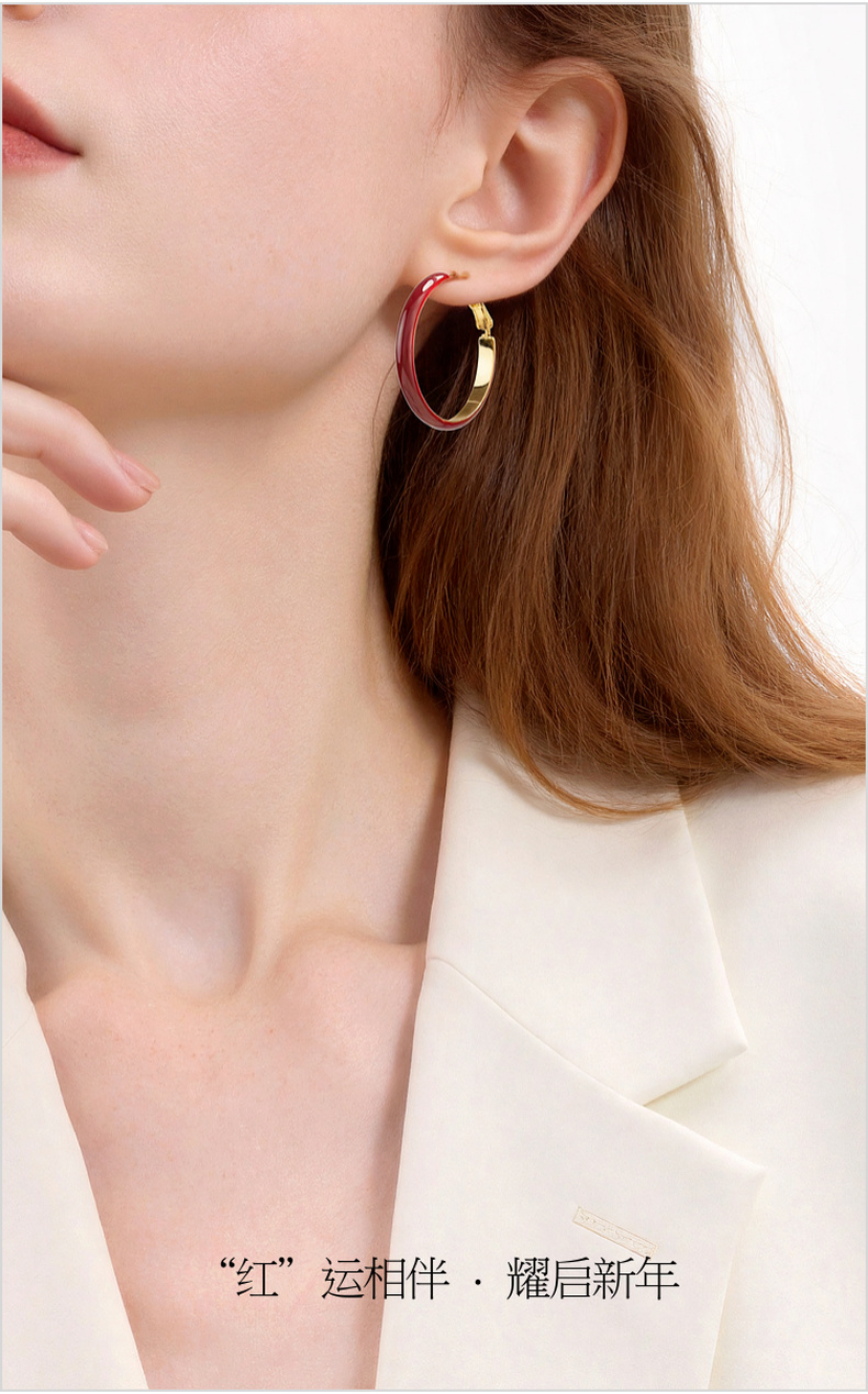 三彩2026新款新年酒红滴釉耳圈耳环S925银针复古国风喜庆聚会氛围