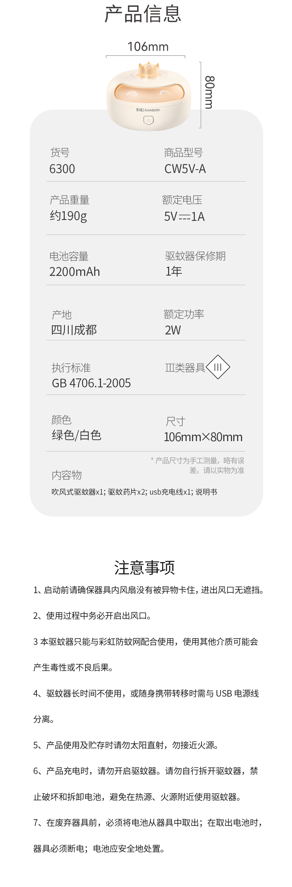 【Rainbow】彩虹便携式吹风驱蚊器6300