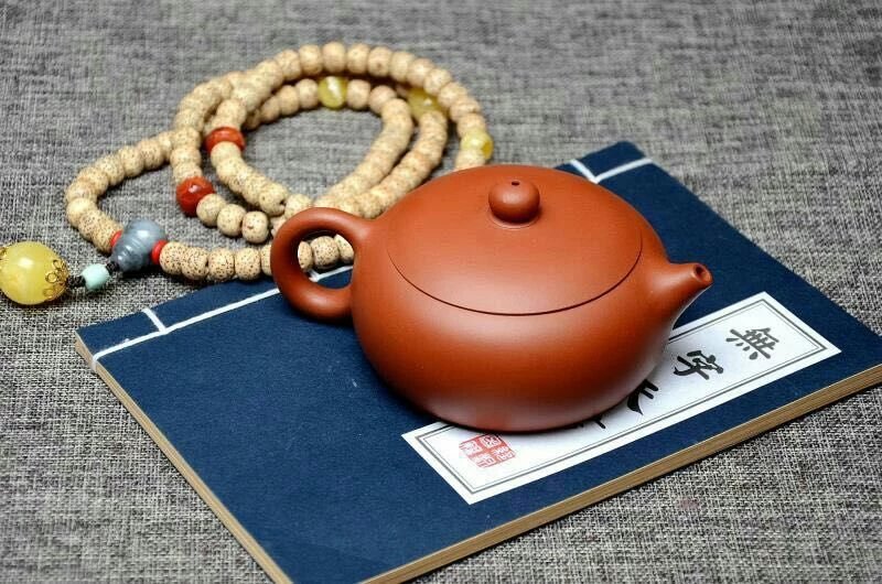 紫砂二厂老料小红泥精制。 “小红泥”是不加他料的嫩泥,含大量氧化铁,经过窑烧会变成朱红色,泥质细、砂粒微、密度大、结晶高。窑温约为1080℃,收缩比约在20%~28%之间。 红而不艳,红得柔美,是红泥色泽特点。