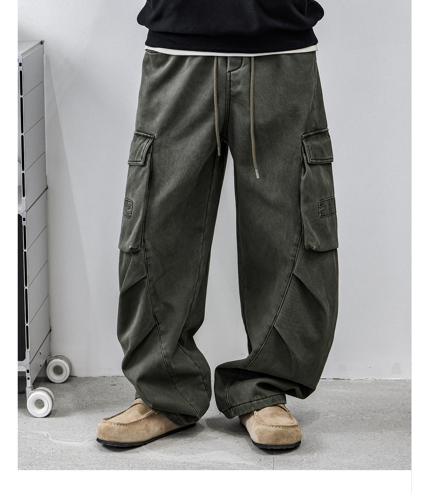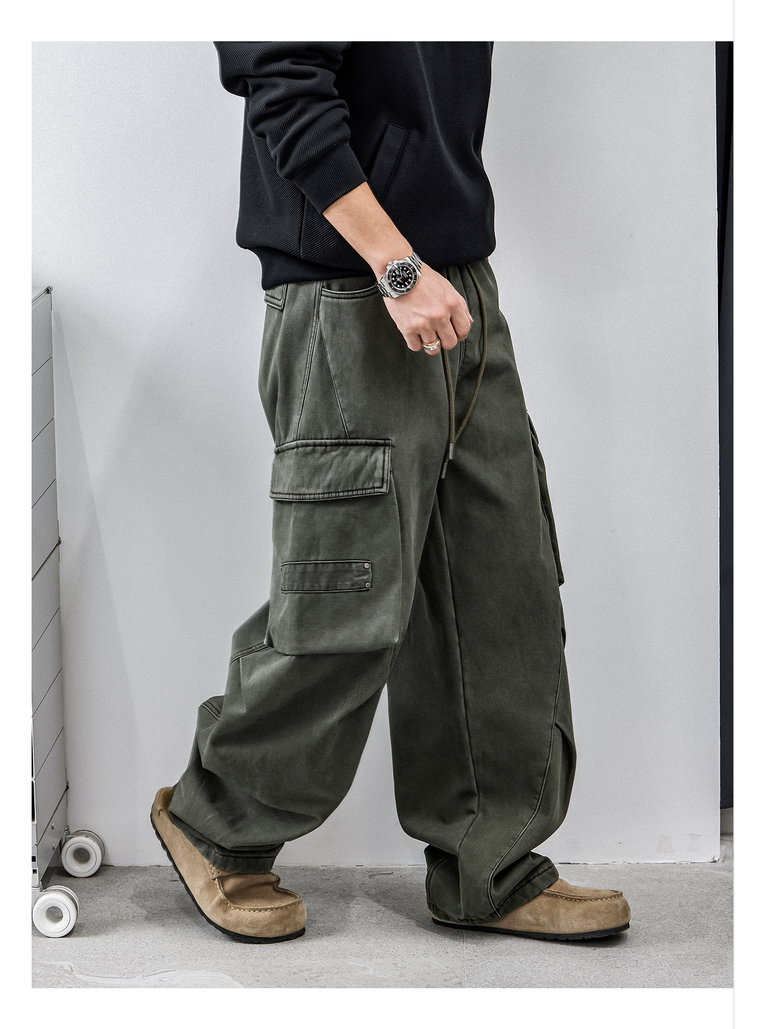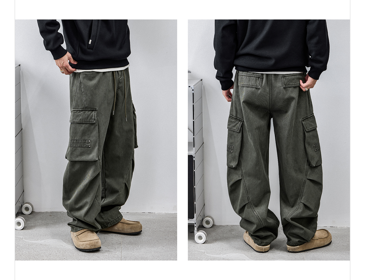 徐太浪【多口袋 立体裁剪】复古绿色工装裤男秋冬宽松直筒休闲裤
