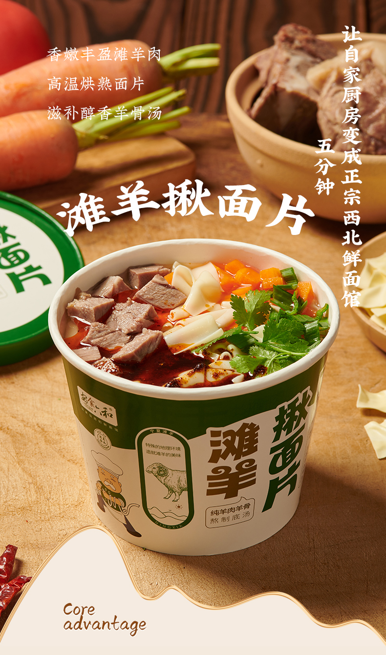 安食六和宁夏滩羊揪面片速食非油炸酸汤面叶羊肉汤泡面122g*6桶装