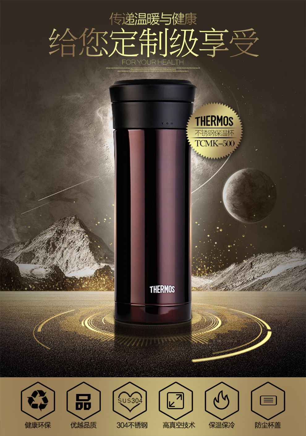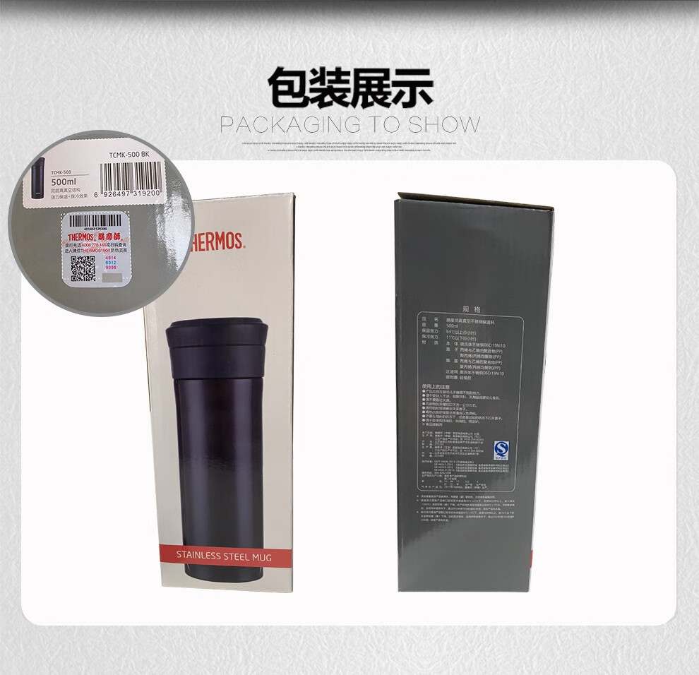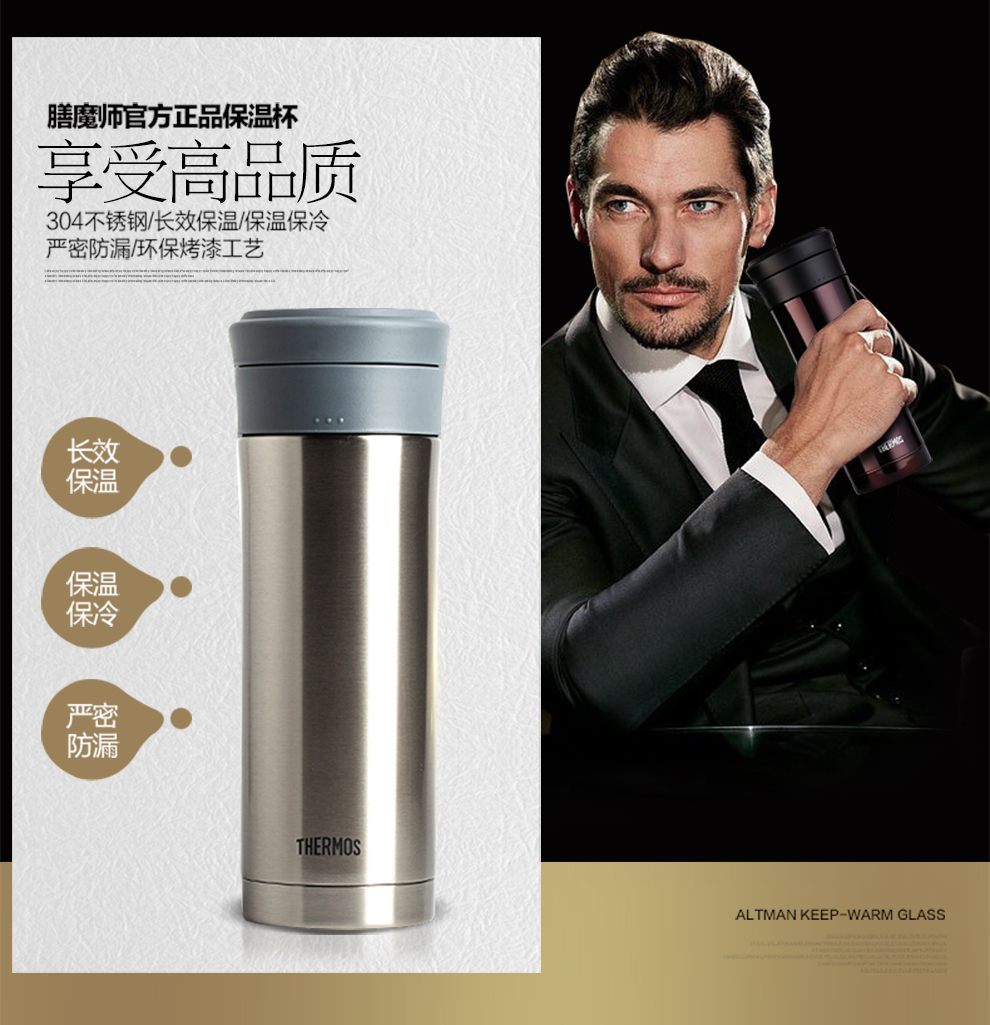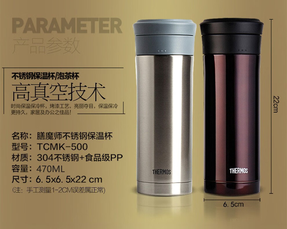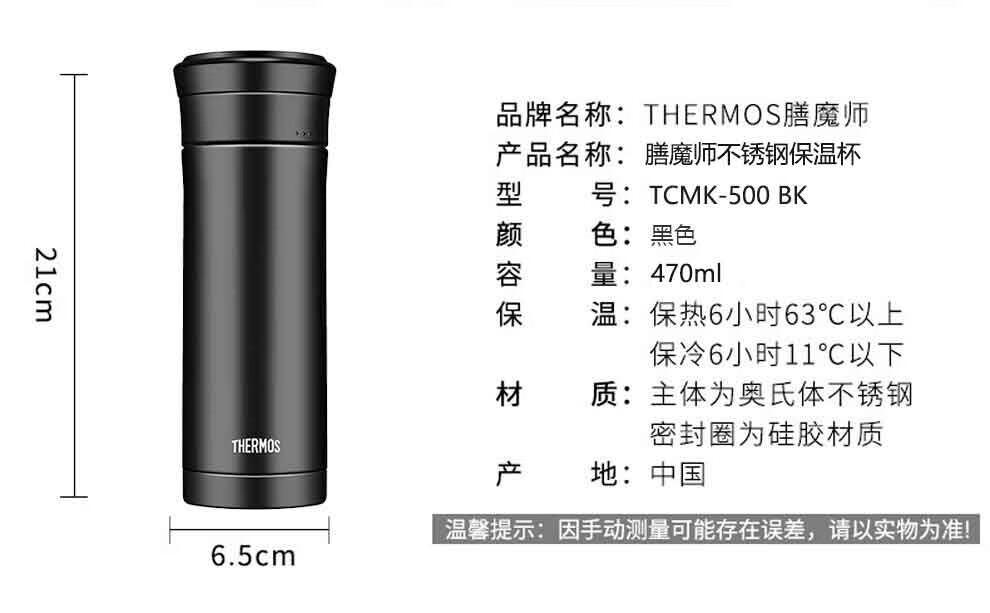 膳魔师(THERMOS) 保温杯男女不锈钢商务办公滤网泡茶水杯子TCMK-500 黑色