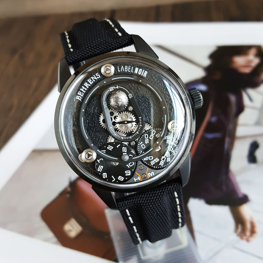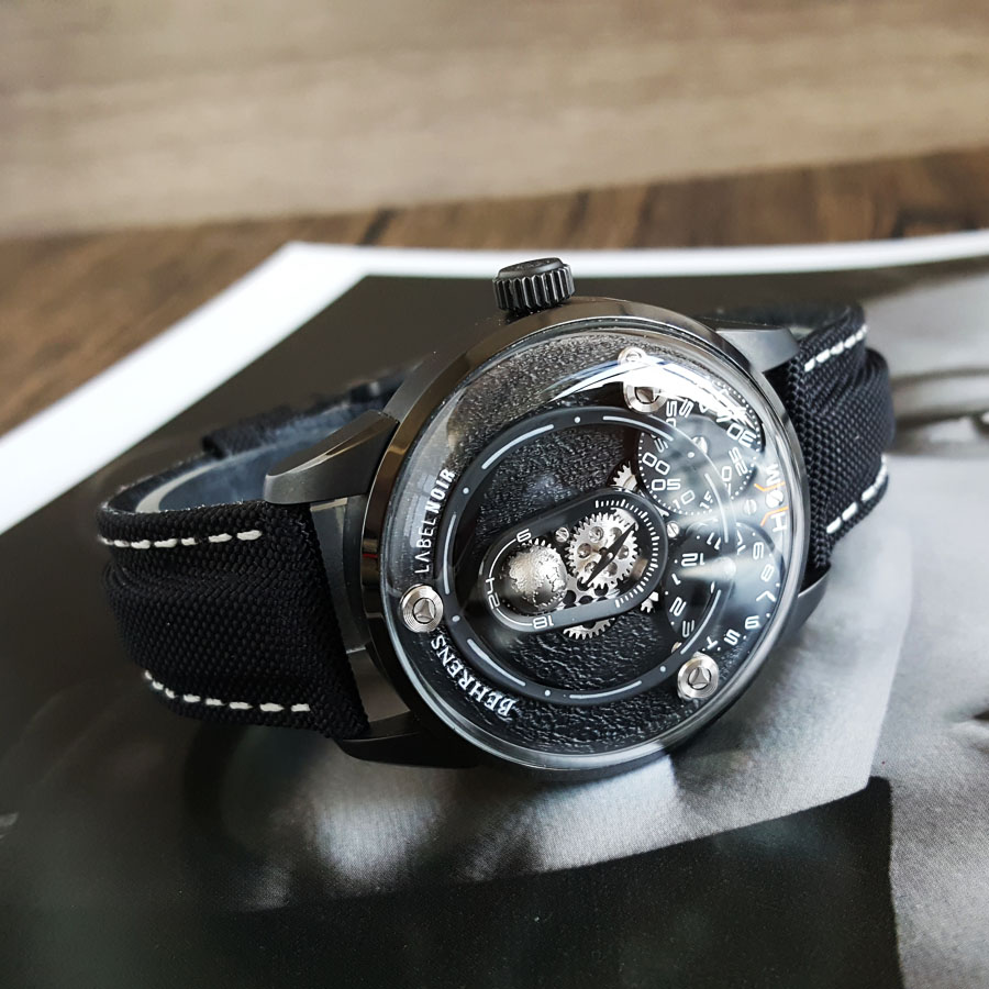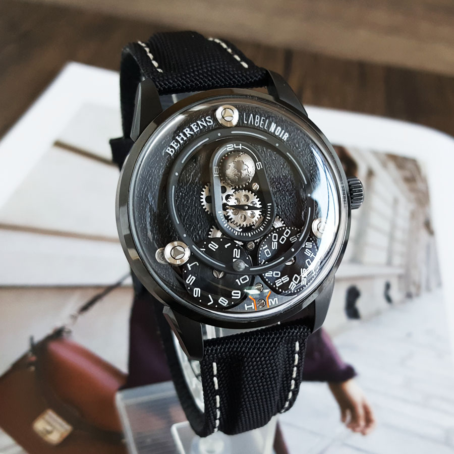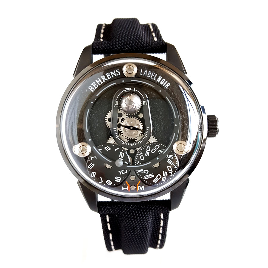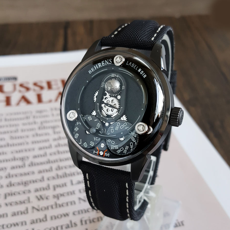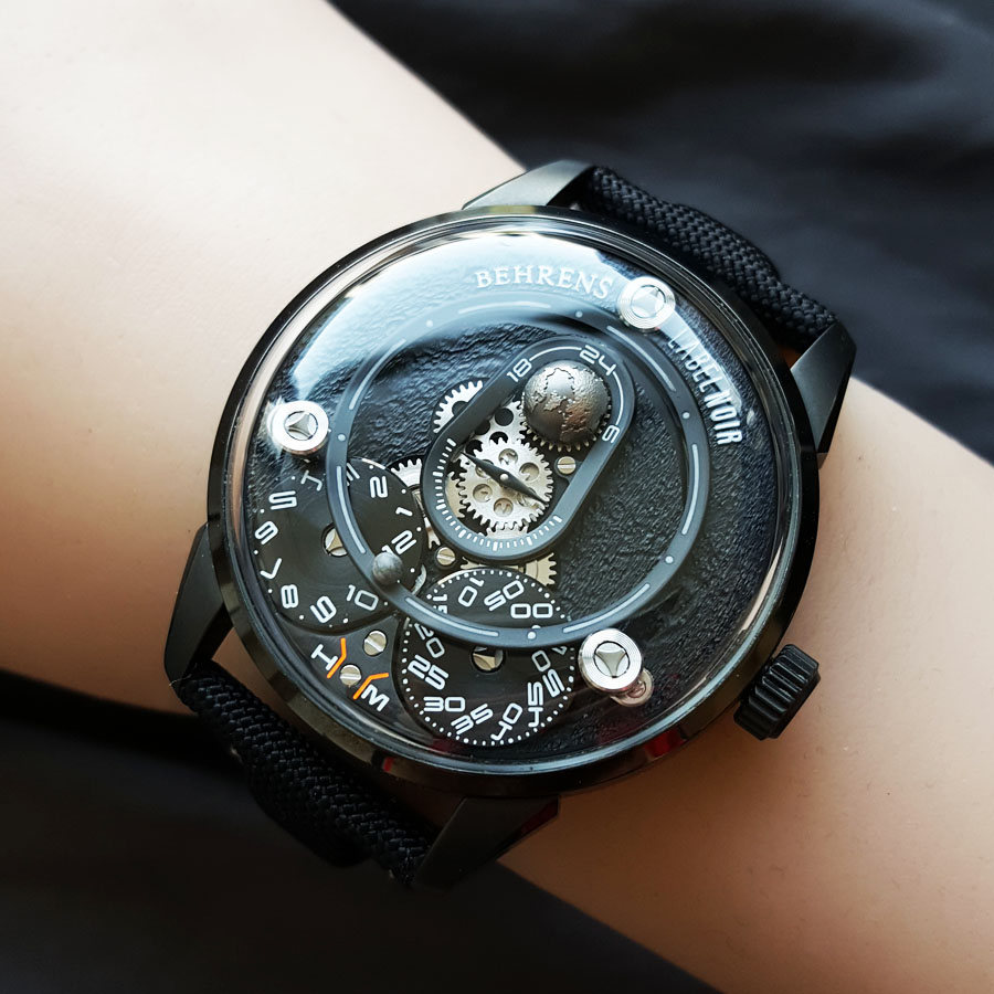 【95新】BEHRENS 贝伦斯BHR020自动机械机芯24小时显示;模拟地月系统的公转与自转42MM(男款)创想家系列黑钢250126JJ02