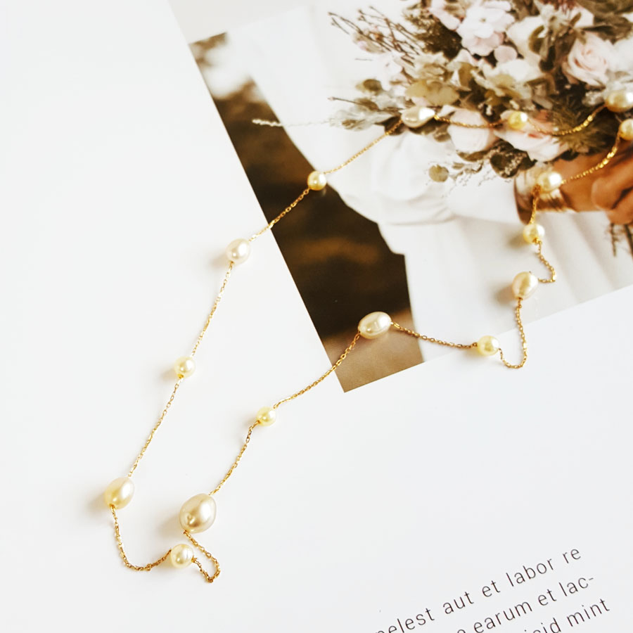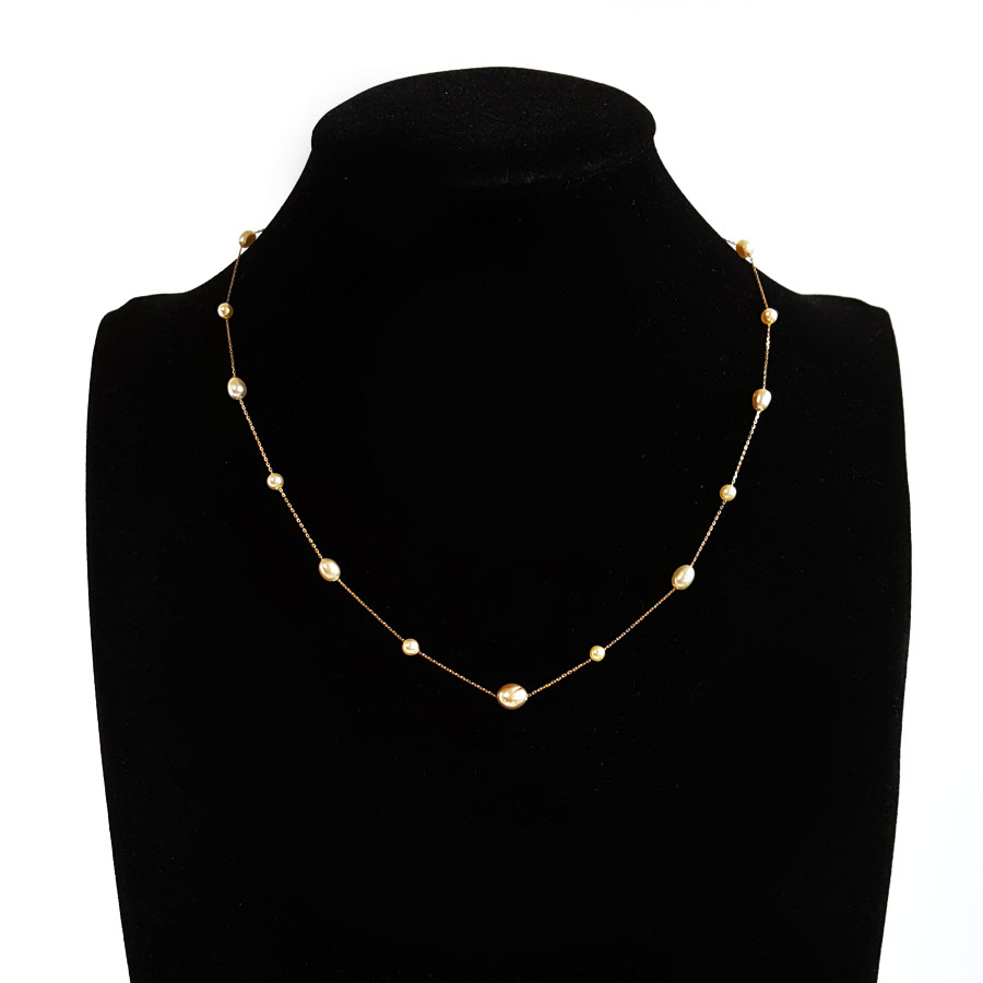 名称 | AU750黄金镶天然香槟金色巴洛克海水珍珠项链 |