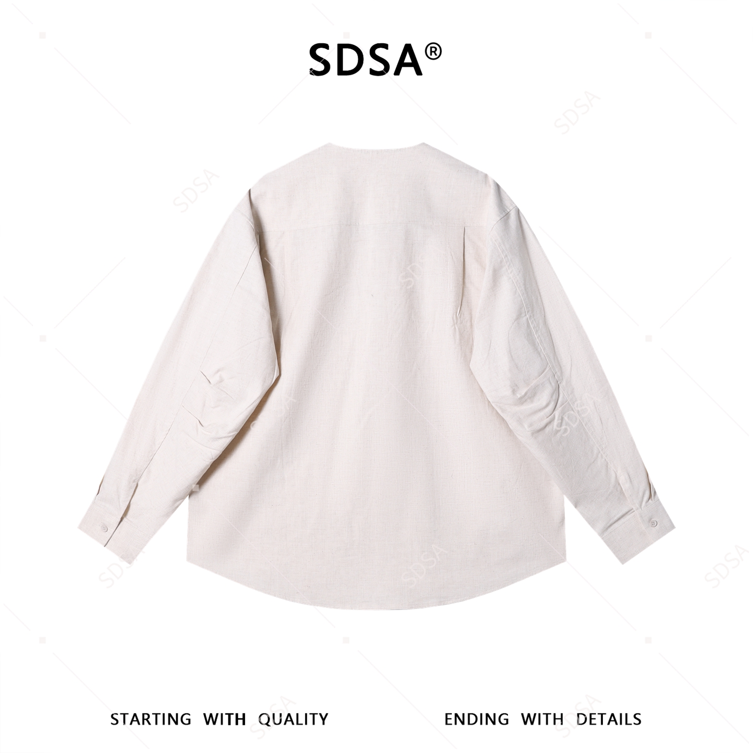 SDSA男装2026新款高贵轻奢宽松慵懒亨利领衬衫通勤百搭套头上衣