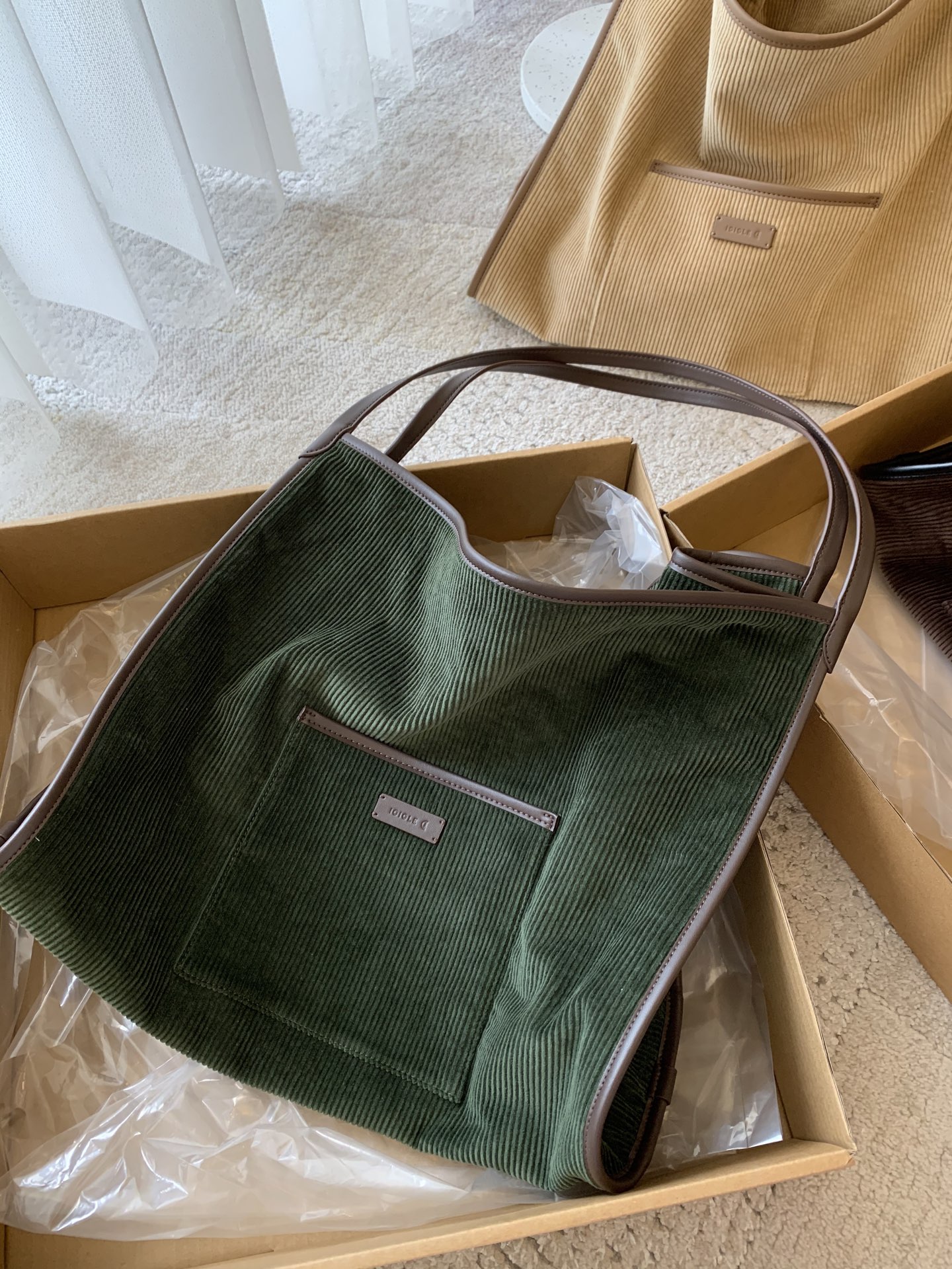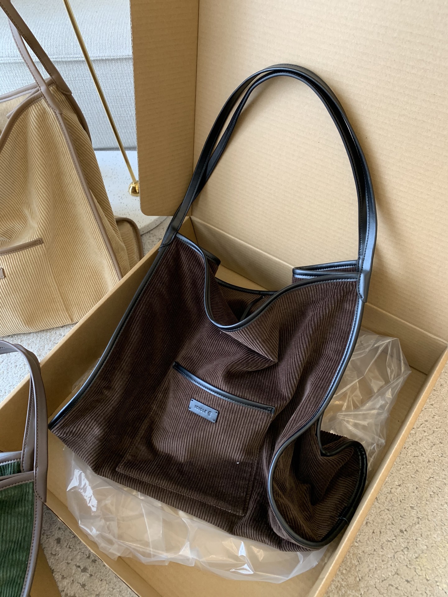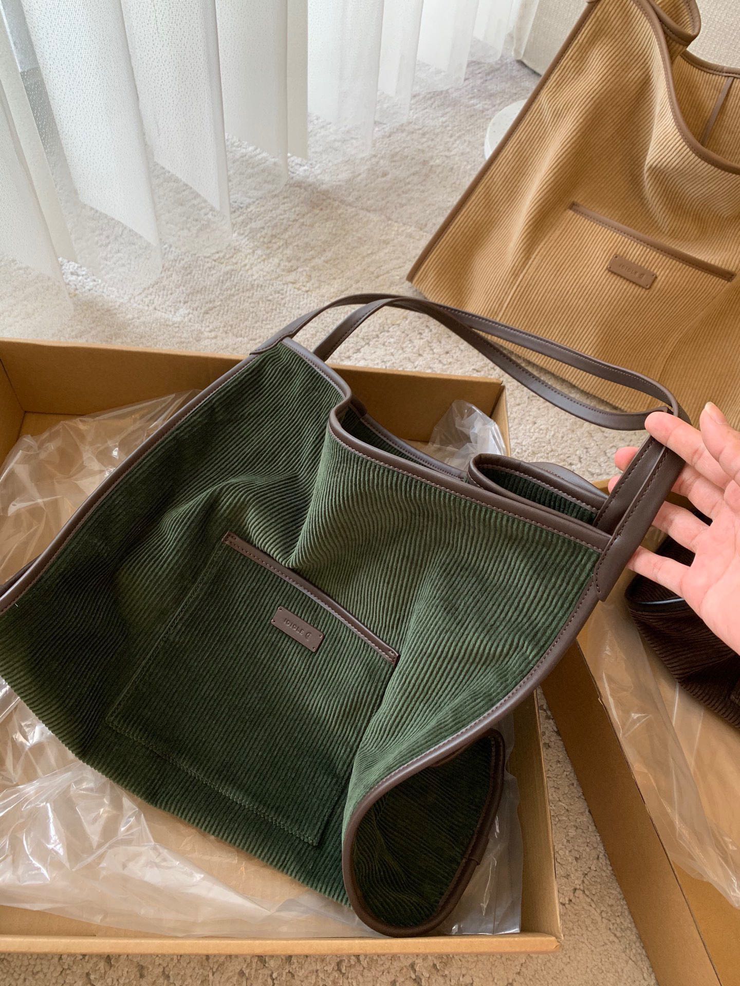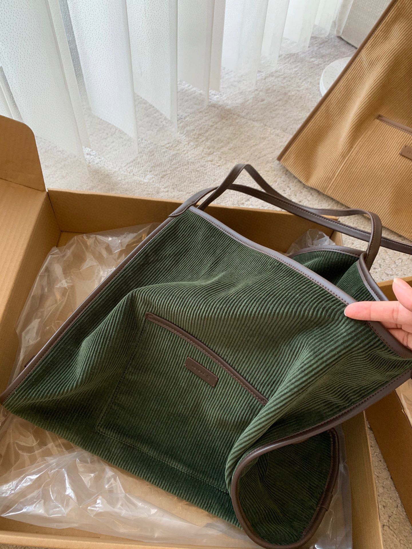继春夏的帆布包后又出了灯芯绒材质,一看就很有质感,每个颜色都疯狂心动,又是纠结症发作的一天,哈哈!包装有大盒子,还有一个防尘袋