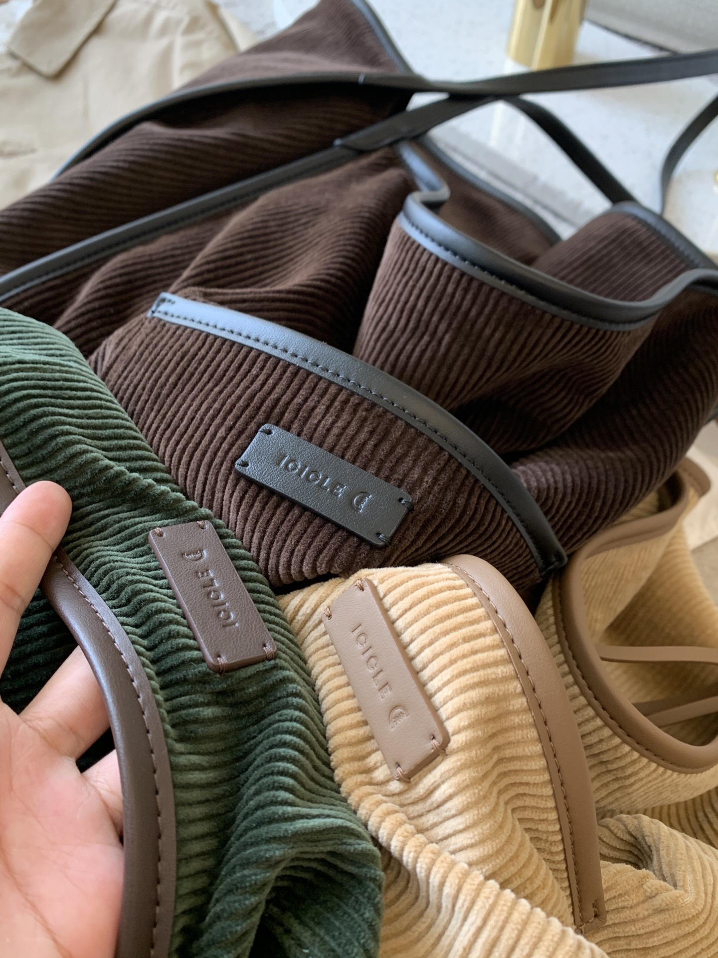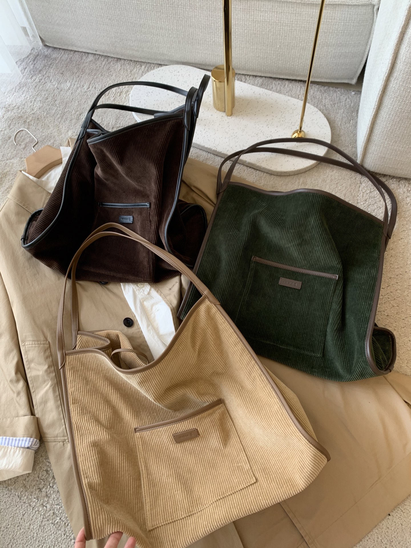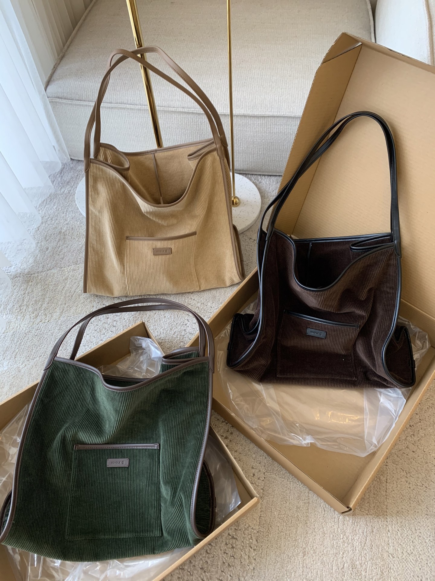 继春夏的帆布包后又出了灯芯绒材质,一看就很有质感,每个颜色都疯狂心动,又是纠结症发作的一天,哈哈!包装有大盒子,还有一个防尘袋