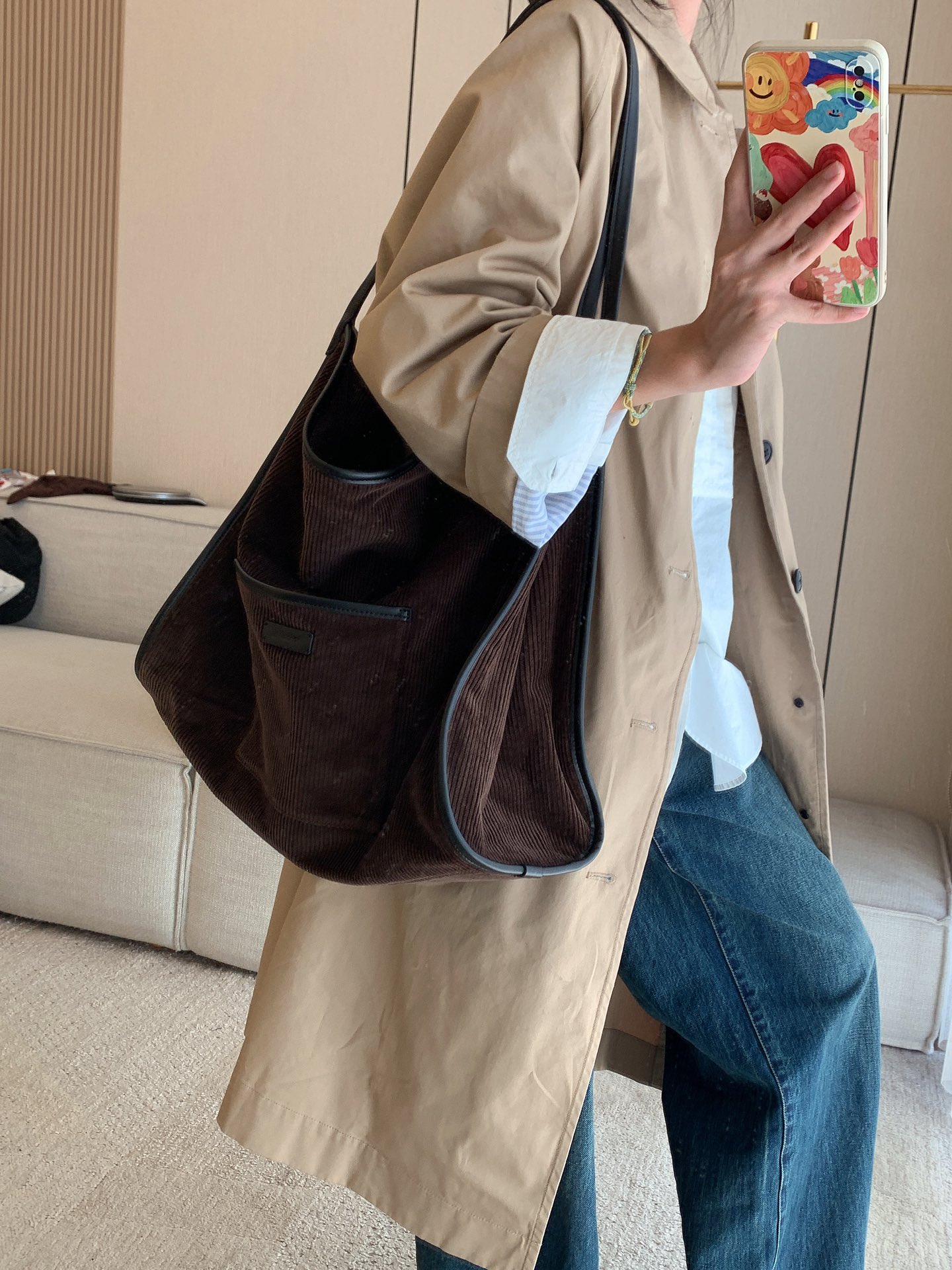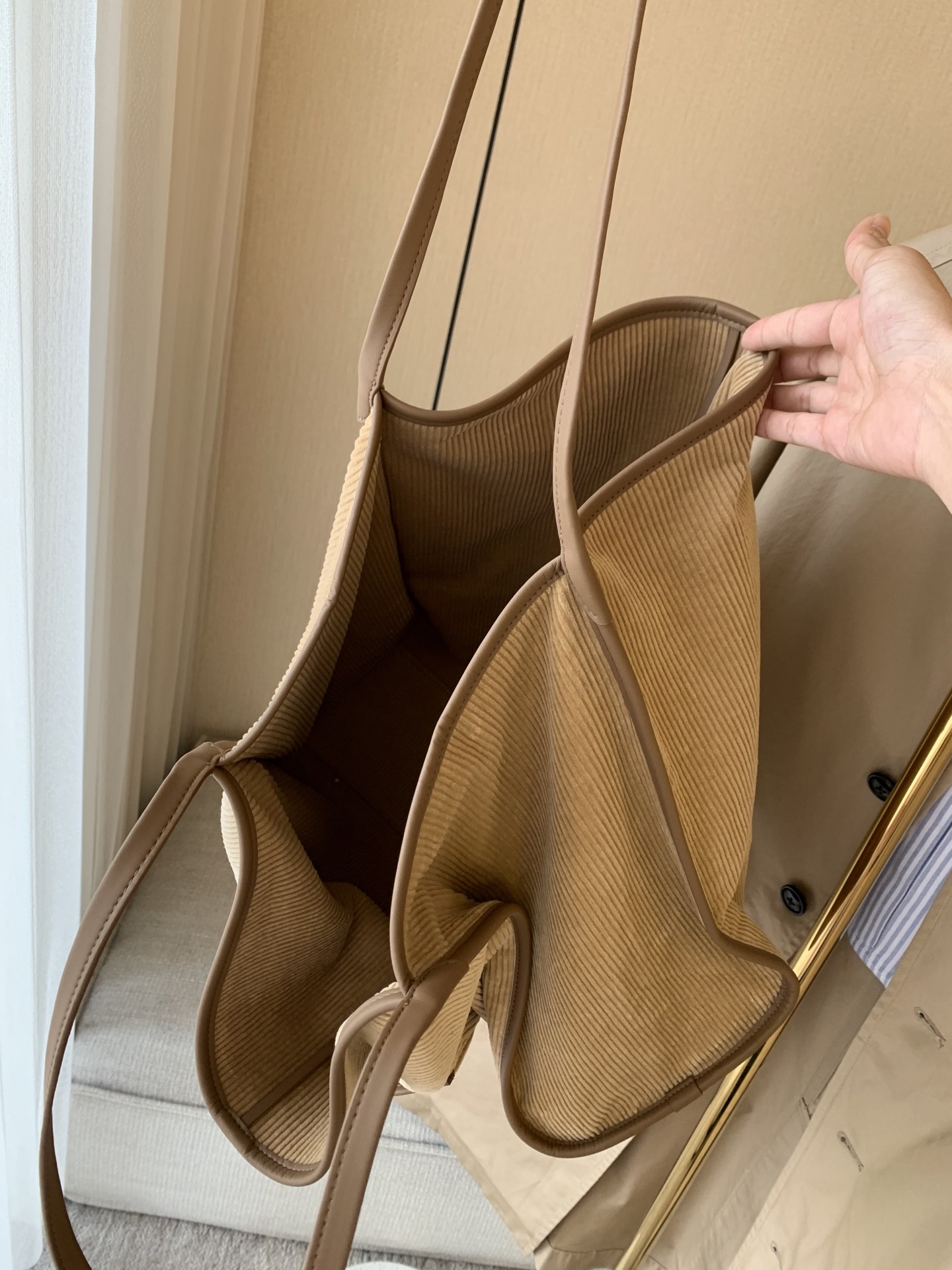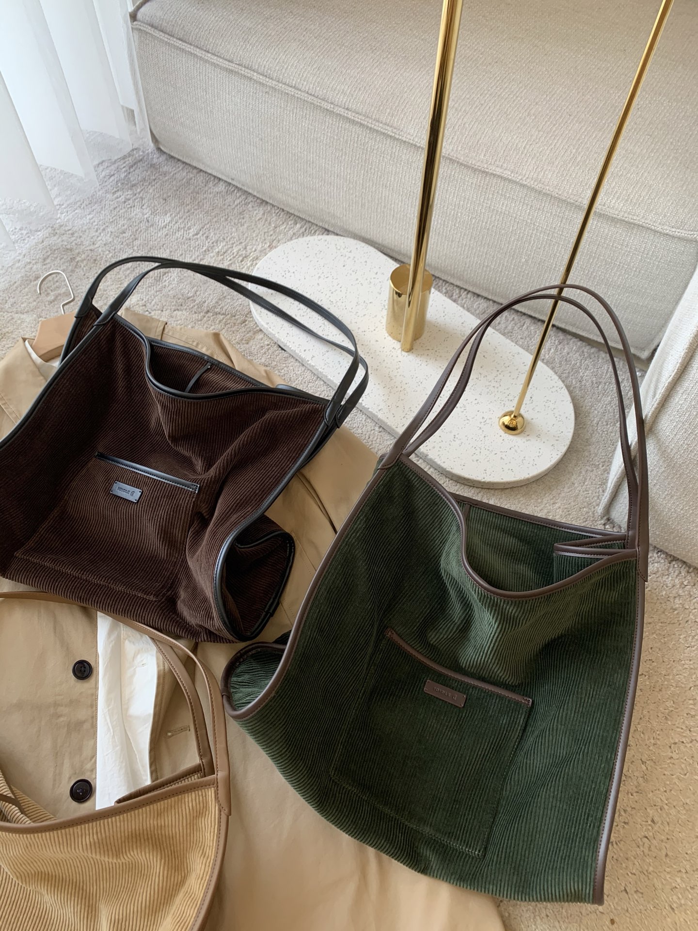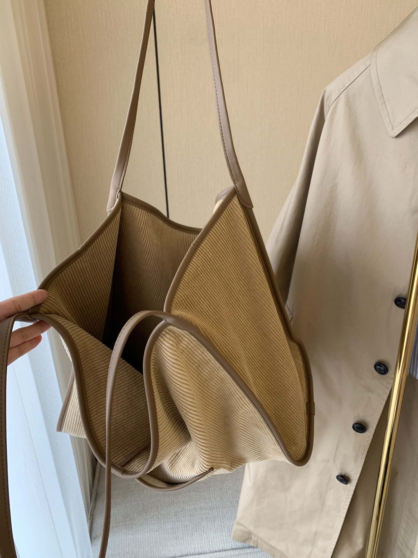 继春夏的帆布包后又出了灯芯绒材质,一看就很有质感,每个颜色都疯狂心动,又是纠结症发作的一天,哈哈!包装有大盒子,还有一个防尘袋