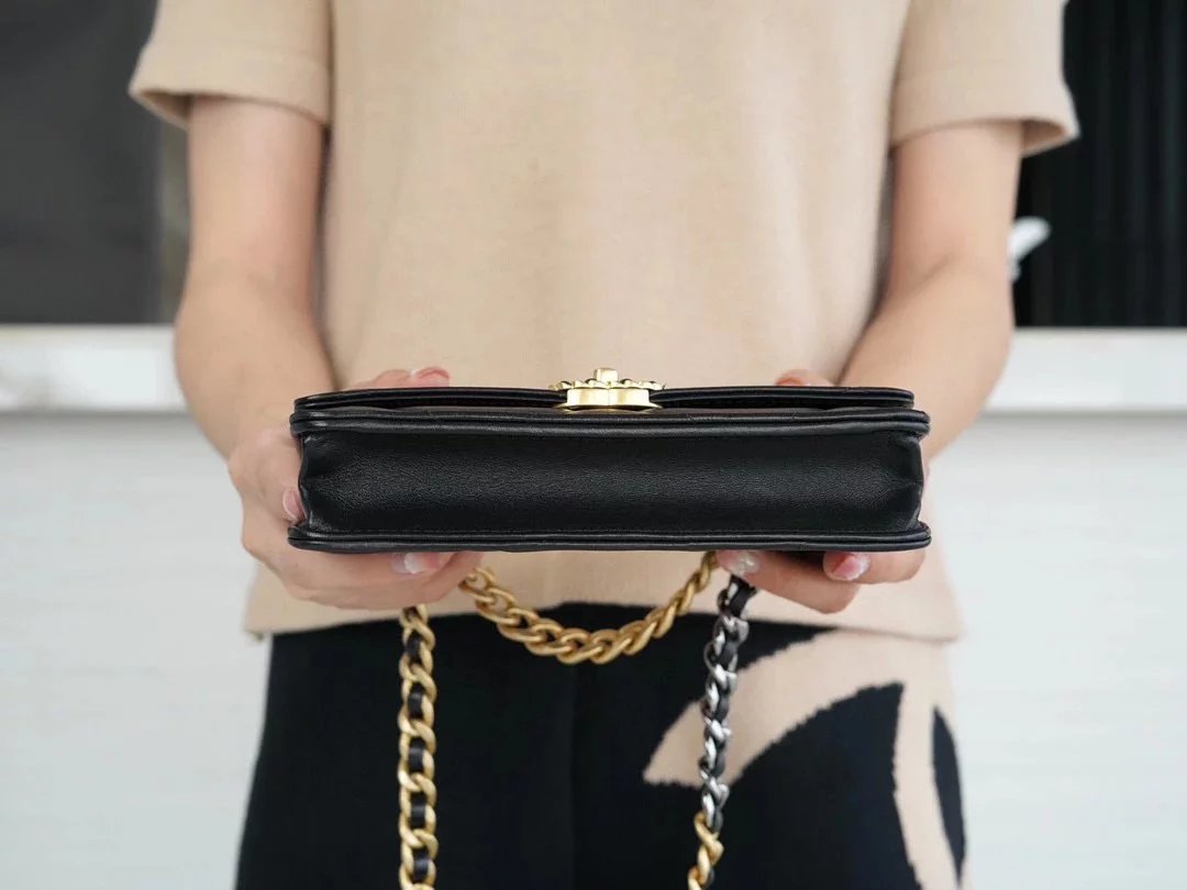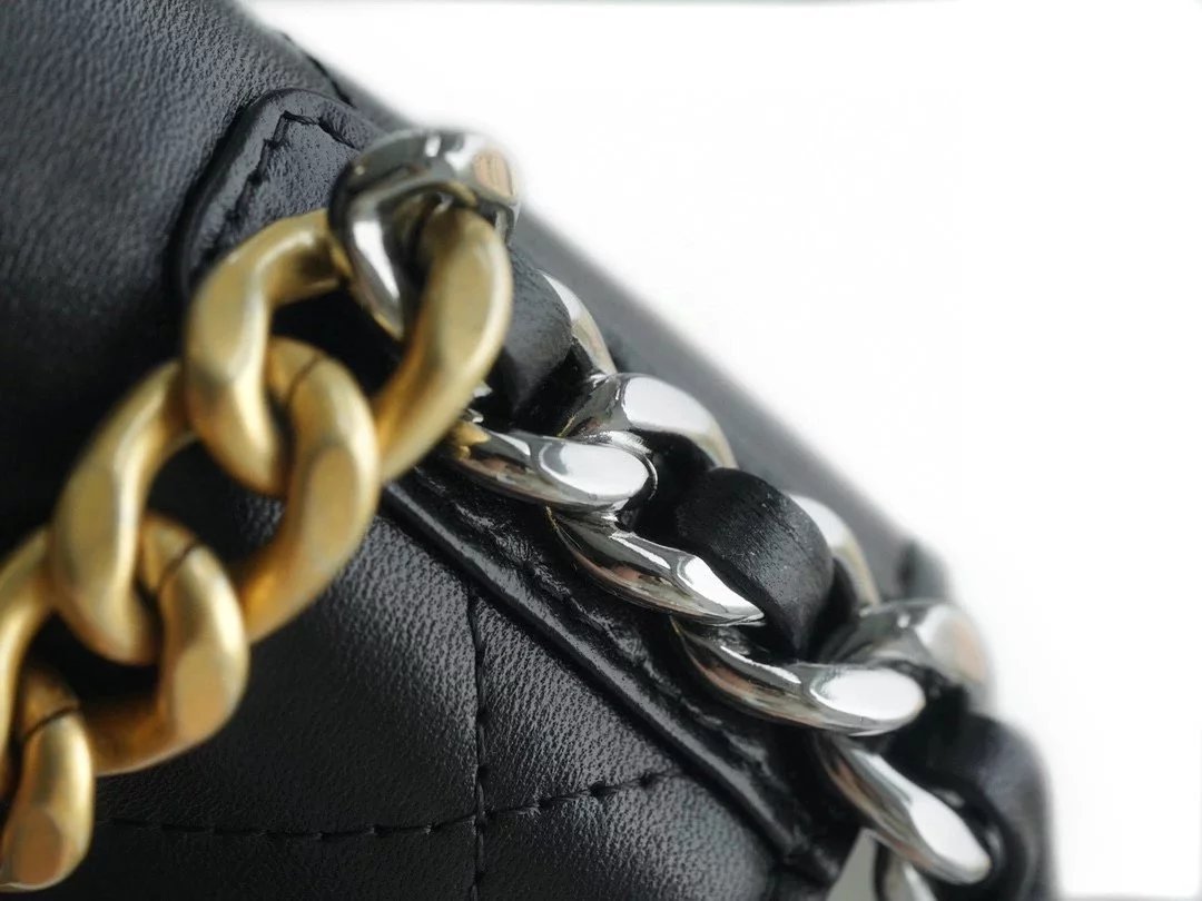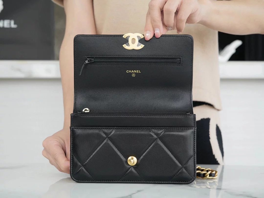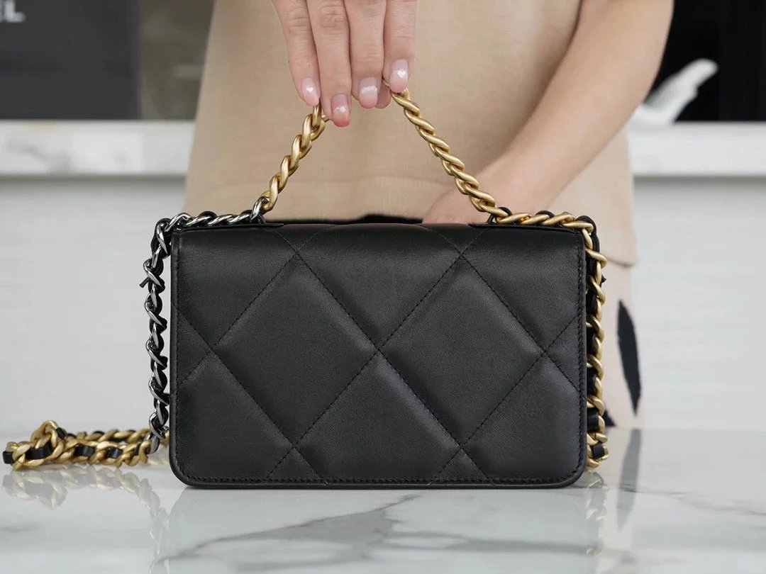 香家|预售23p新款19woc黑金| 预售 23p 19woc 黑金 Chanel 19woc已改版 于太古汇喜提一只梦中情包,新纽扣版本的19Woc,比起老版本的磁铁扣,纽扣版本更为一些!编织logo是 的亮点,再现时代的经典设计~ 尺寸:19cm 专柜售价:29500