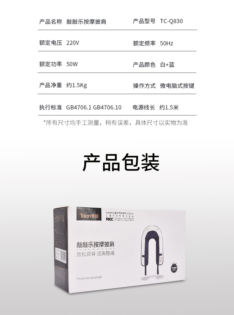 泰昌(Taicn) 颈椎按摩器 肩部按摩披肩颈肩腰部按摩枕 TC-Q830