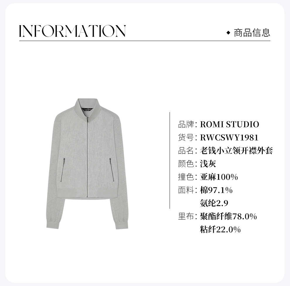 ROMI STUDIO“优雅绅士”亚麻棉经典老钱小立领夹克外套 RWCSWY1981
