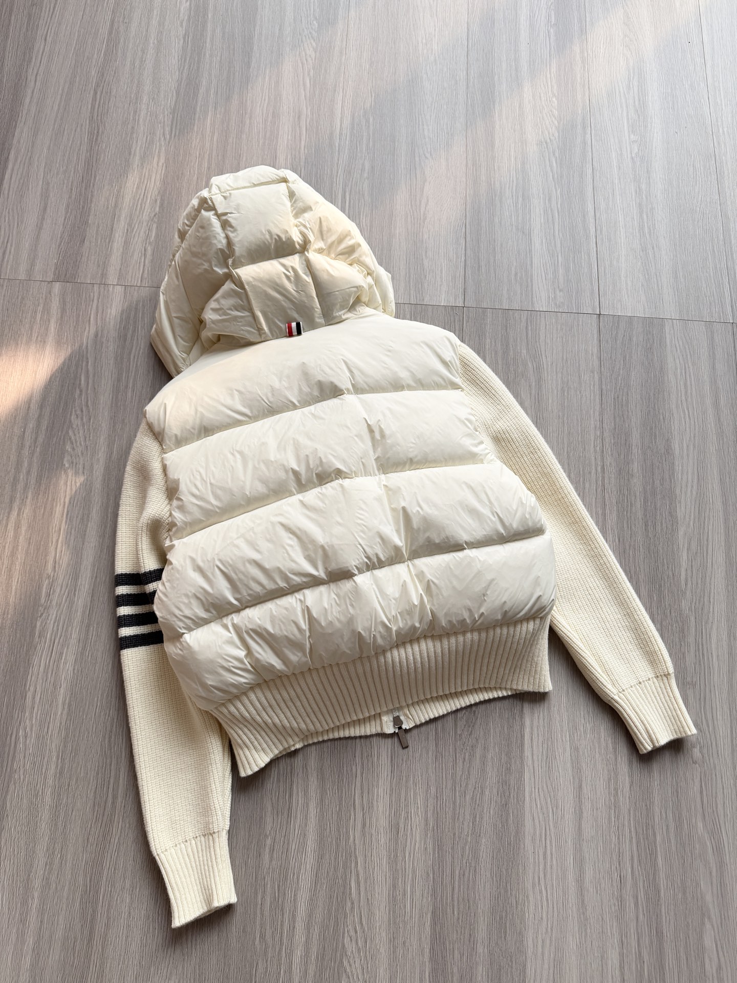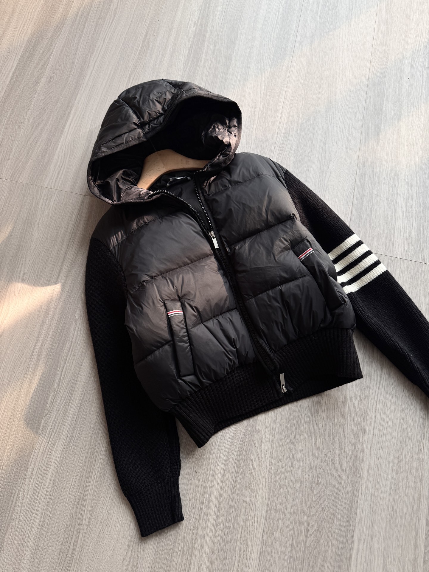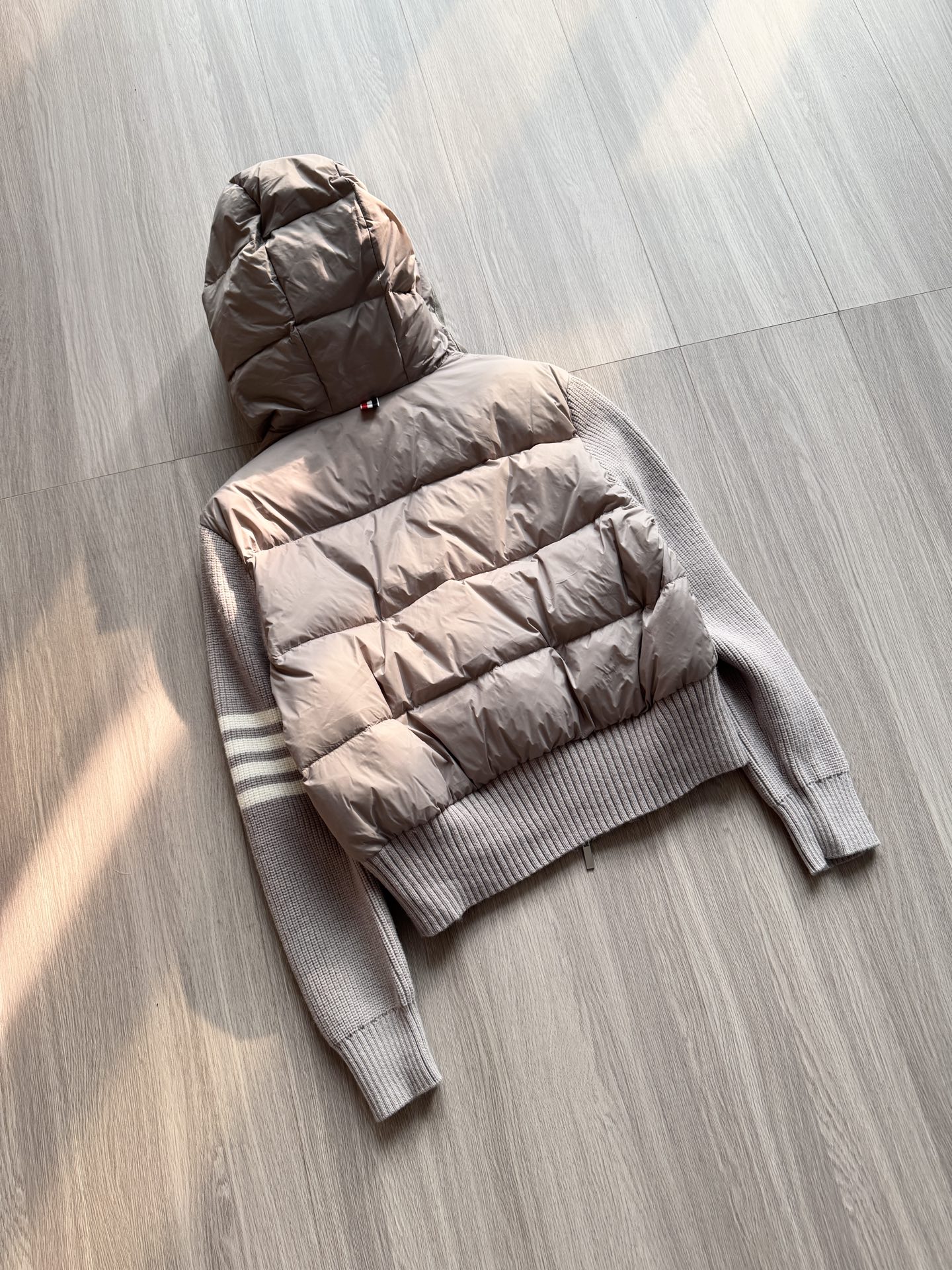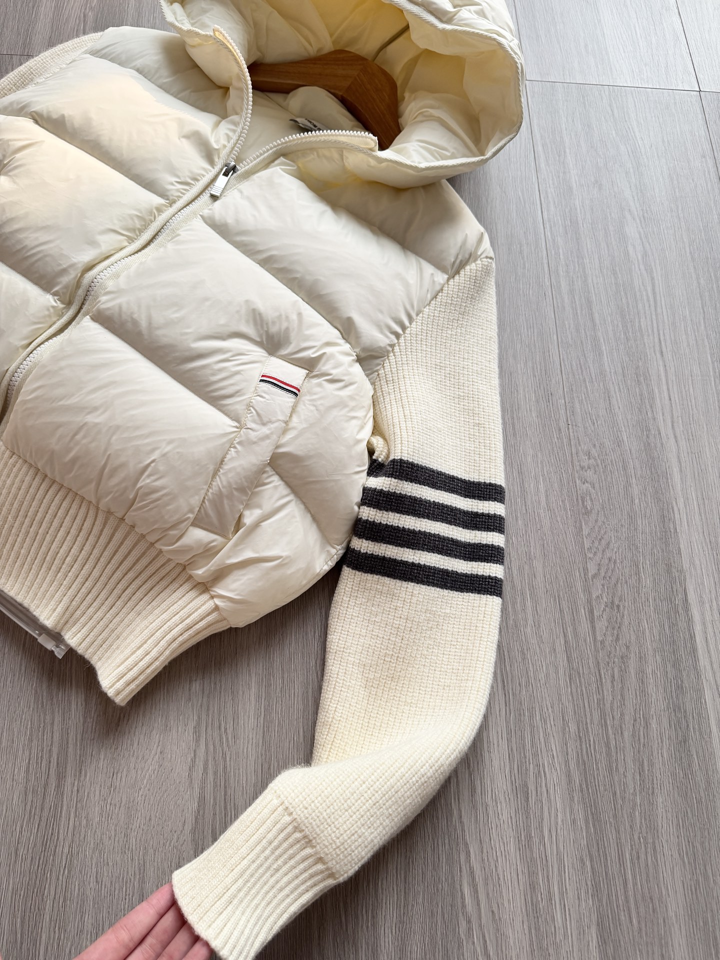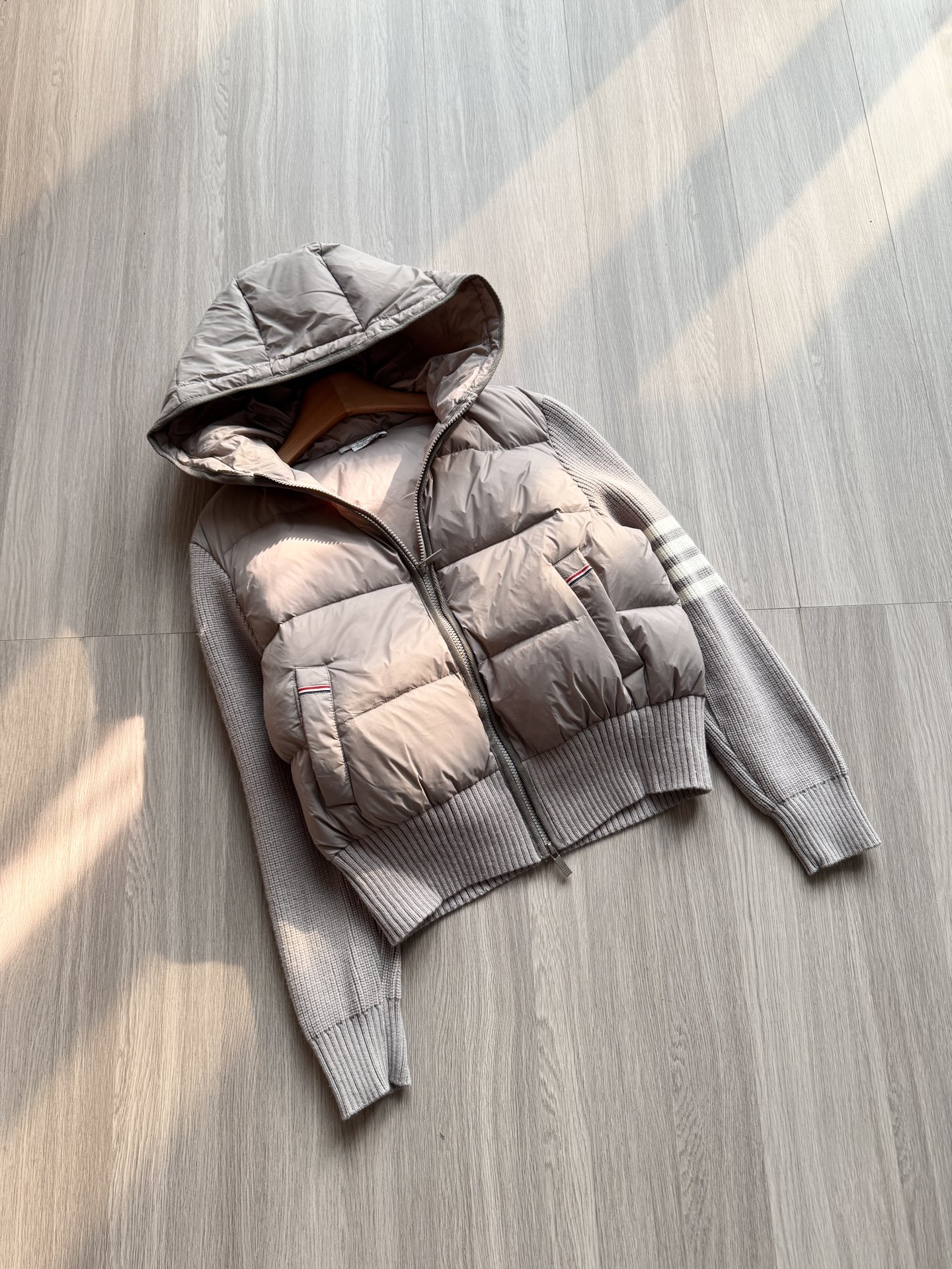TB 25Ss秋冬最新款羊毛拼接羽绒服外套 国标进口90白鸭绒填充,轻盈舒适自带发热保暖功能 拼接美利奴羊毛舒适厚实的手感 !气质连帽双拉链设计 ,极简休闲收腰版型 ,不挑人上身超显瘦 ,休闲百搭神器 !意式优雅高级感随性又大气