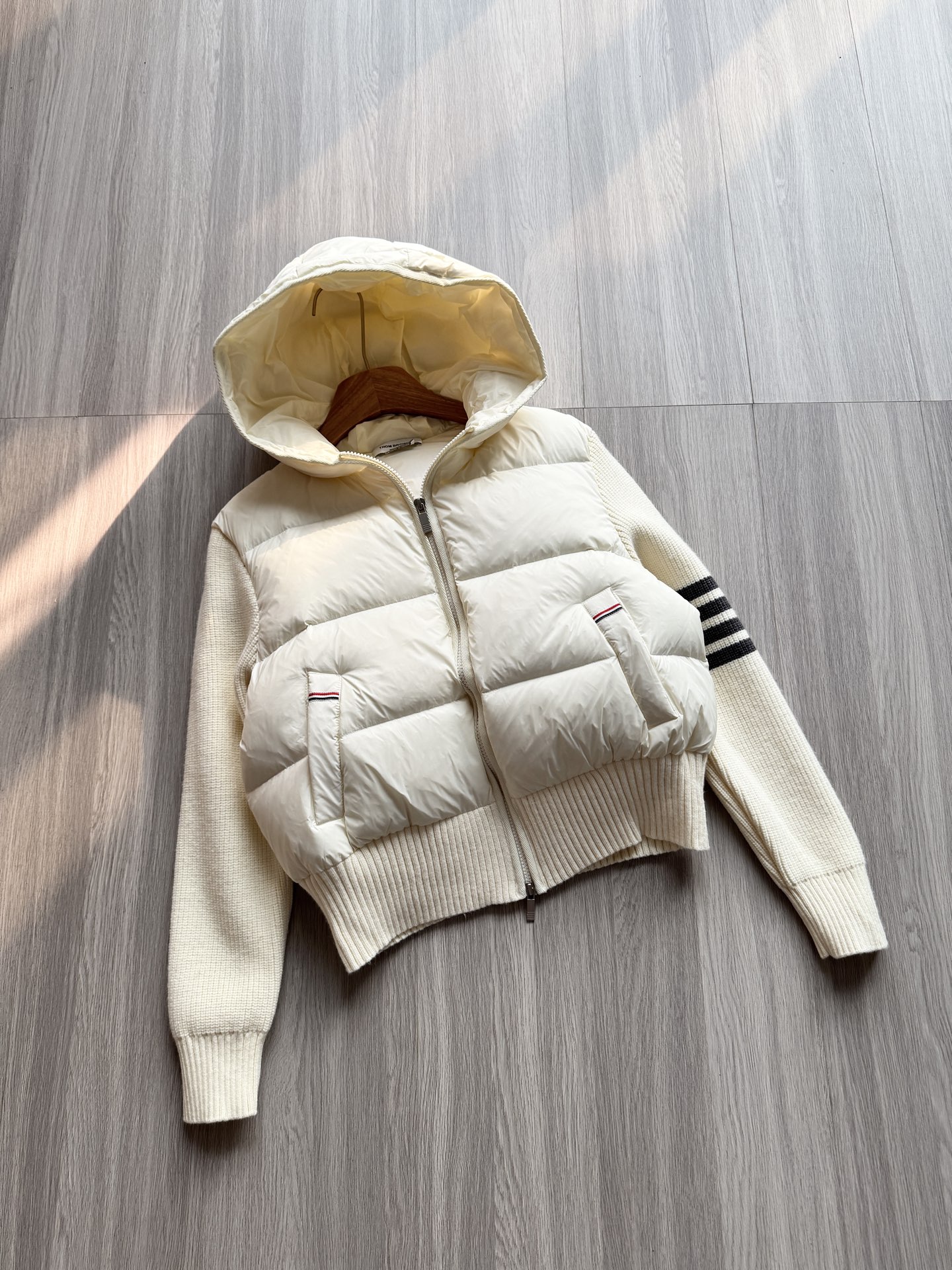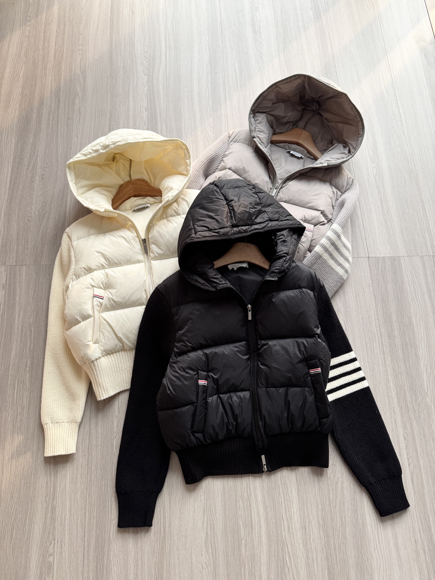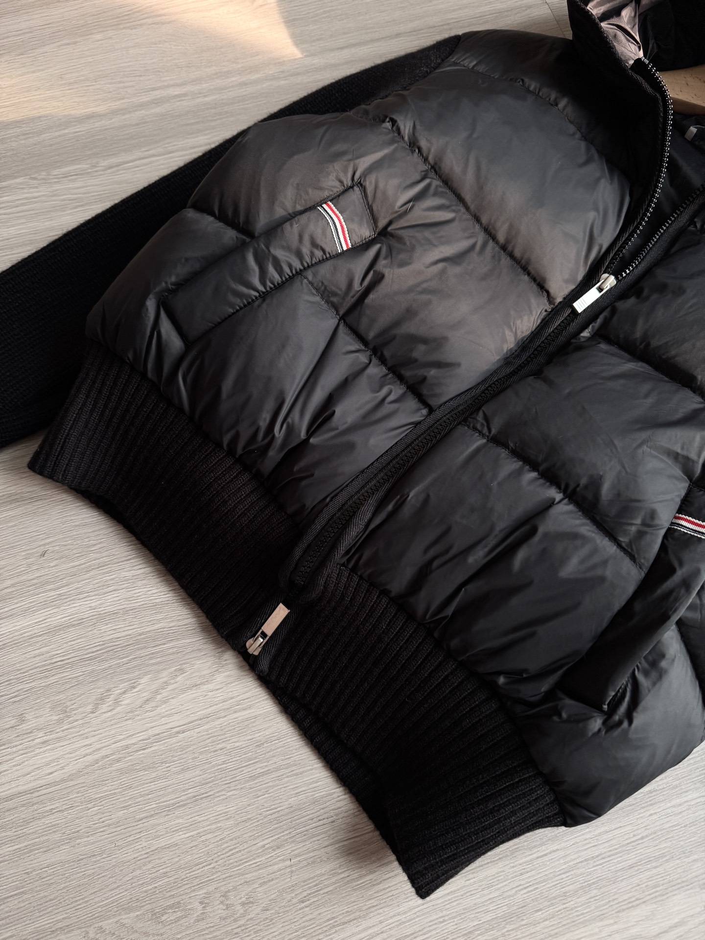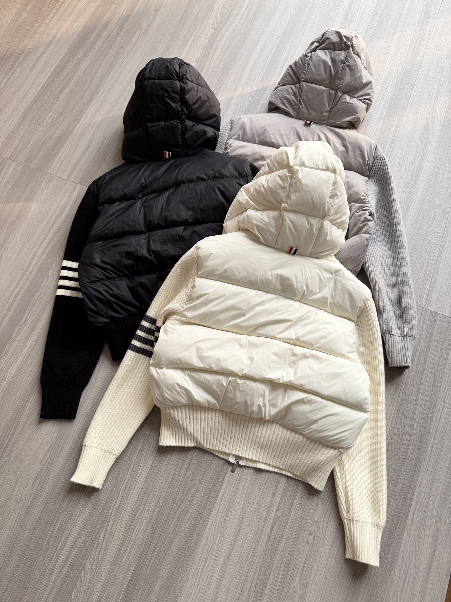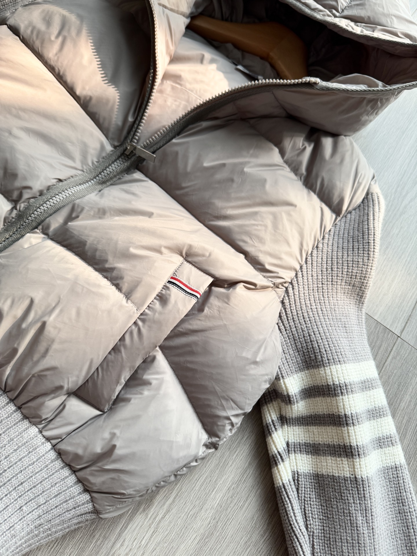 TB 25Ss秋冬最新款羊毛拼接羽绒服外套 国标进口90白鸭绒填充,轻盈舒适自带发热保暖功能 拼接美利奴羊毛舒适厚实的手感 !气质连帽双拉链设计 ,极简休闲收腰版型 ,不挑人上身超显瘦 ,休闲百搭神器 !意式优雅高级感随性又大气