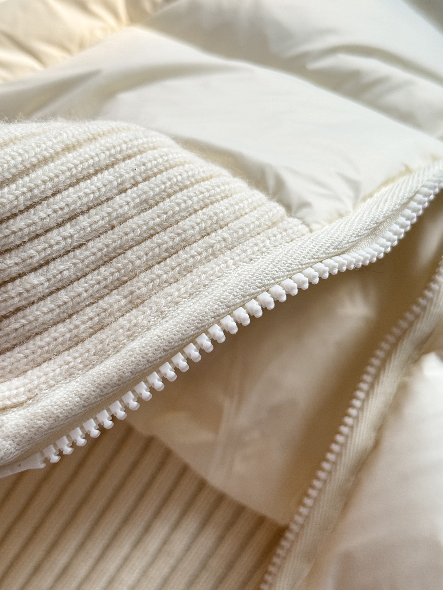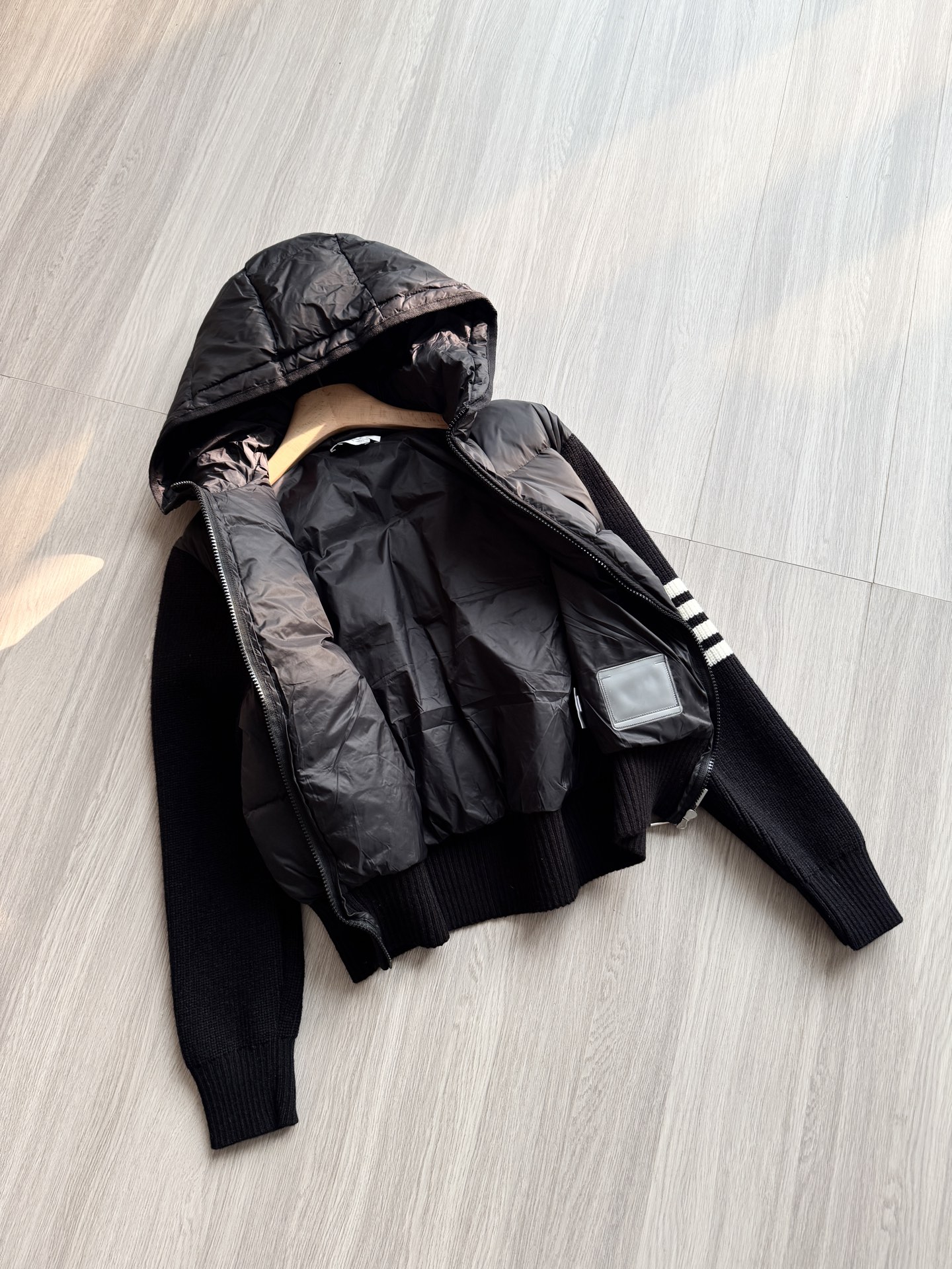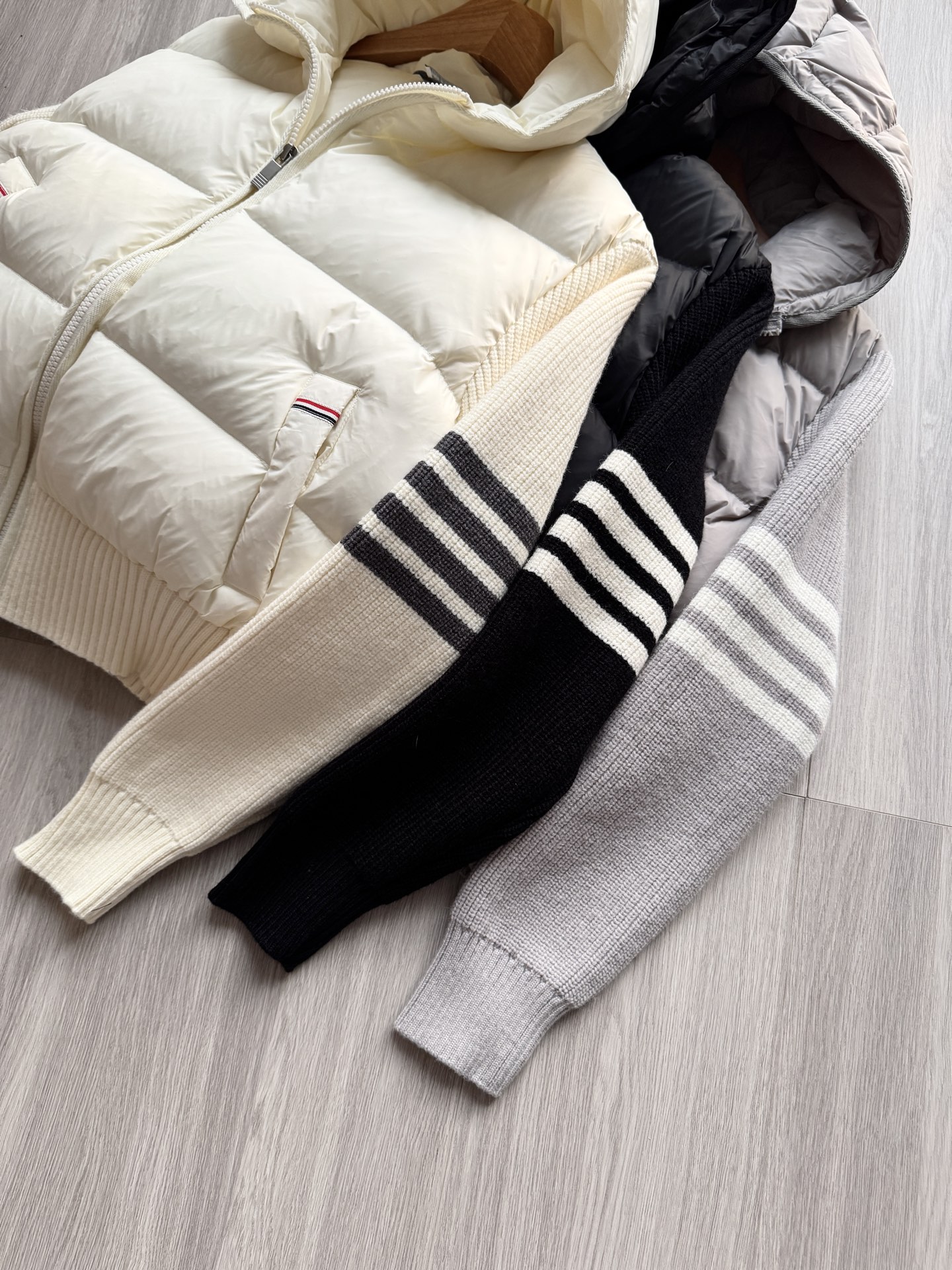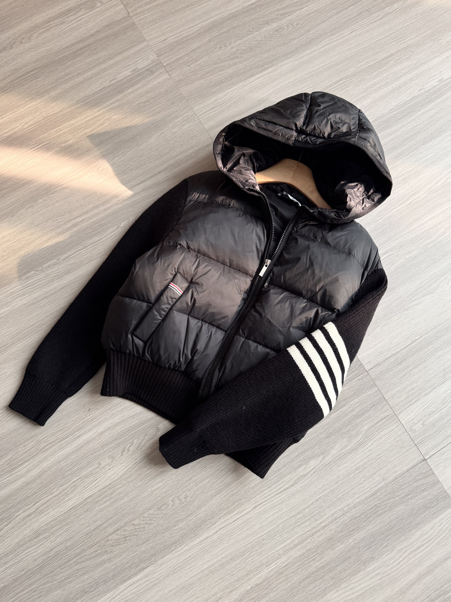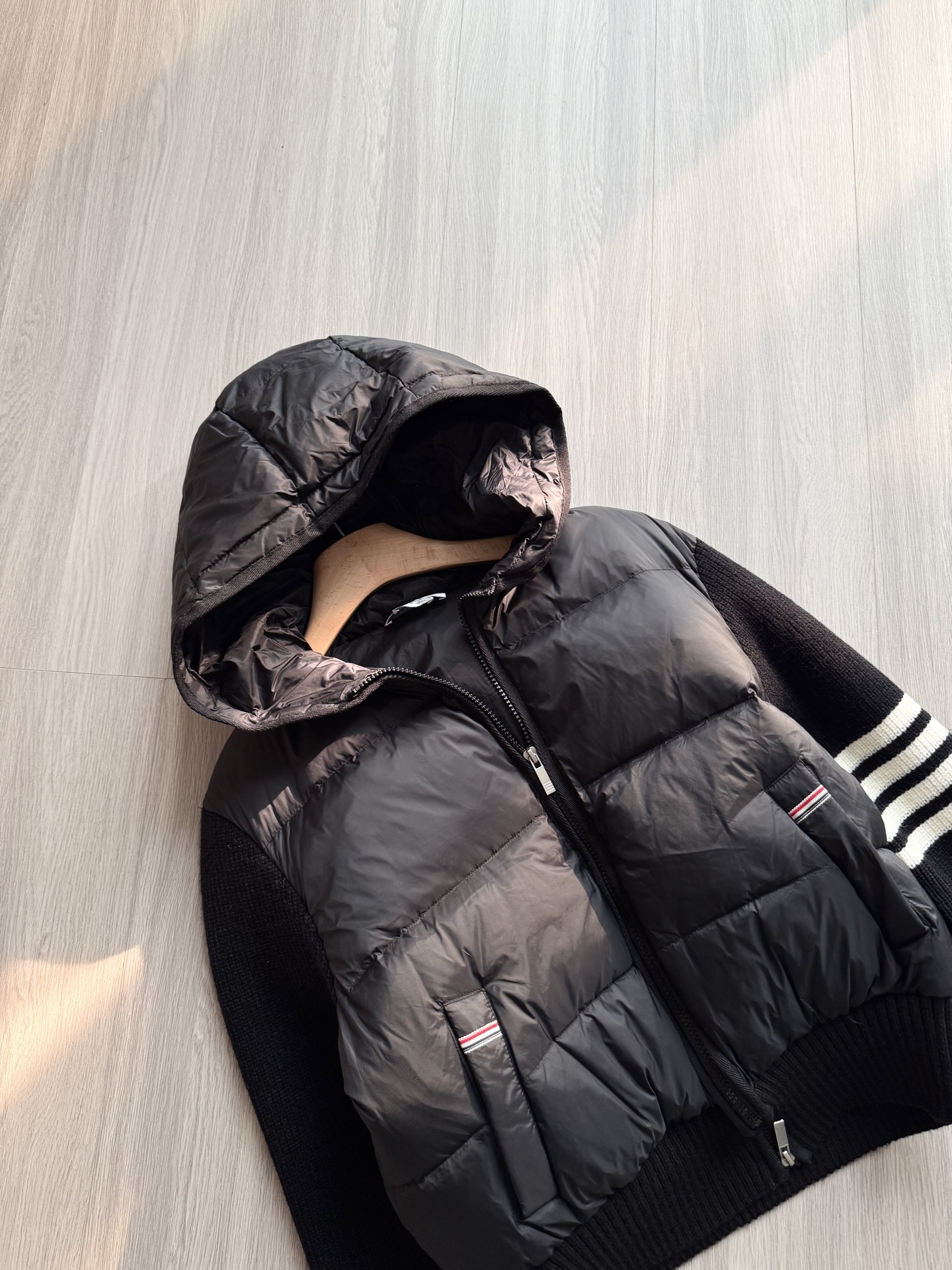 TB 25Ss秋冬最新款羊毛拼接羽绒服外套 国标进口90白鸭绒填充,轻盈舒适自带发热保暖功能 拼接美利奴羊毛舒适厚实的手感 !气质连帽双拉链设计 ,极简休闲收腰版型 ,不挑人上身超显瘦 ,休闲百搭神器 !意式优雅高级感随性又大气