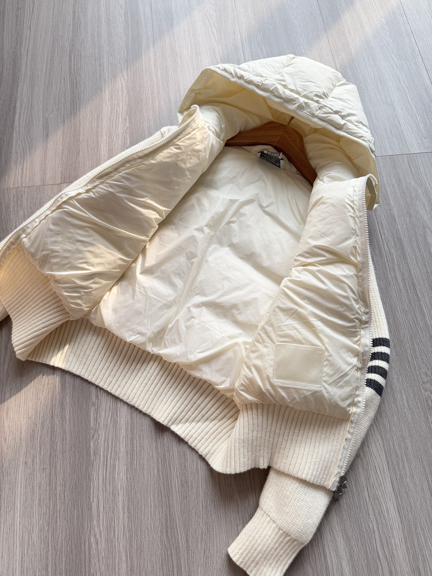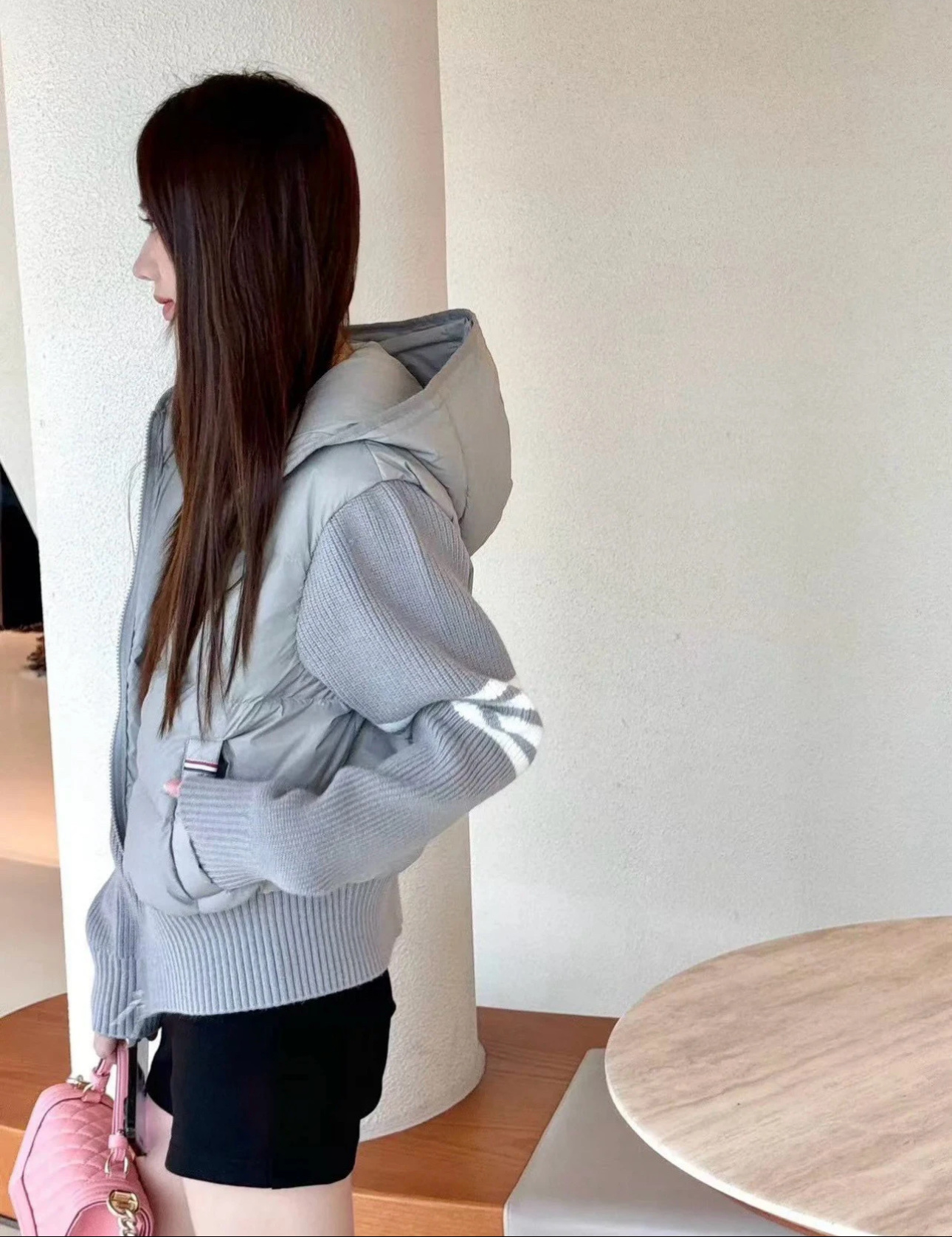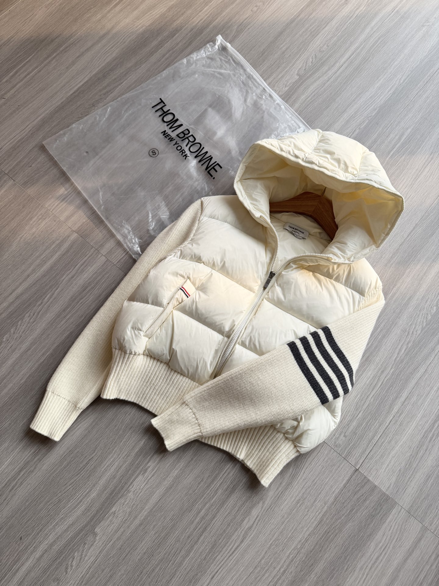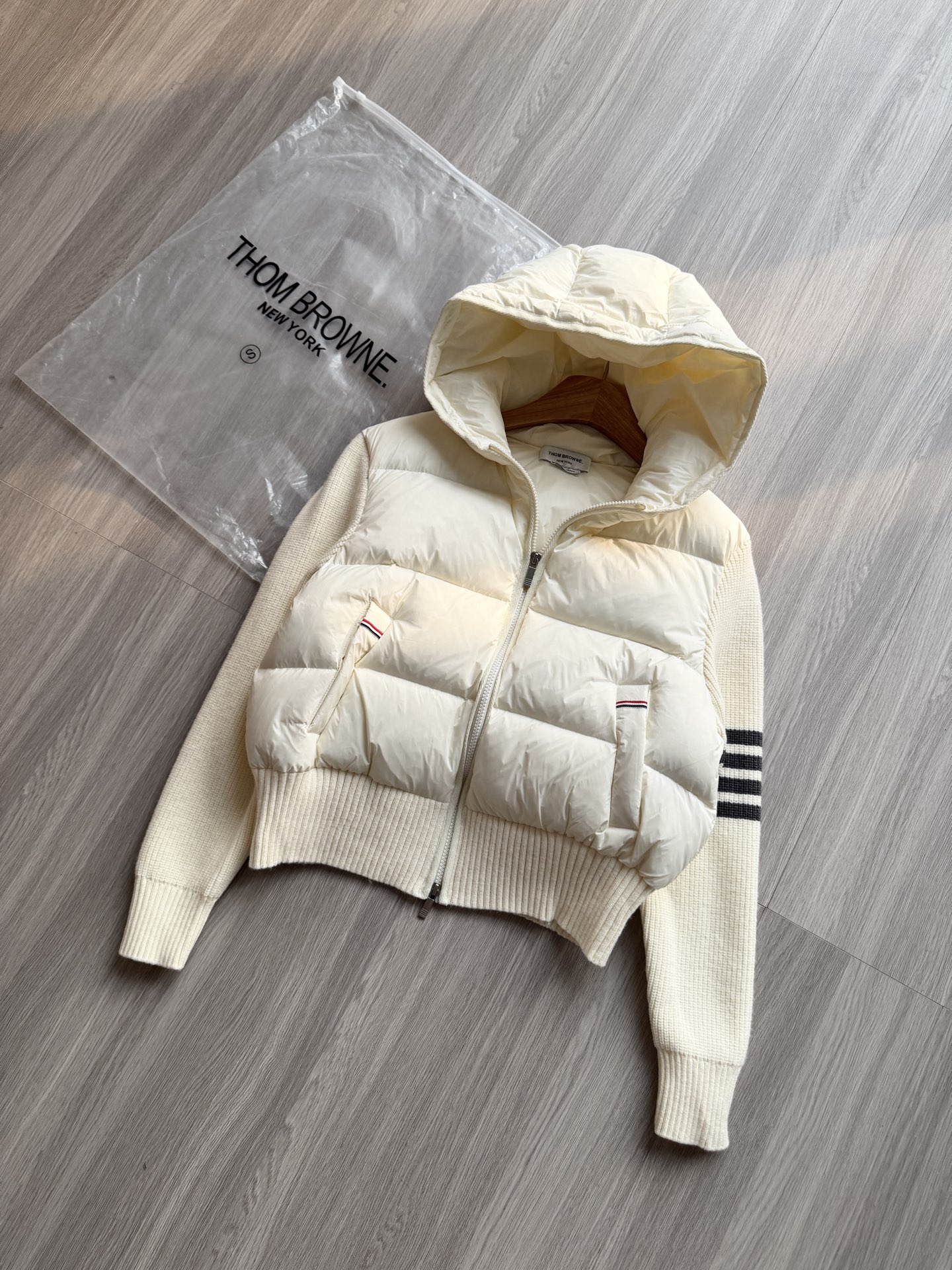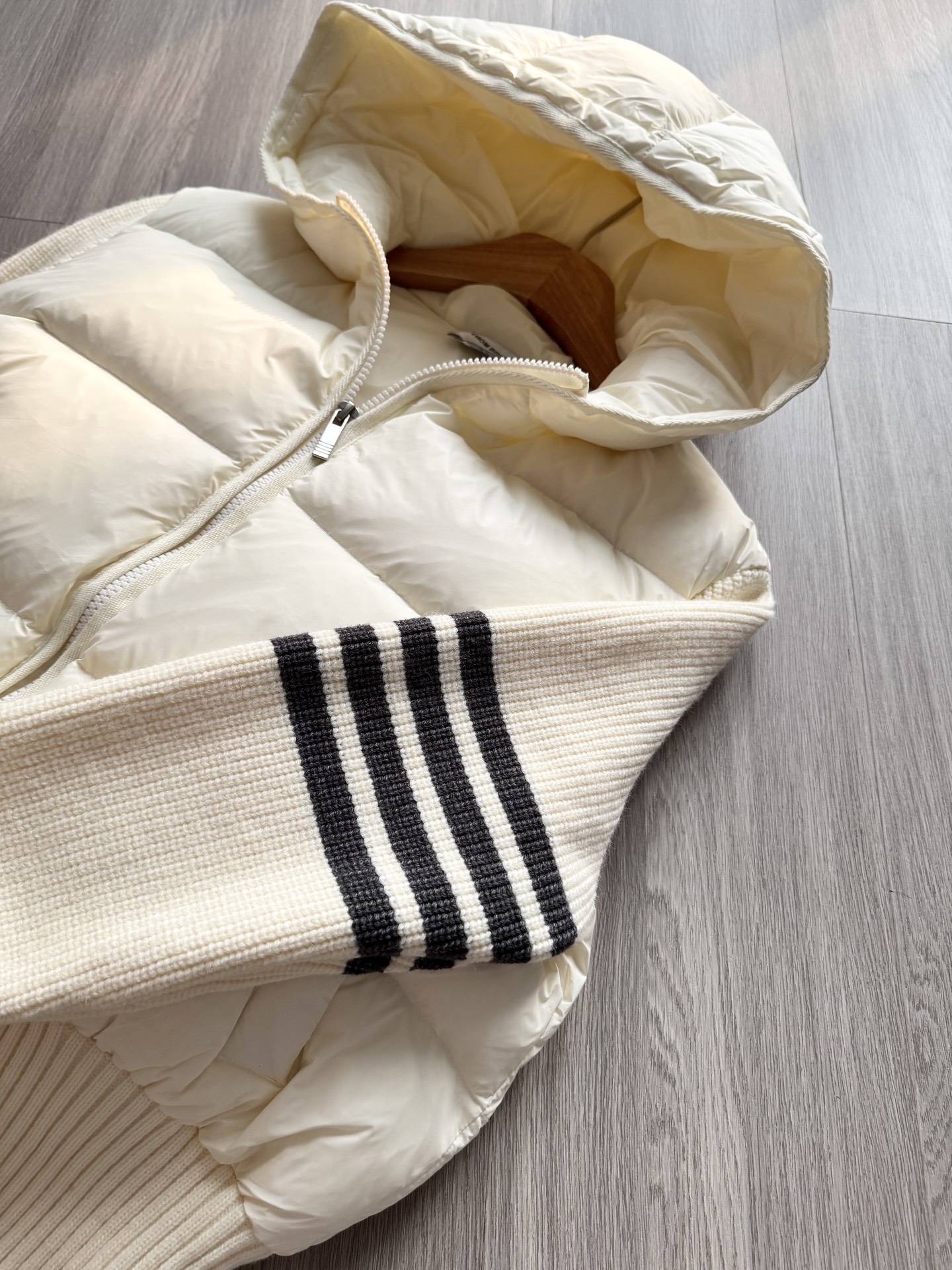TB 25Ss秋冬最新款羊毛拼接羽绒服外套 国标进口90白鸭绒填充,轻盈舒适自带发热保暖功能 拼接美利奴羊毛舒适厚实的手感 !气质连帽双拉链设计 ,极简休闲收腰版型 ,不挑人上身超显瘦 ,休闲百搭神器 !意式优雅高级感随性又大气