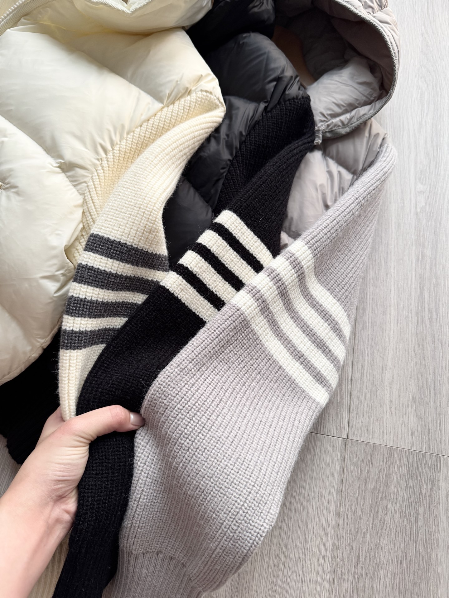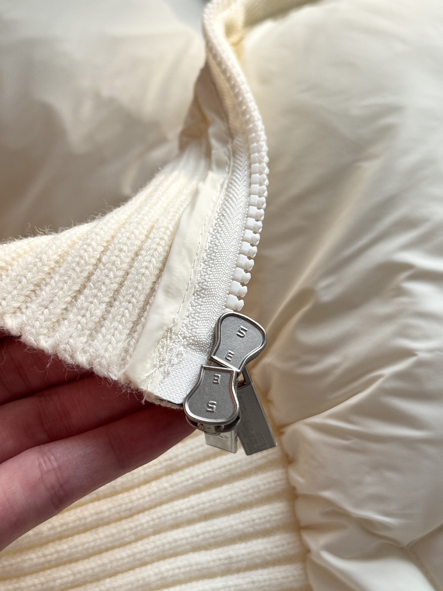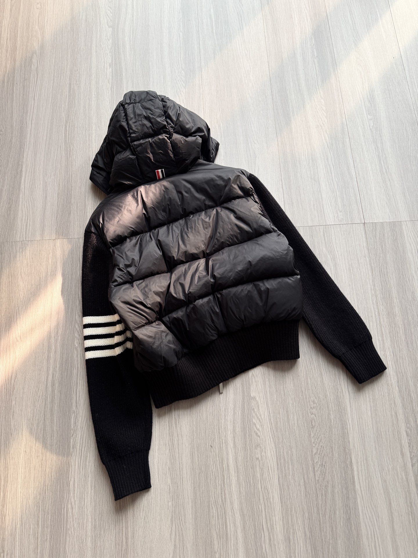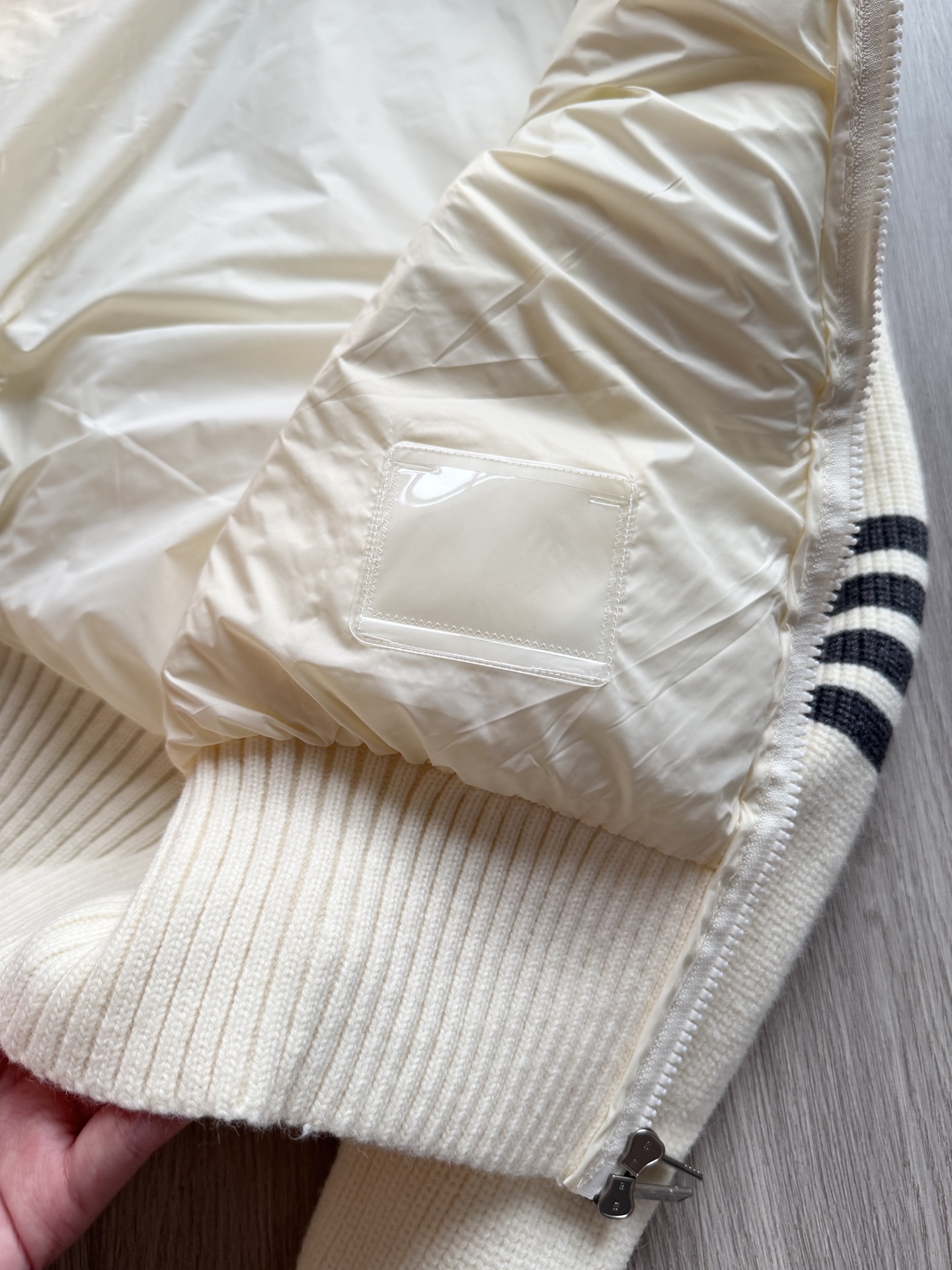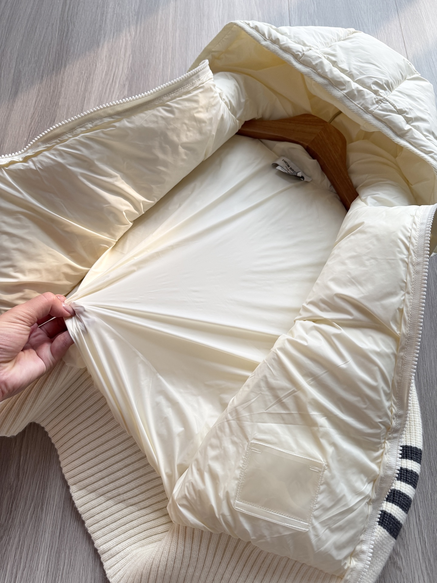 TB 25Ss秋冬最新款羊毛拼接羽绒服外套 国标进口90白鸭绒填充,轻盈舒适自带发热保暖功能 拼接美利奴羊毛舒适厚实的手感 !气质连帽双拉链设计 ,极简休闲收腰版型 ,不挑人上身超显瘦 ,休闲百搭神器 !意式优雅高级感随性又大气