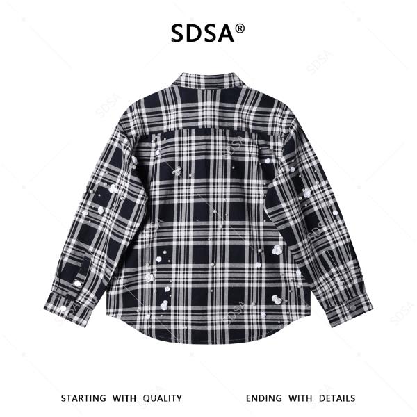 SDSA男装2026新款高贵轻奢韩系格纹立体花钉珠衬衫百搭时尚上衣