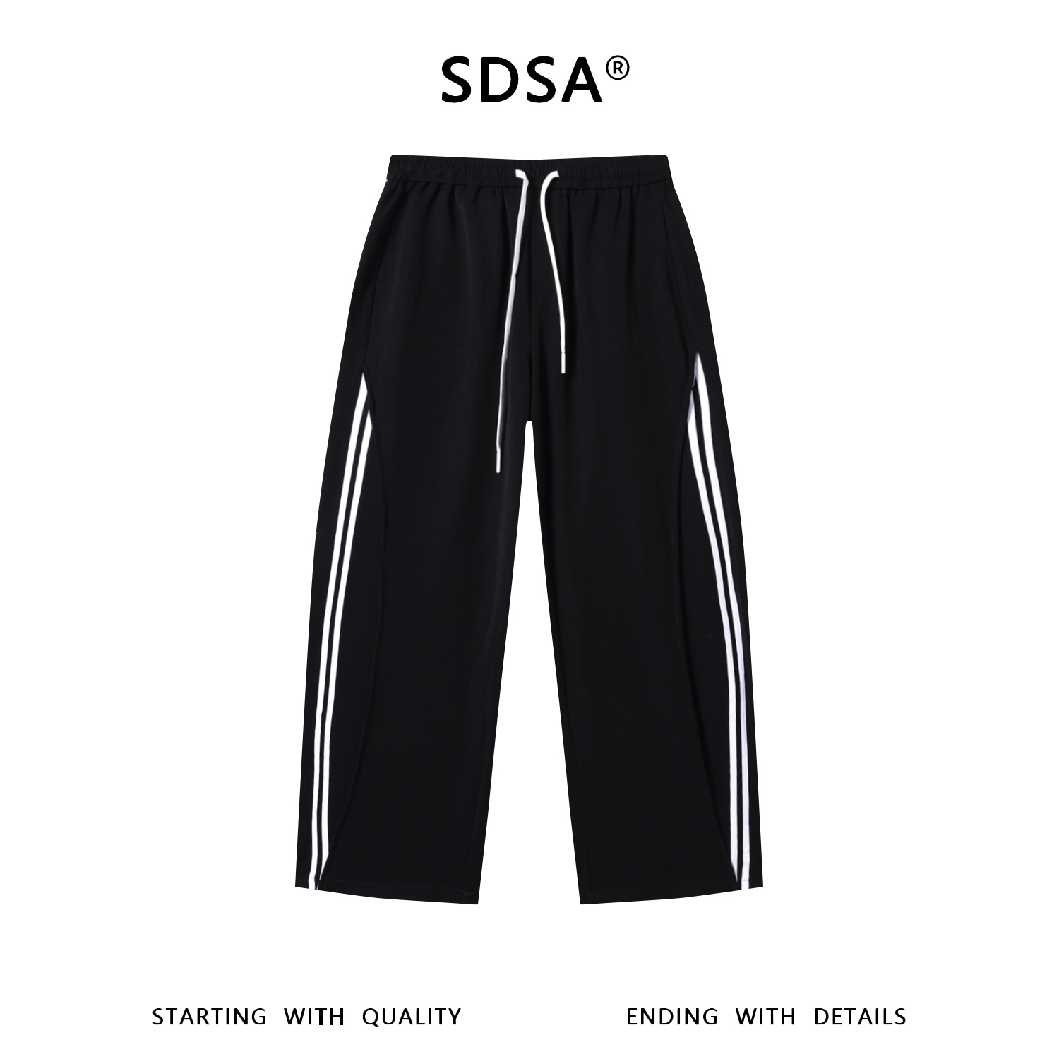 SDSA男装2026新款高贵轻奢侧边双白条直筒抽绳运动休闲裤百搭时尚