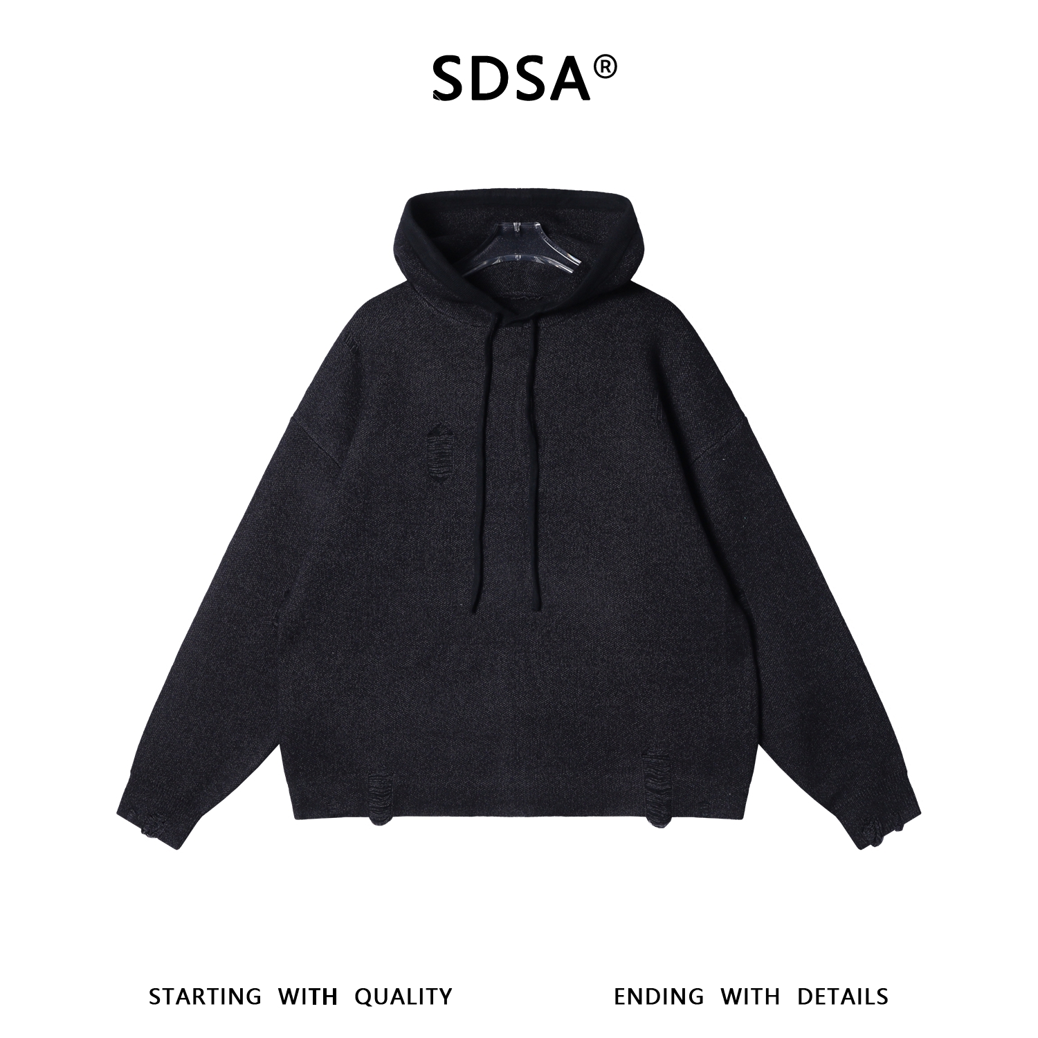 2428SDSA男士秋冬新款痞帅男装简约慵懒风抽绳连帽毛衣百搭宽松上衣