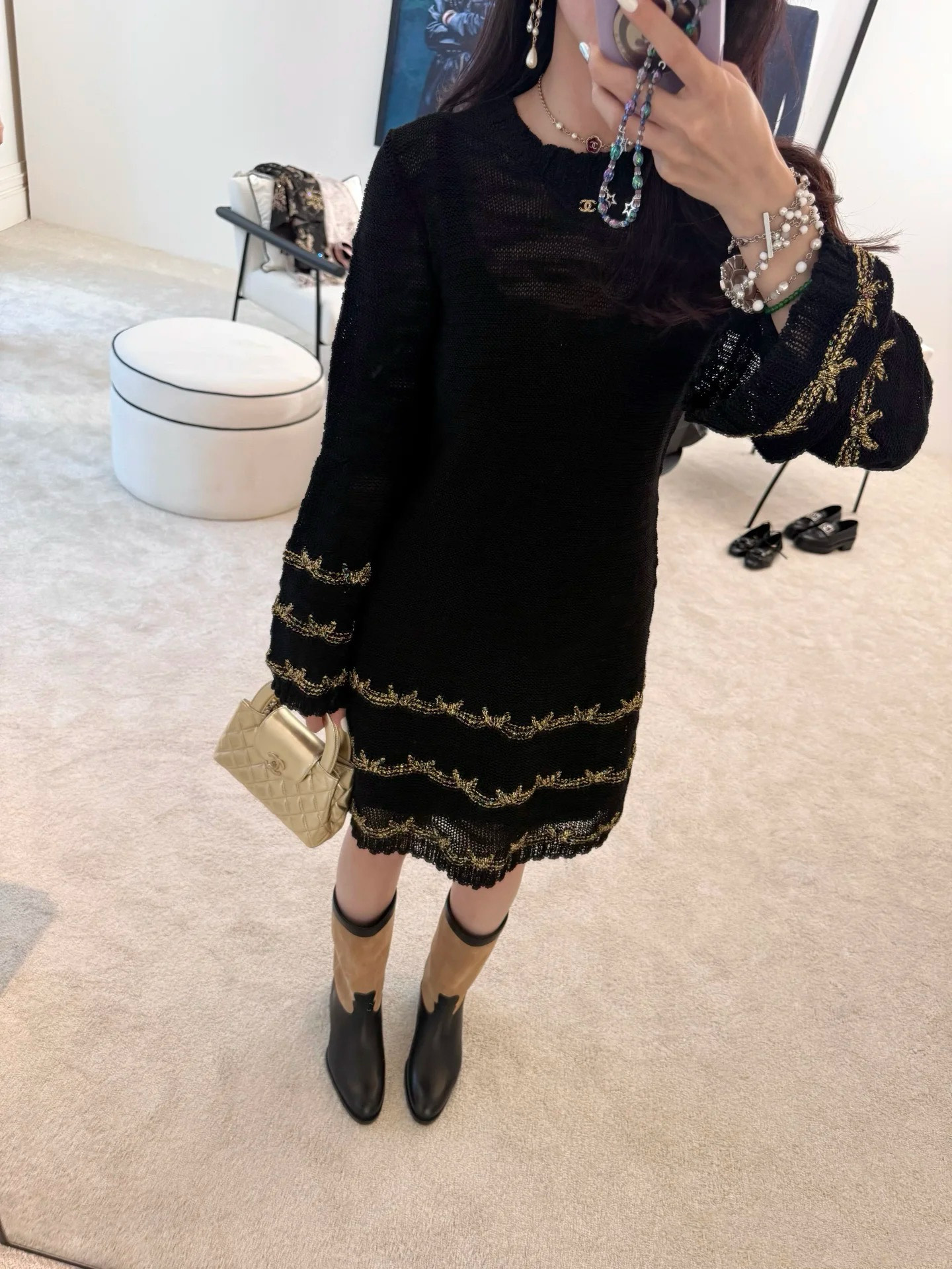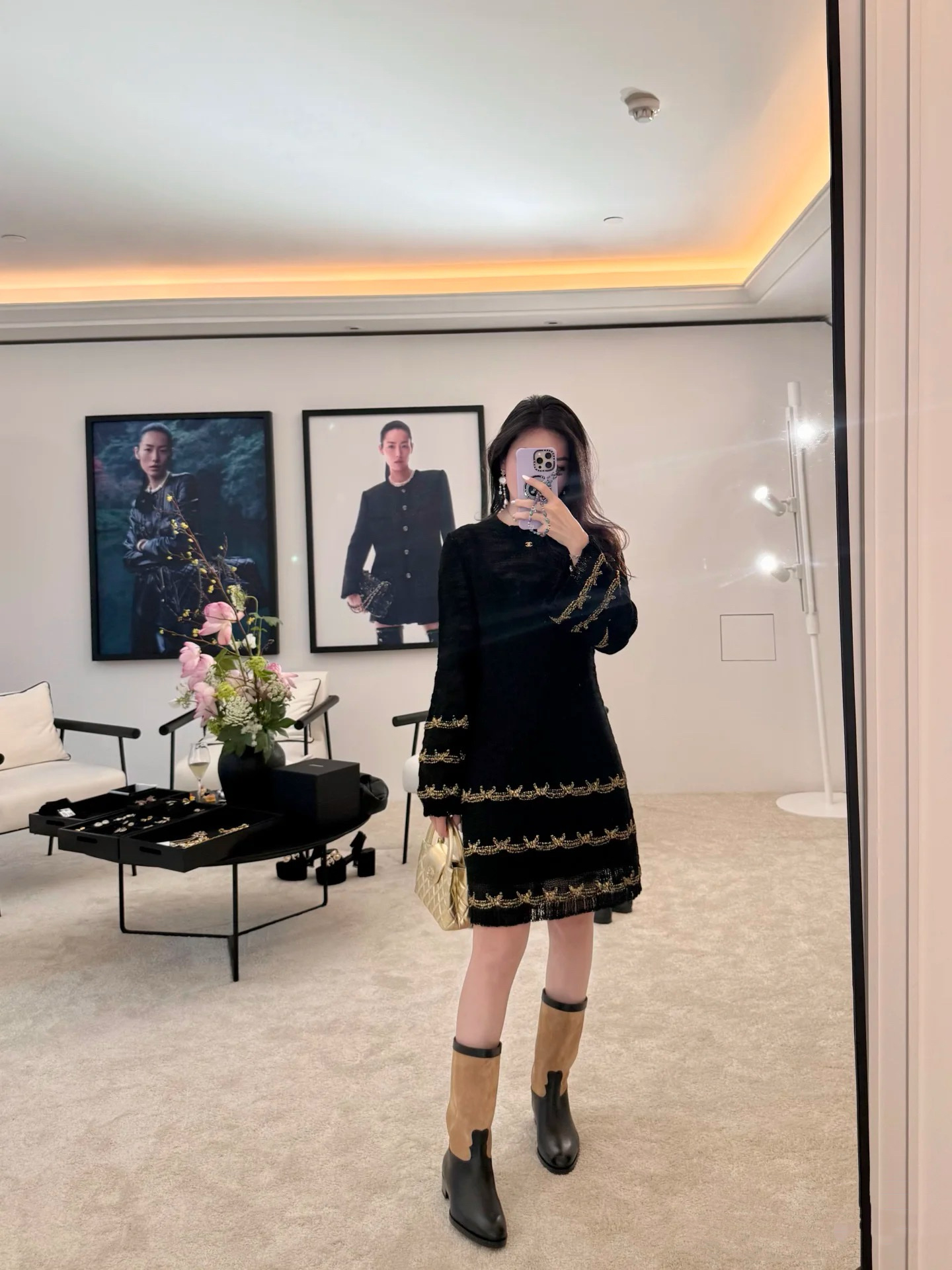 香奈儿25早秋长袖连衣裙 43300购买Zp拆解打造,订织订染美利奴进口面料
