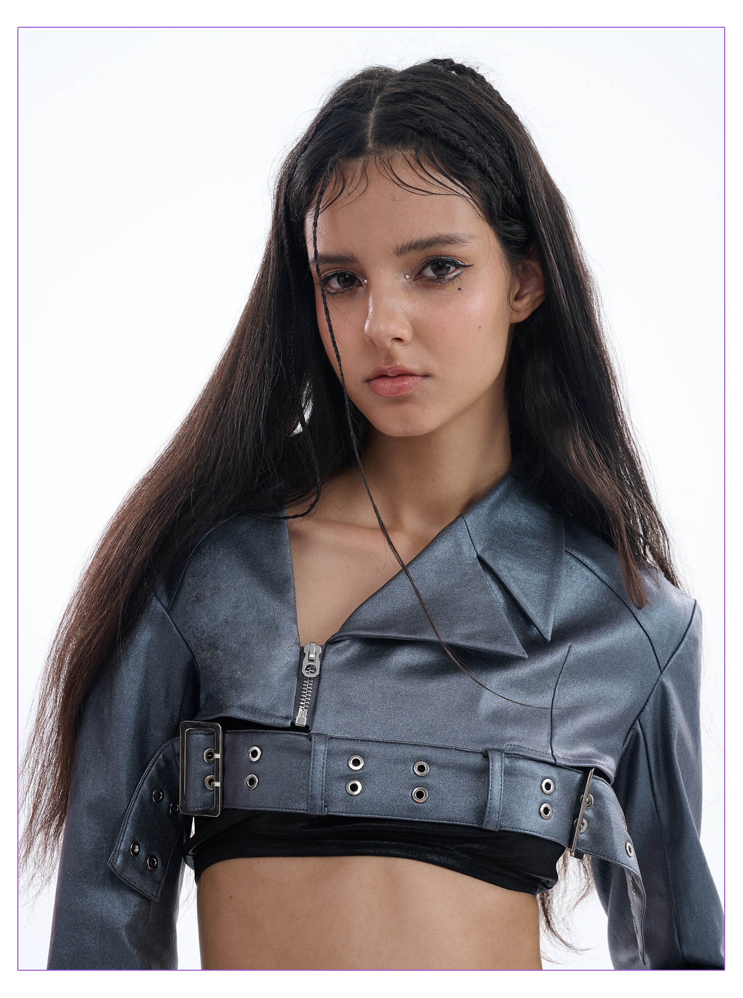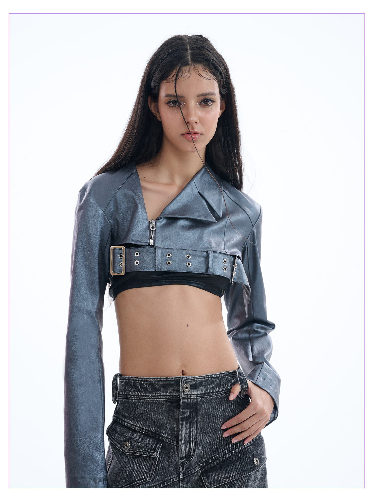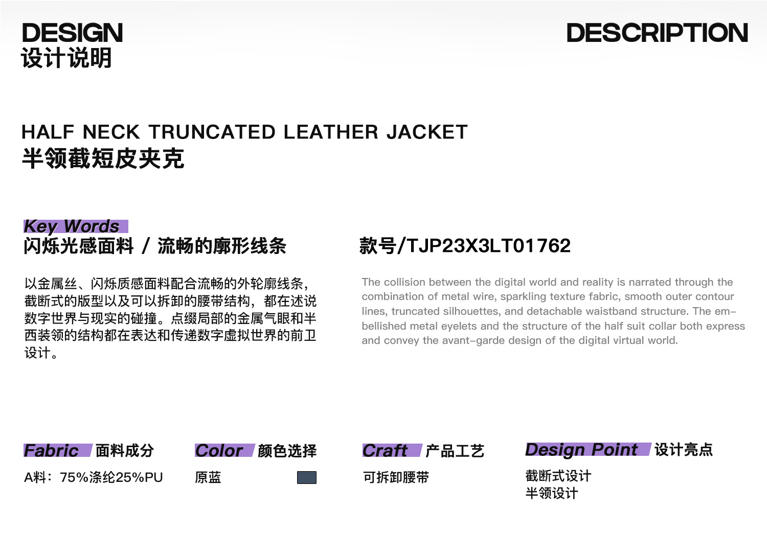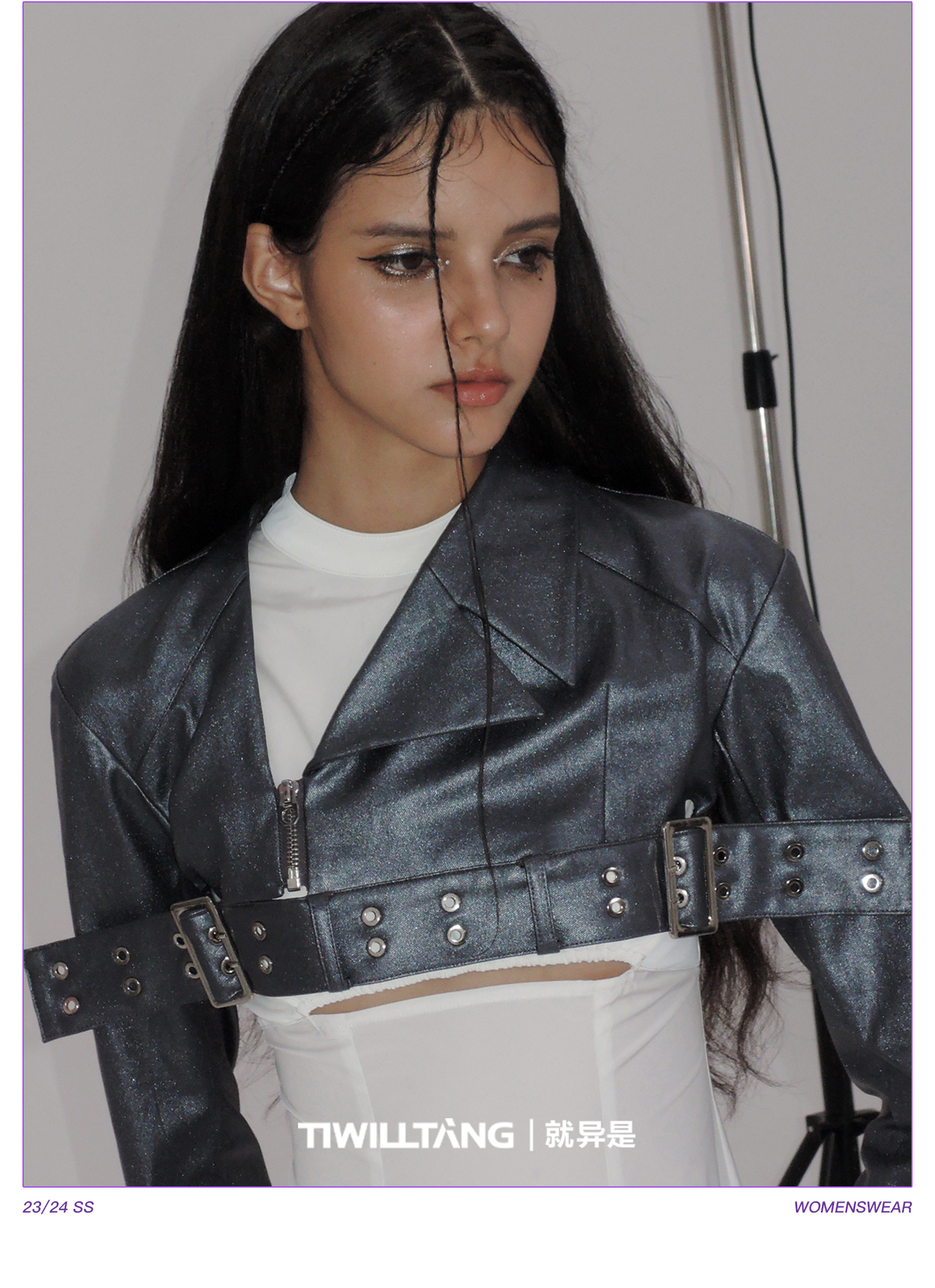 启世录TIWILLTANG“烁隐月光”半领截短皮夹克