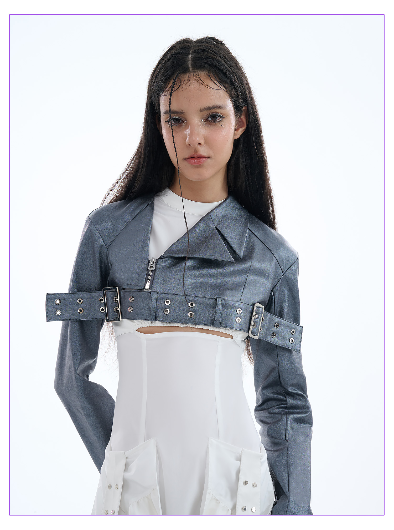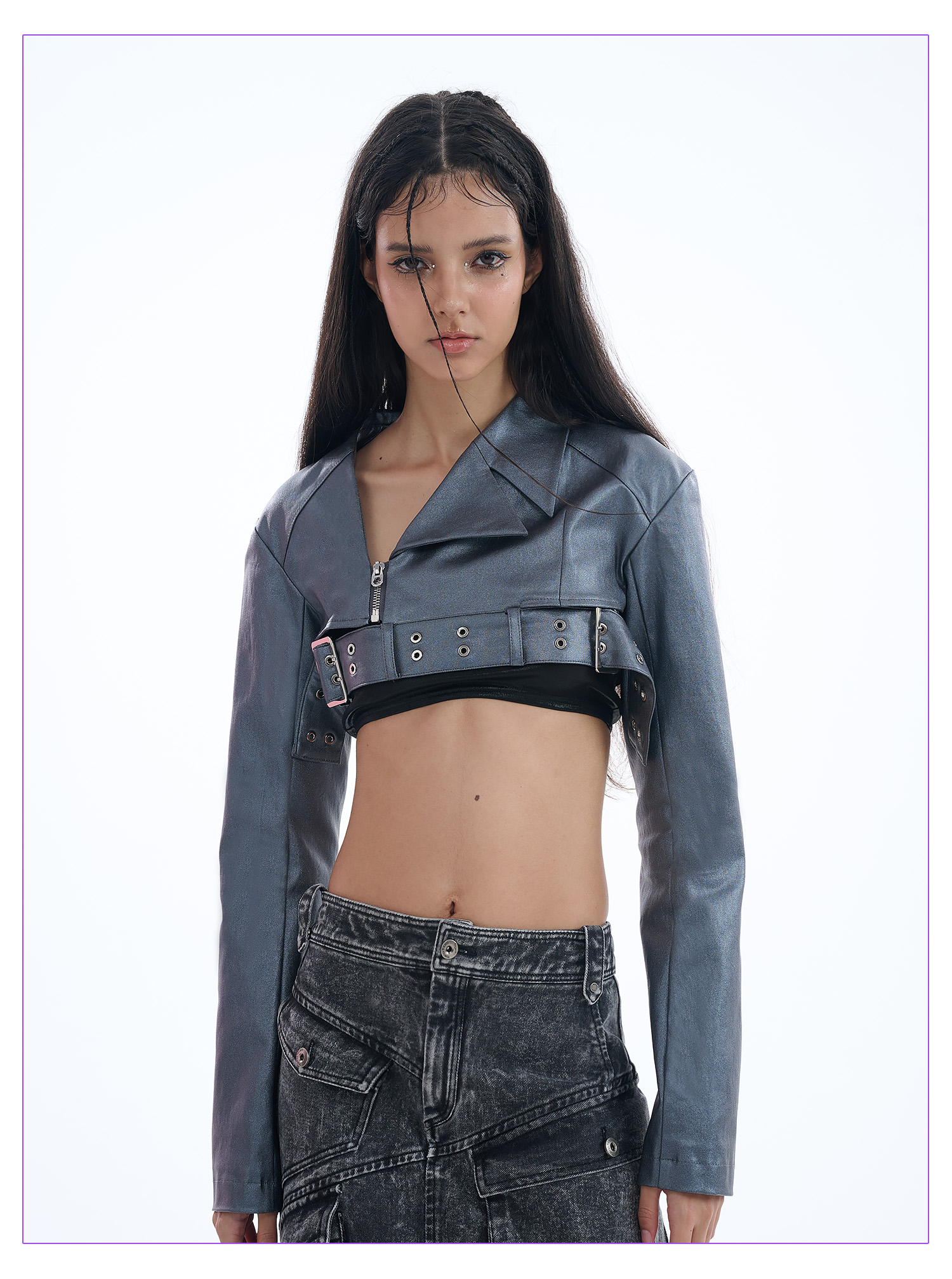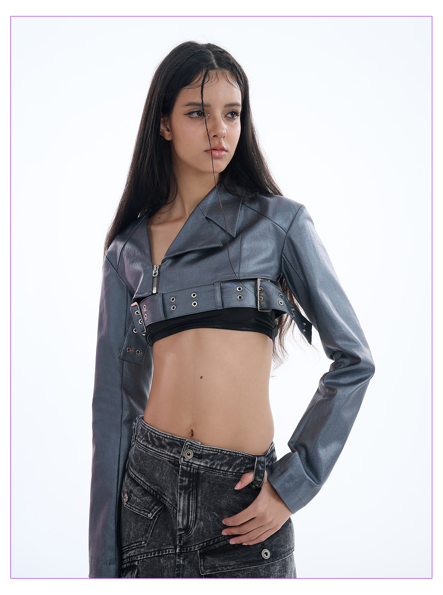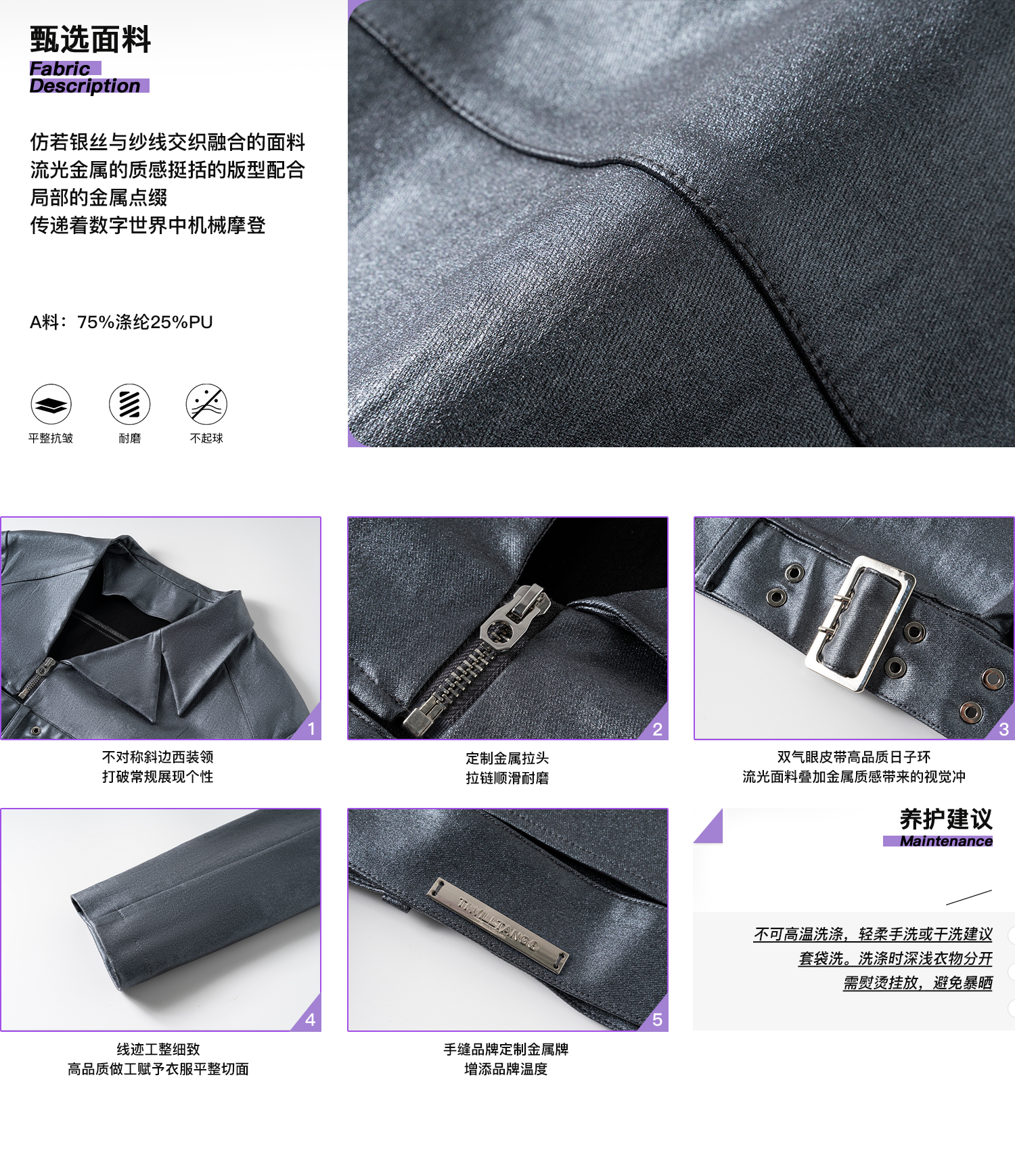 启世录TIWILLTANG“烁隐月光”半领截短皮夹克