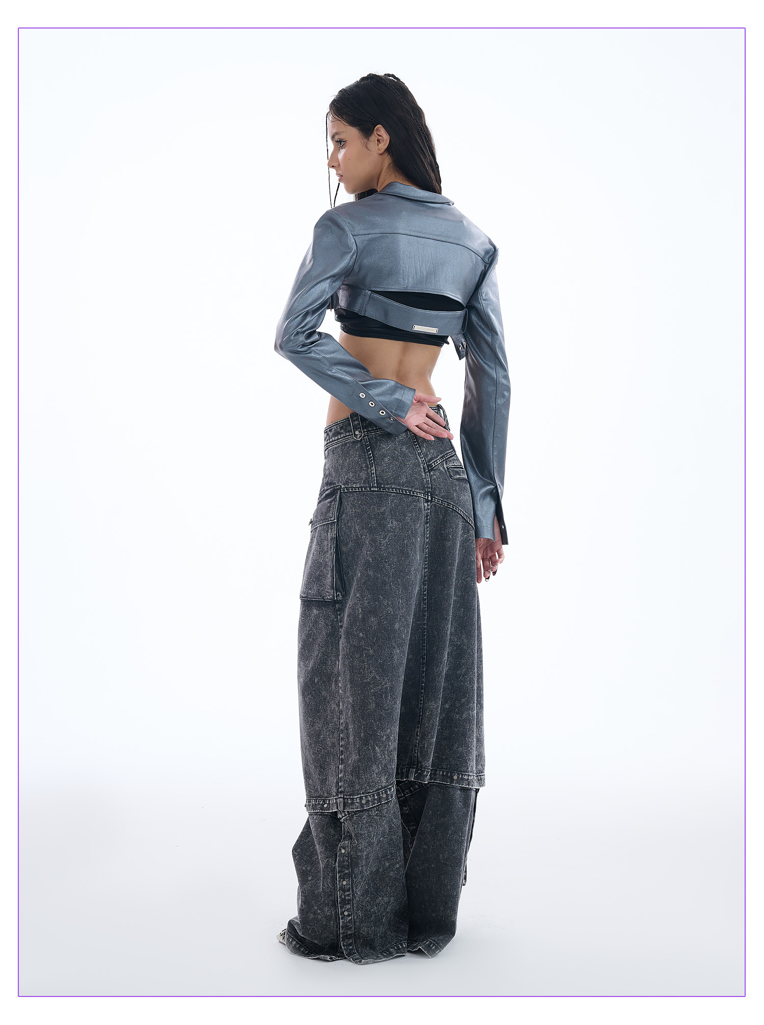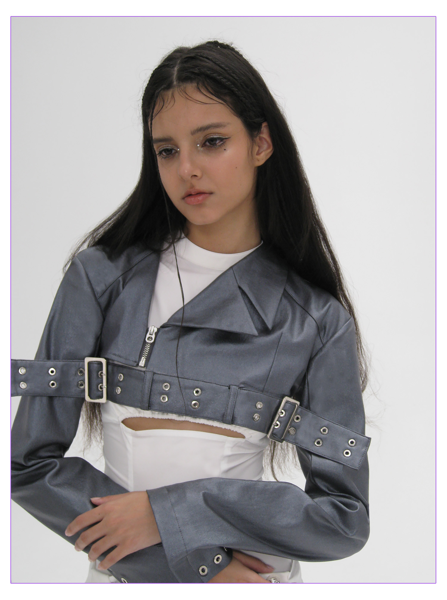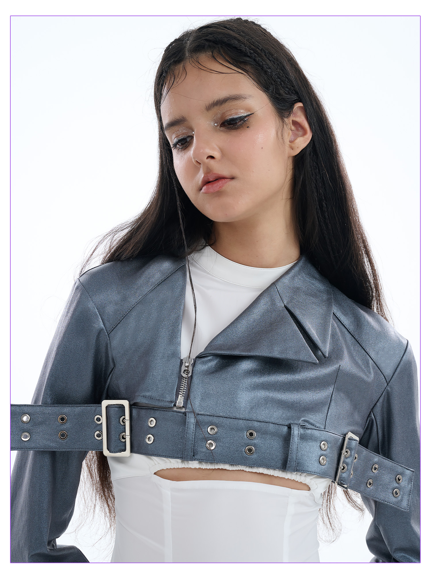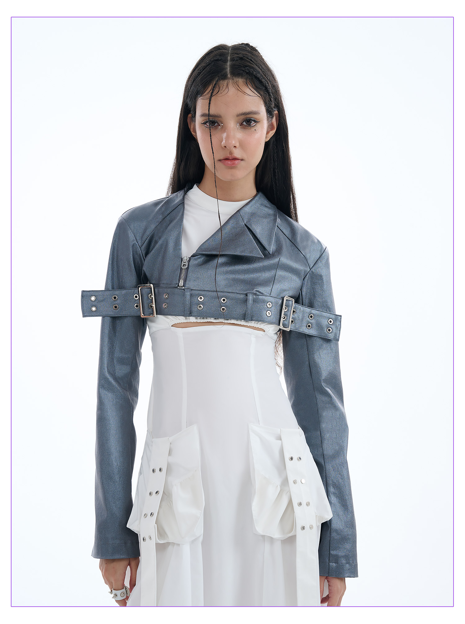 启世录TIWILLTANG“烁隐月光”半领截短皮夹克