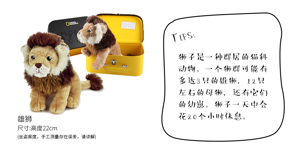 国家地理毛绒玩具动物玩偶礼盒雄狮纪念款