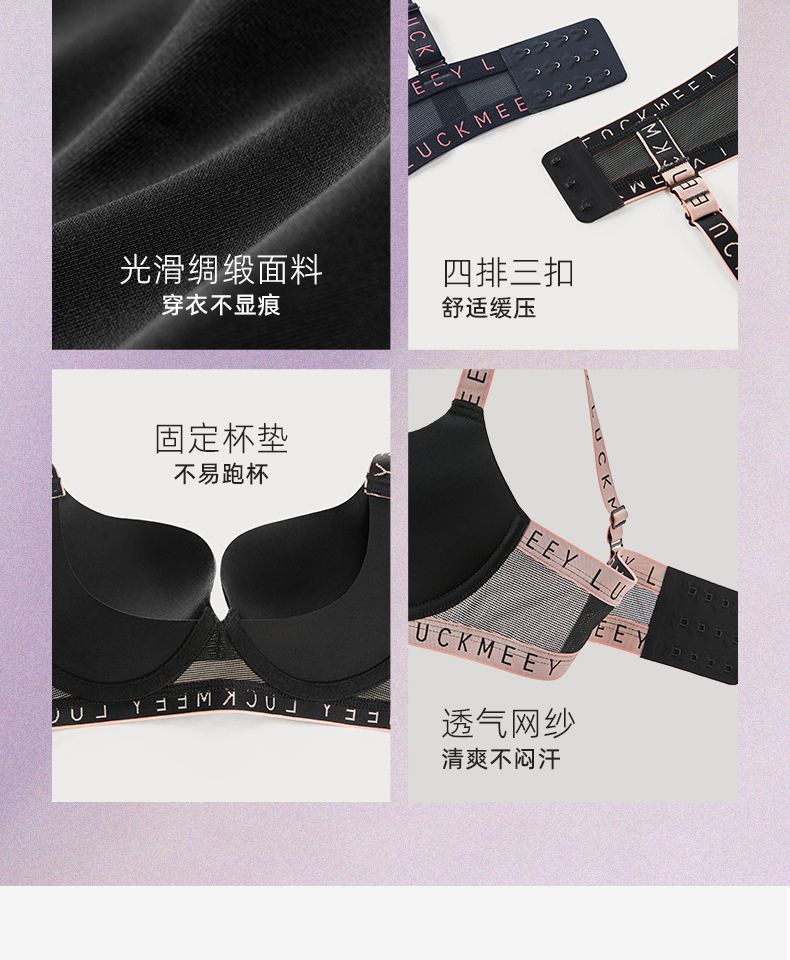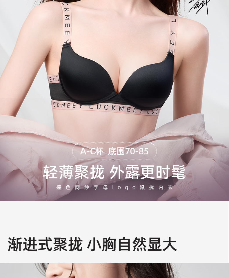 幸棉 内衣女撞色字母肩带聚拢轻薄透气小胸显大美背文胸