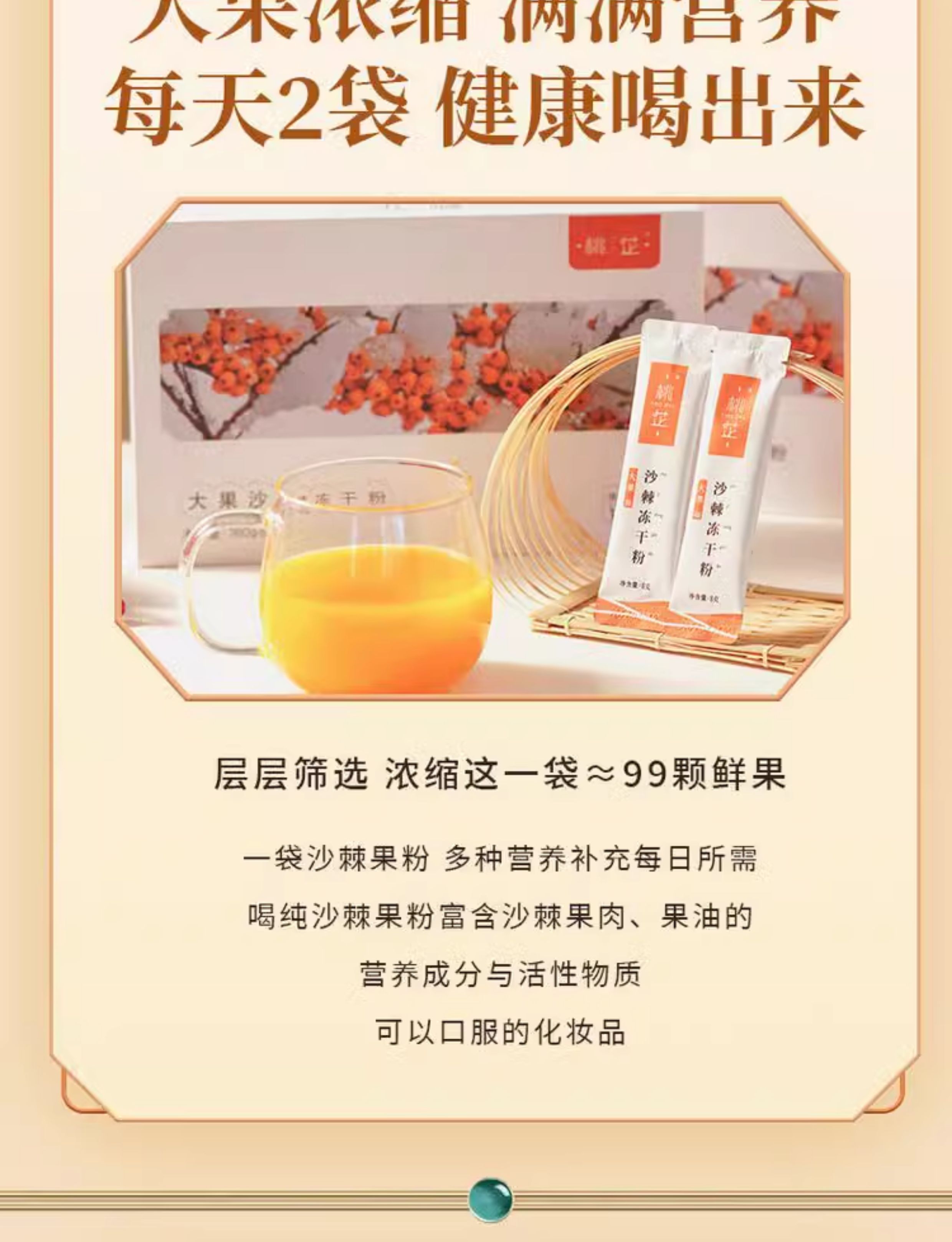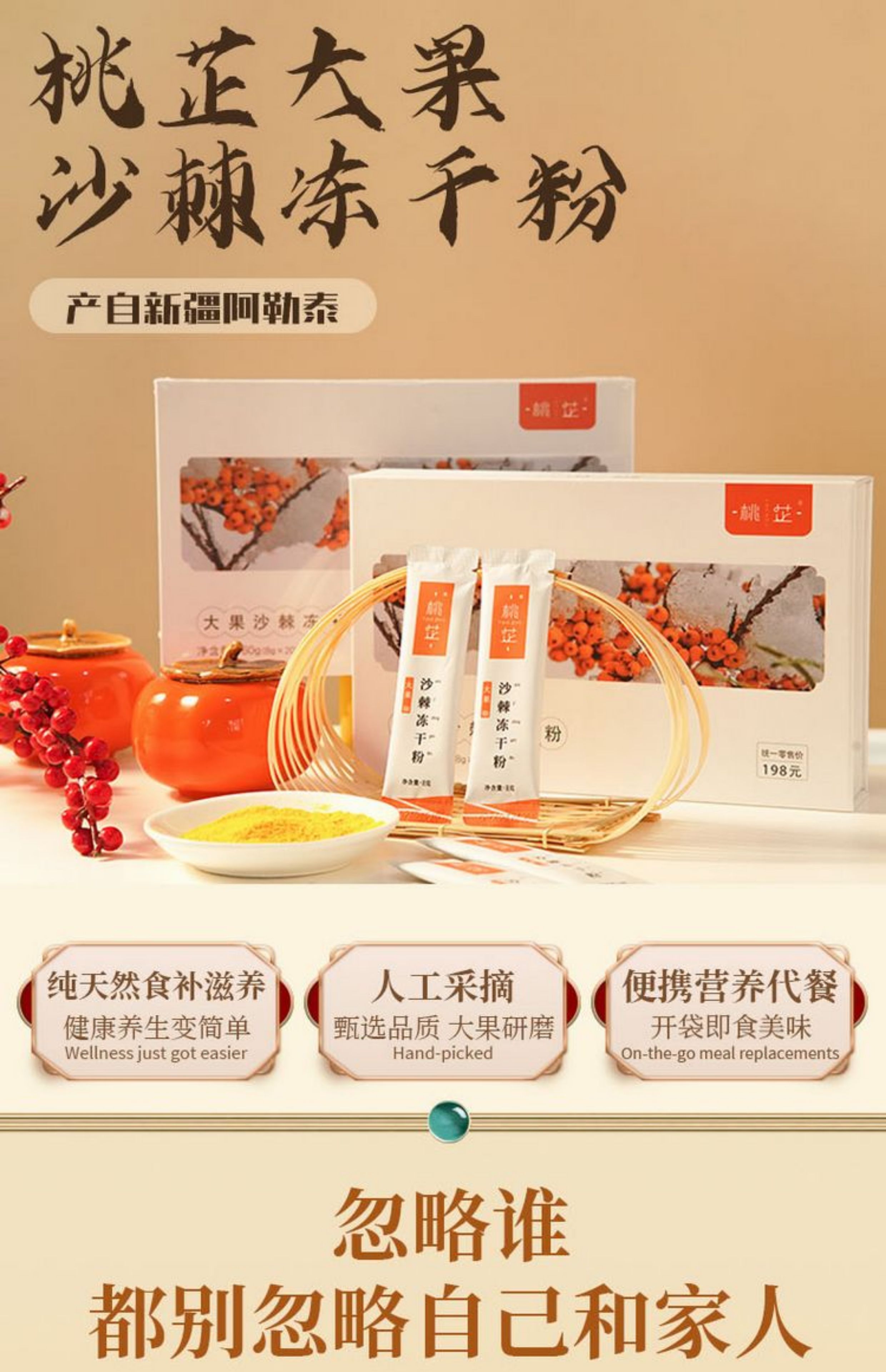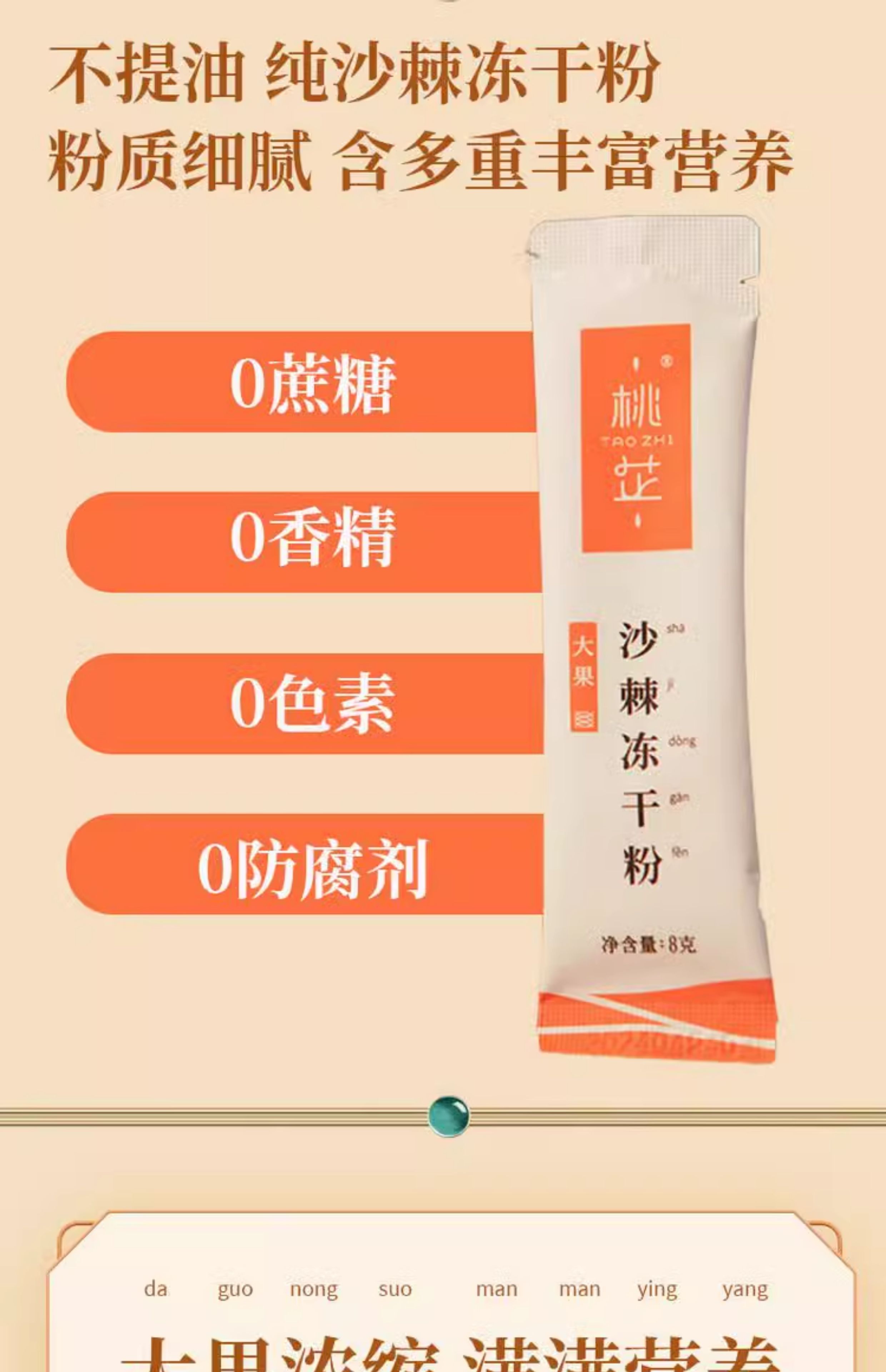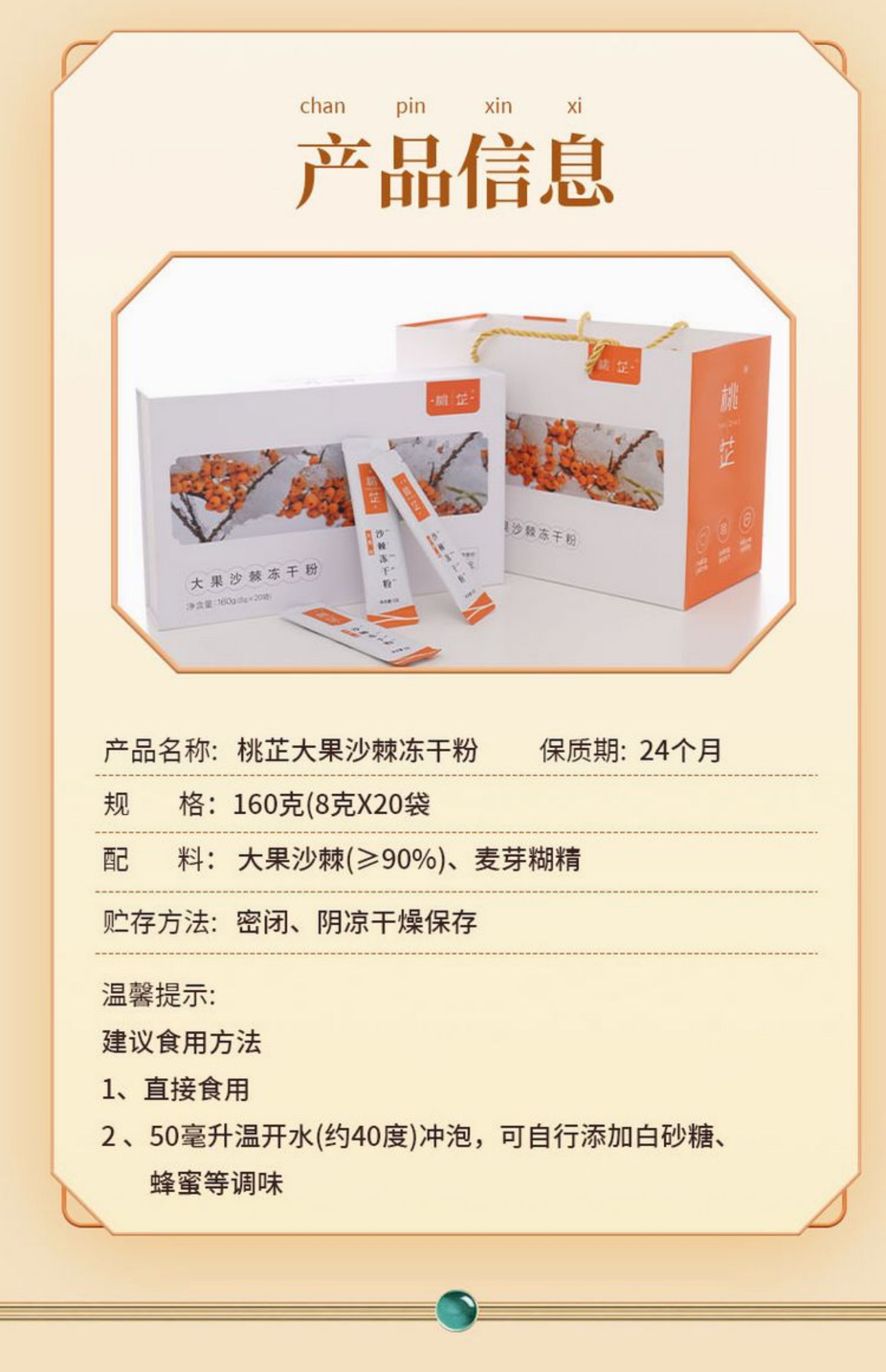 新疆阿勒泰桃芷大果沙棘冻干粉质细腻 全营养礼盒 8g*20袋/盒AWJM