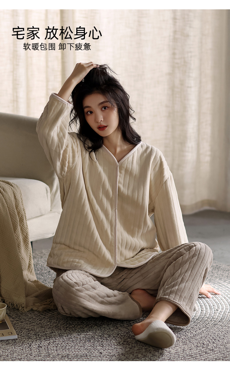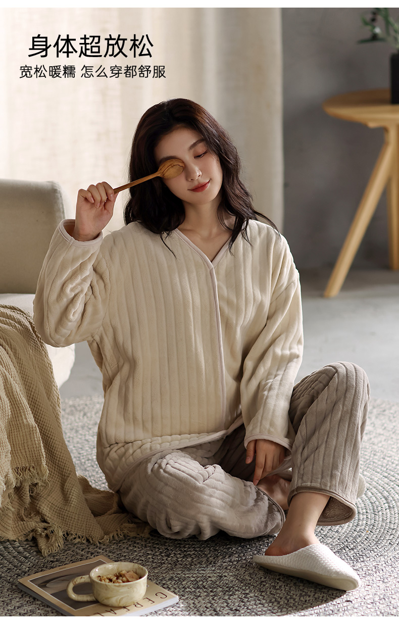 法黛琪冬季法兰绒女款睡衣保暖套装 551278 商品图1