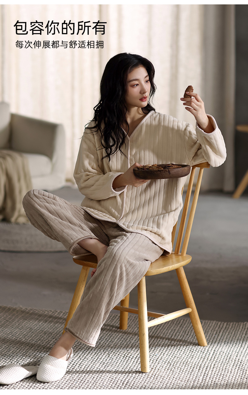 法黛琪冬季法兰绒女款睡衣保暖套装 551278 商品图4
