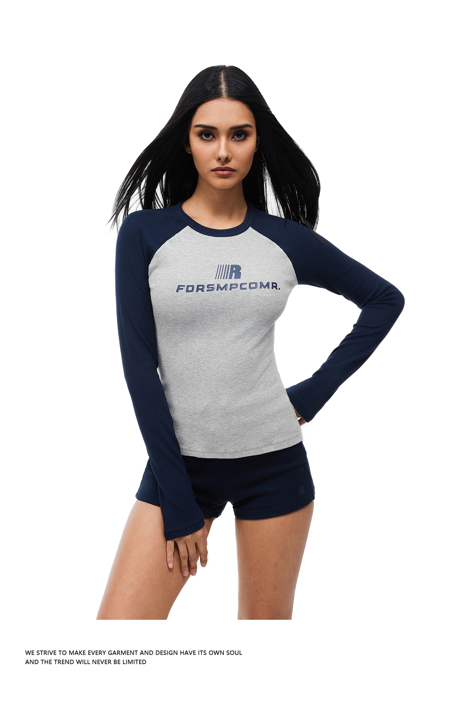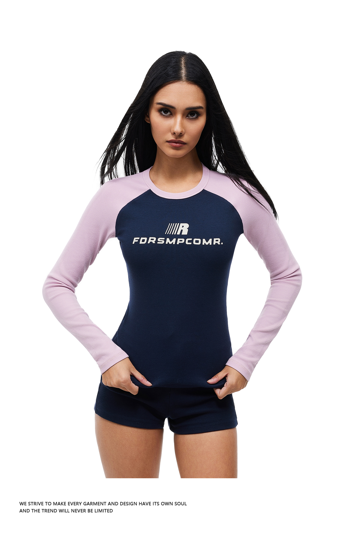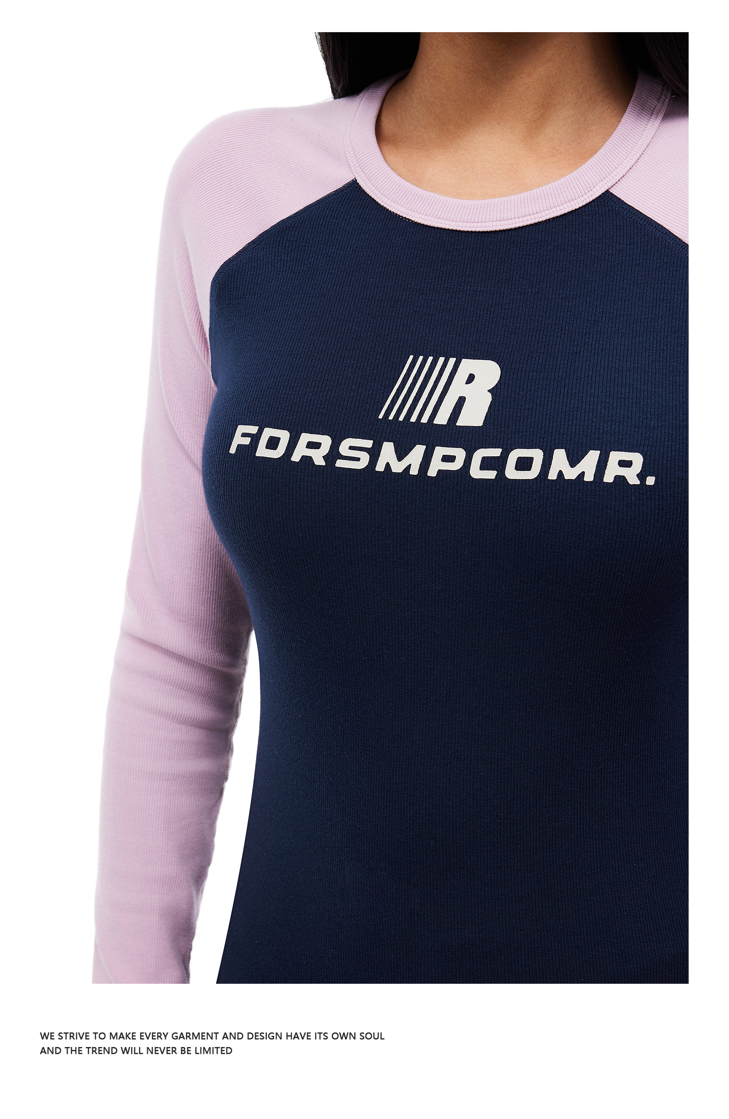 FDR官方店 插肩基础R字排版长袖T恤女秋季辣妹运动修身打底上衣