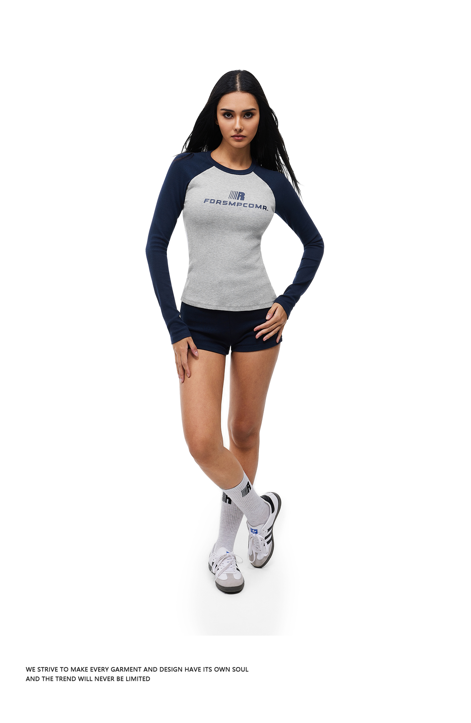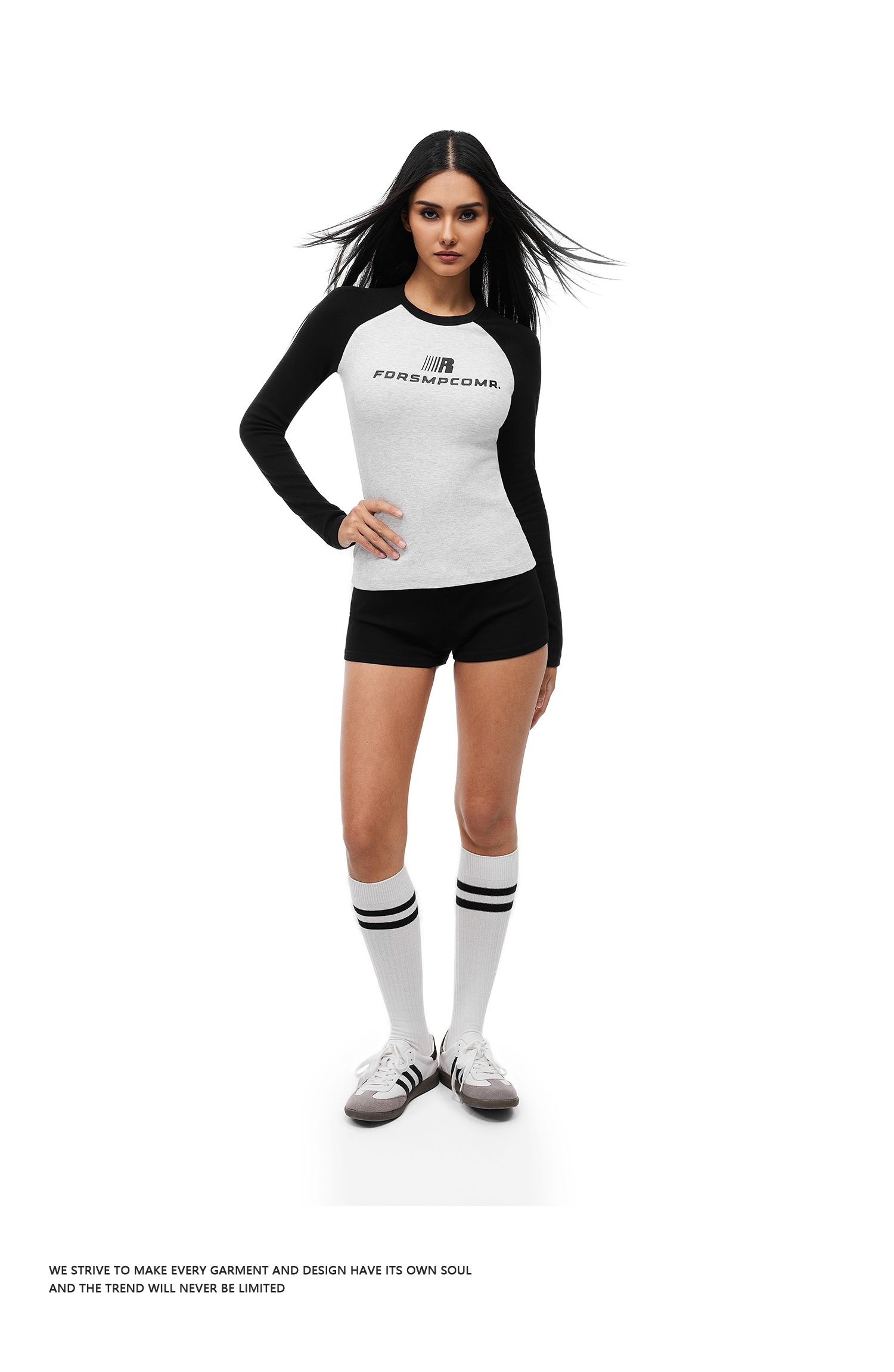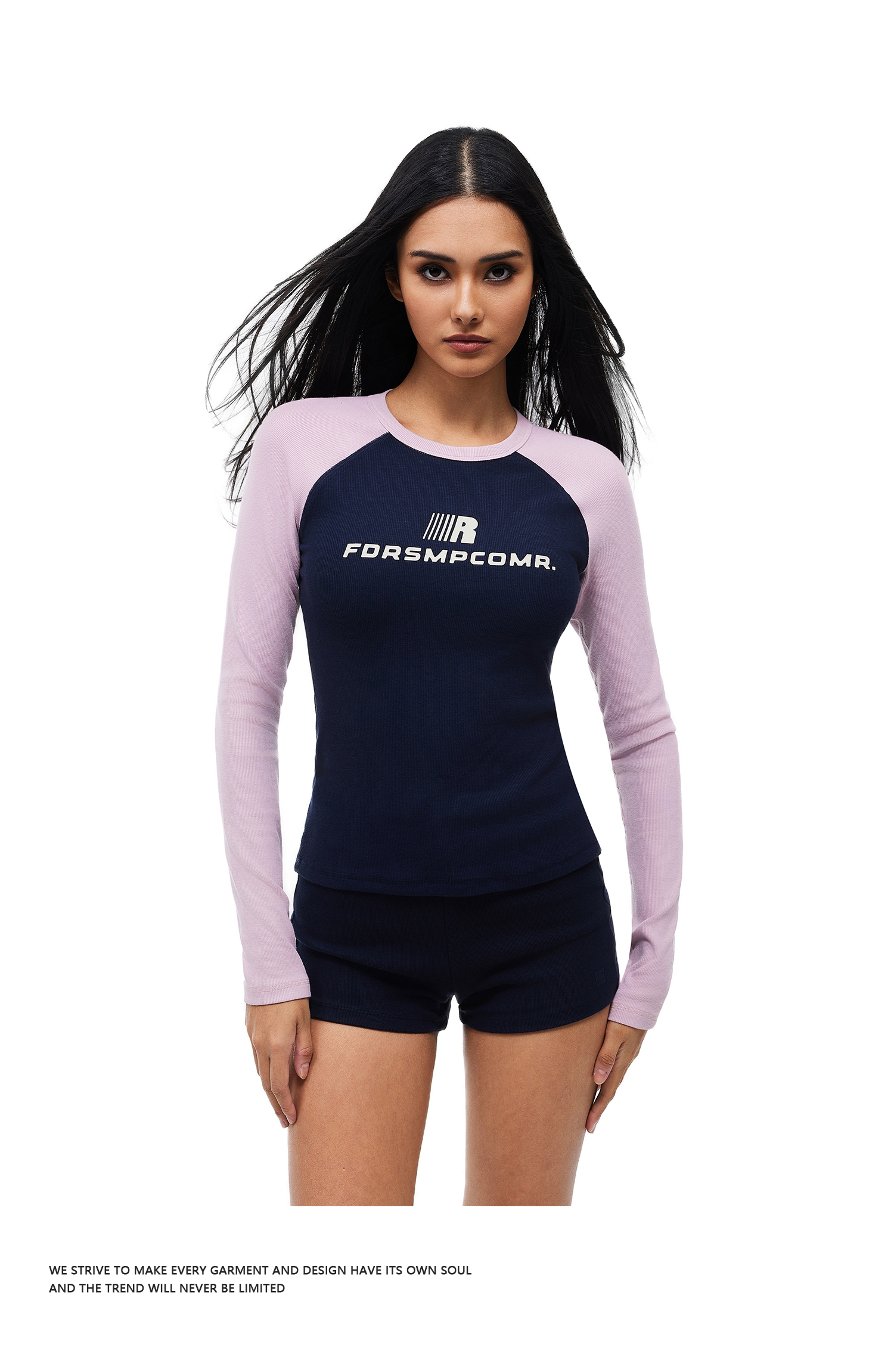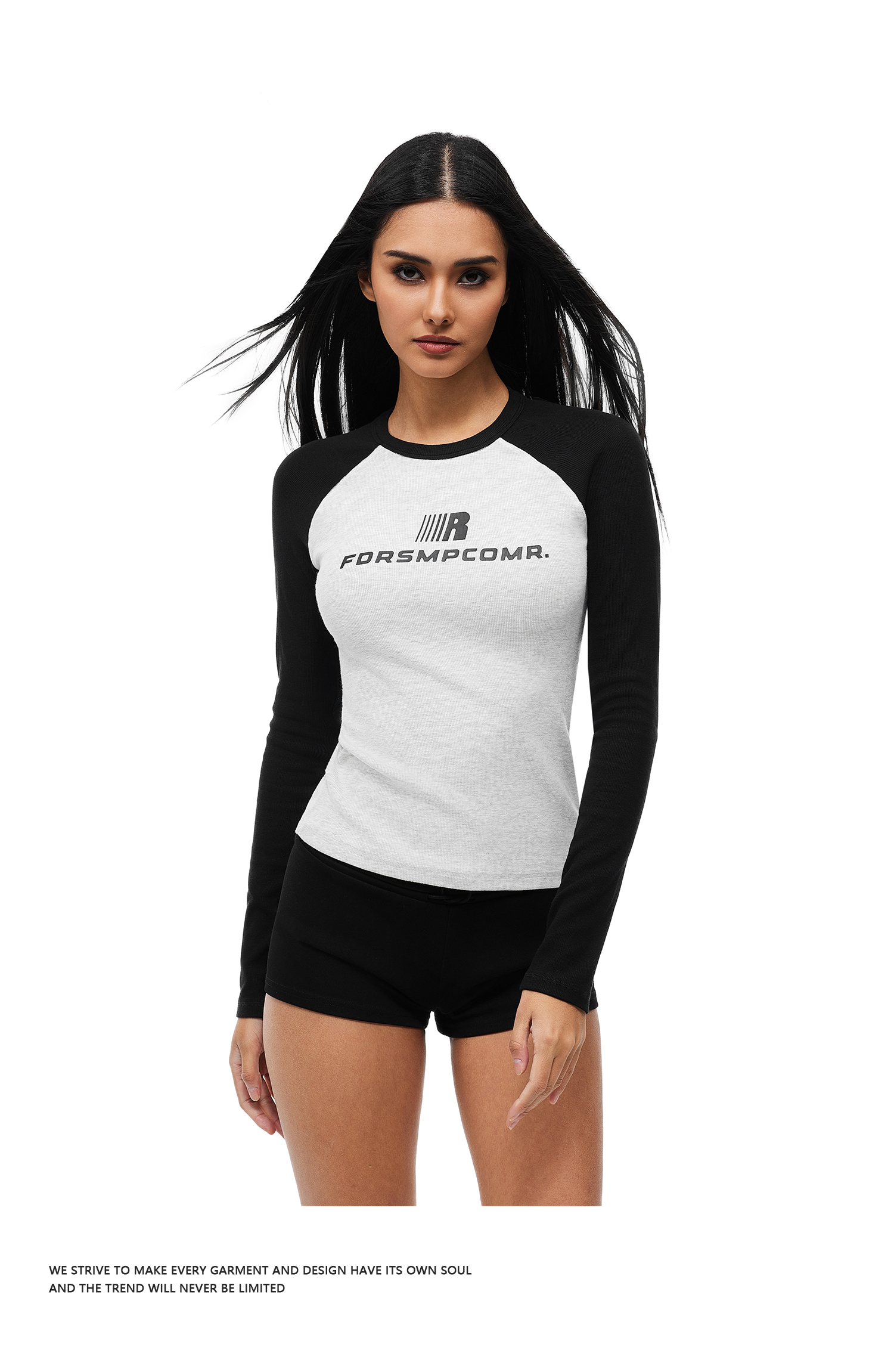 FDR官方店 插肩基础R字排版长袖T恤女秋季辣妹运动修身打底上衣