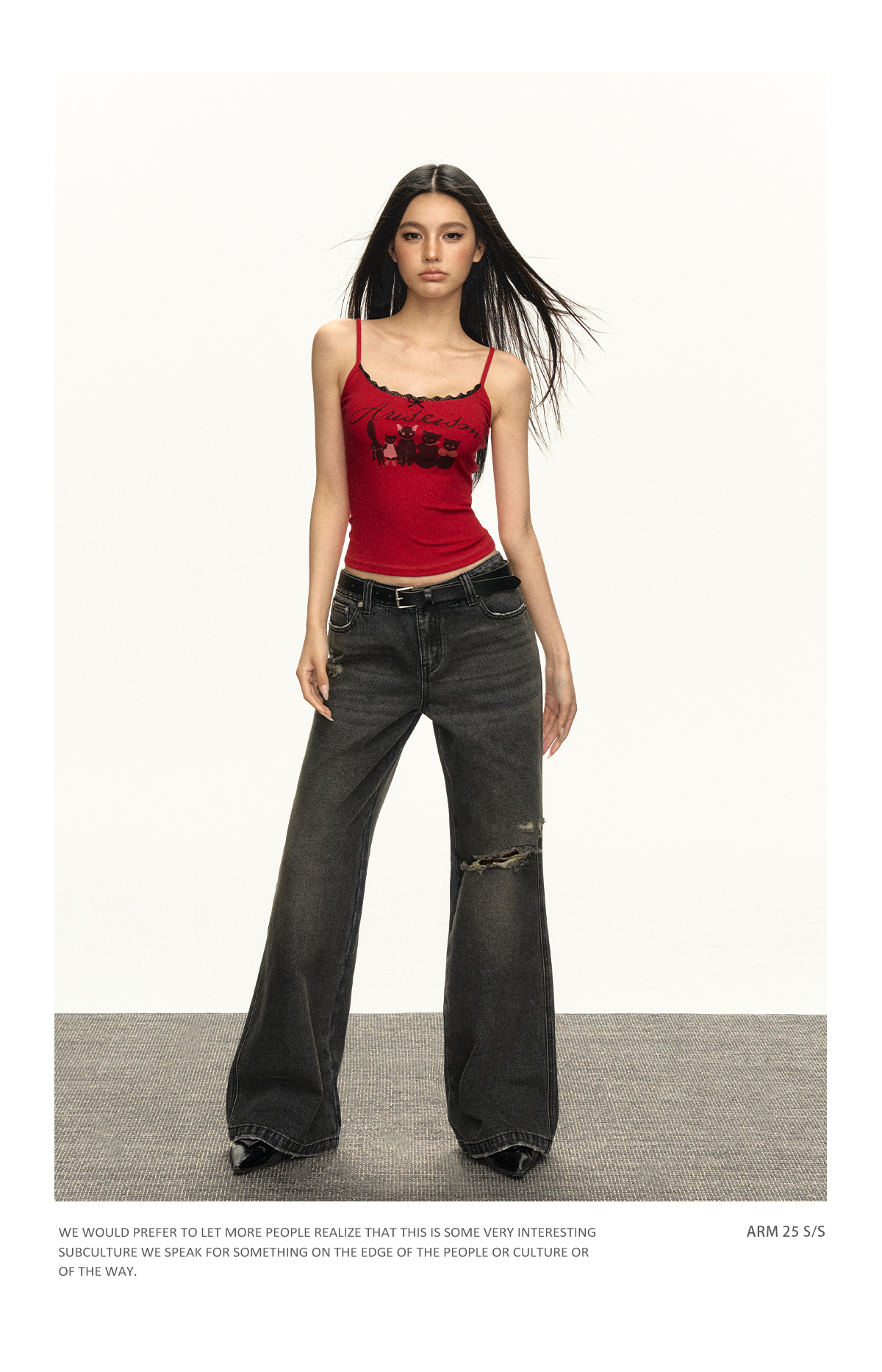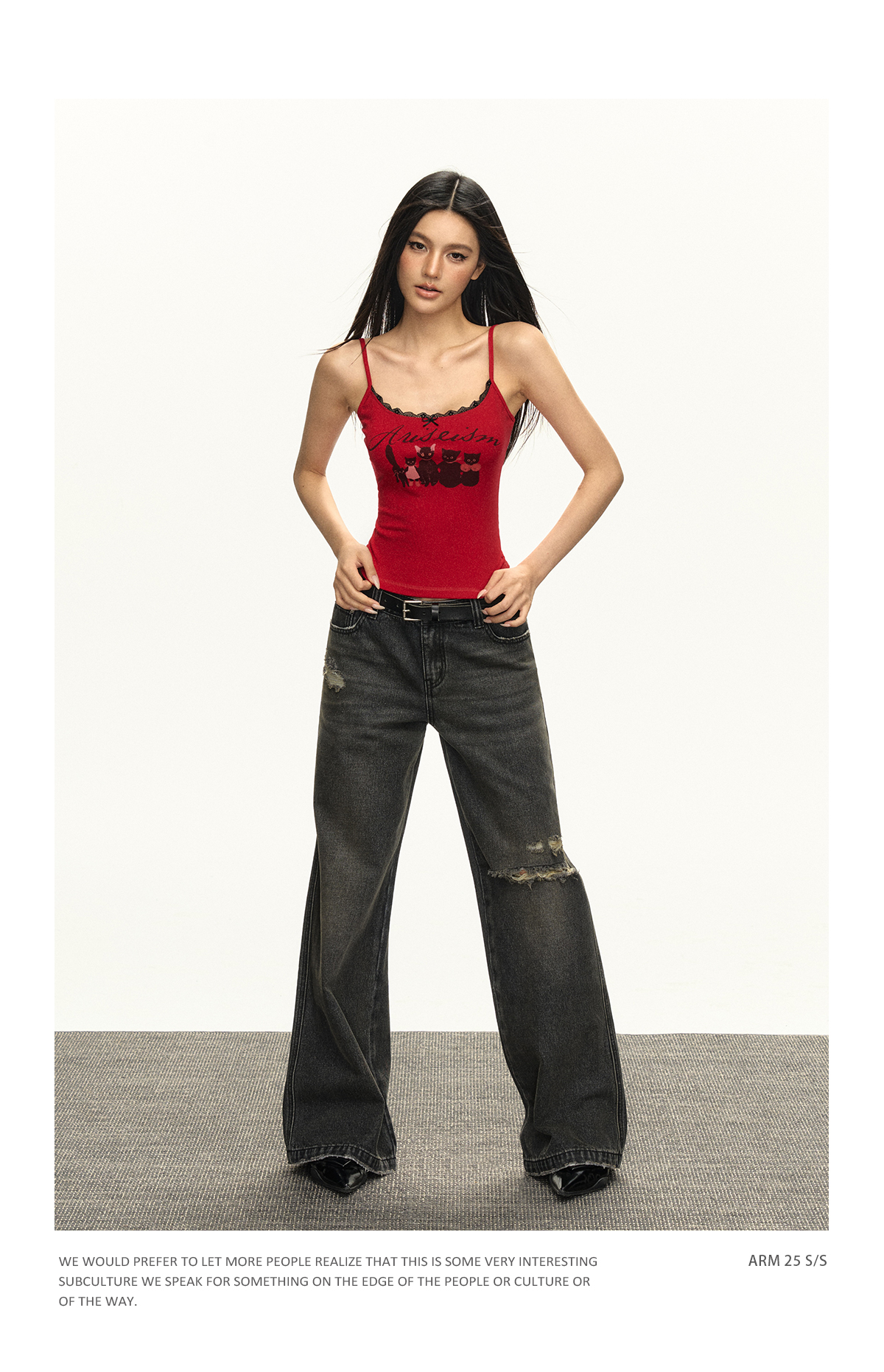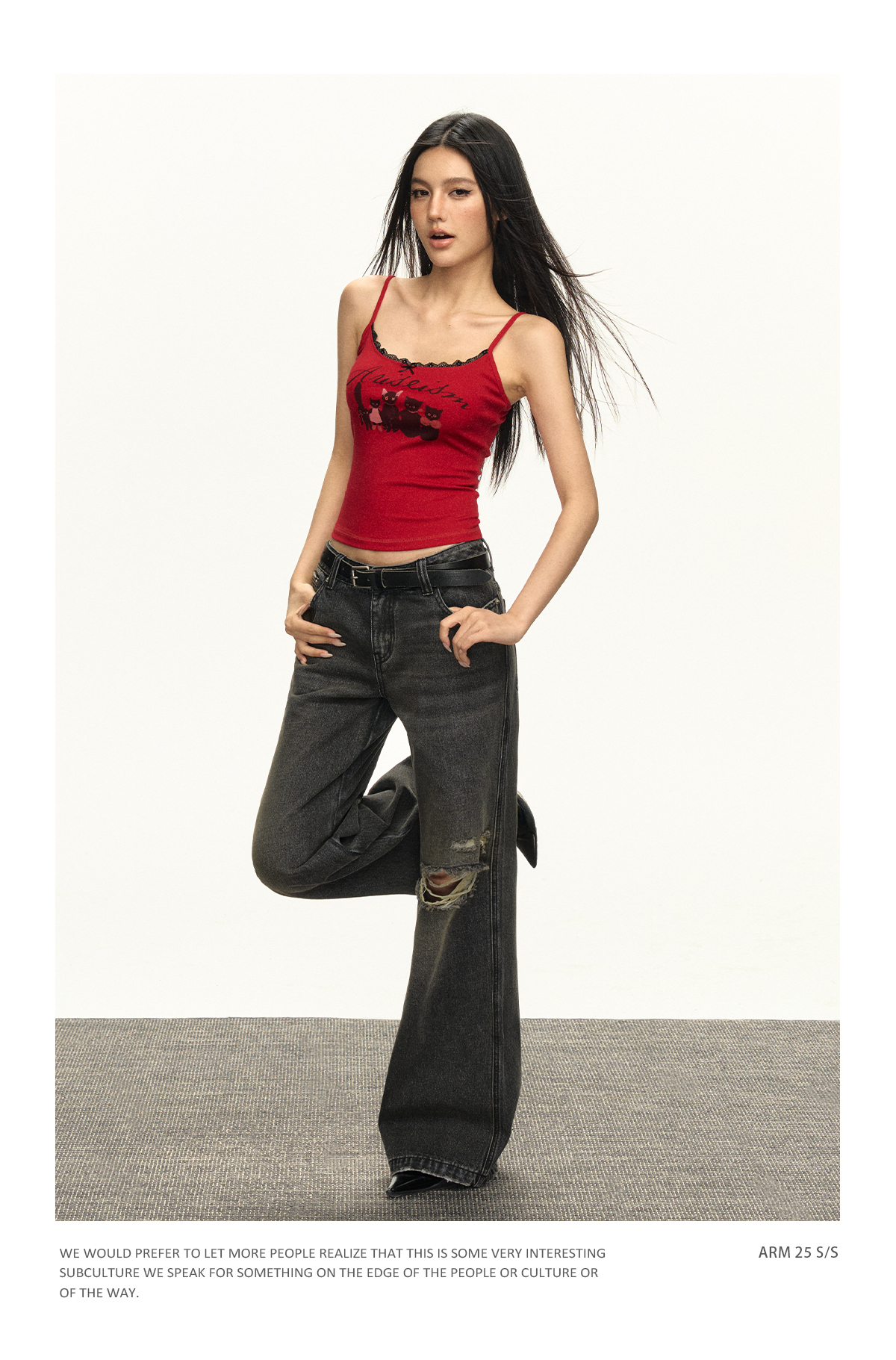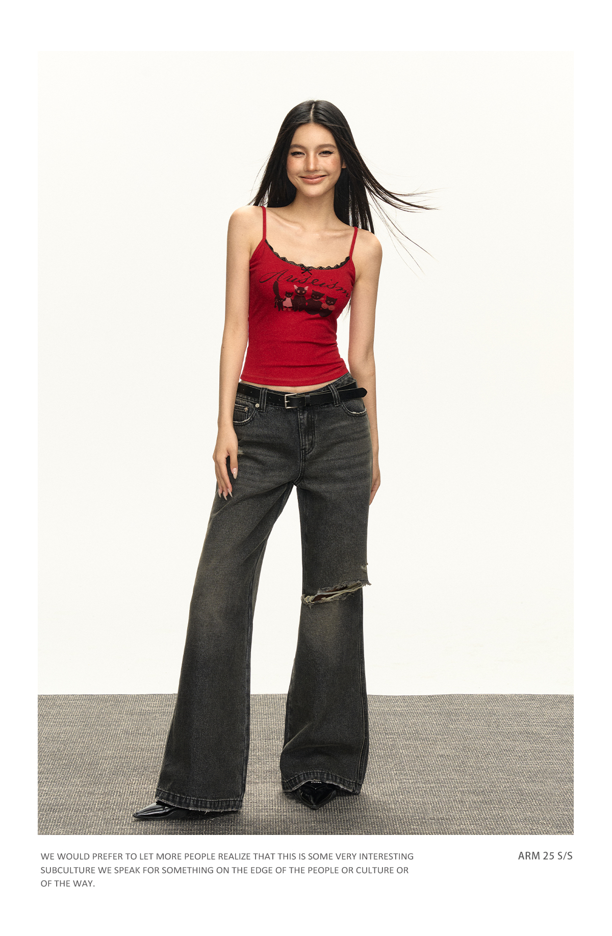 Ariseism美式复古设计感猫咪印花蕾丝吊带背心女夏季新款外穿上衣