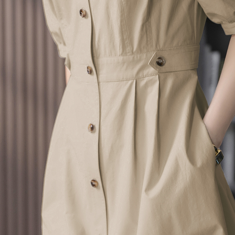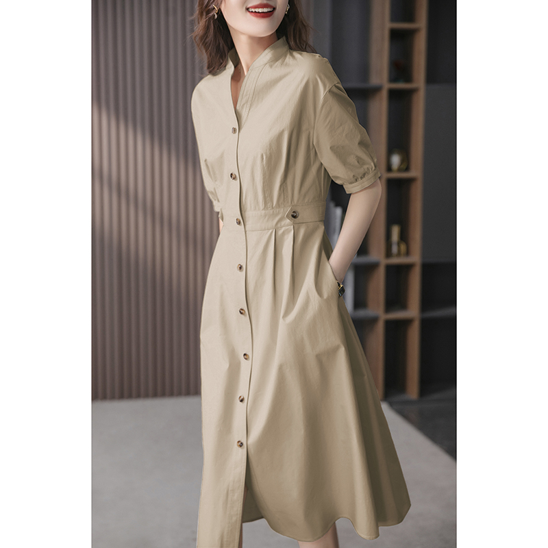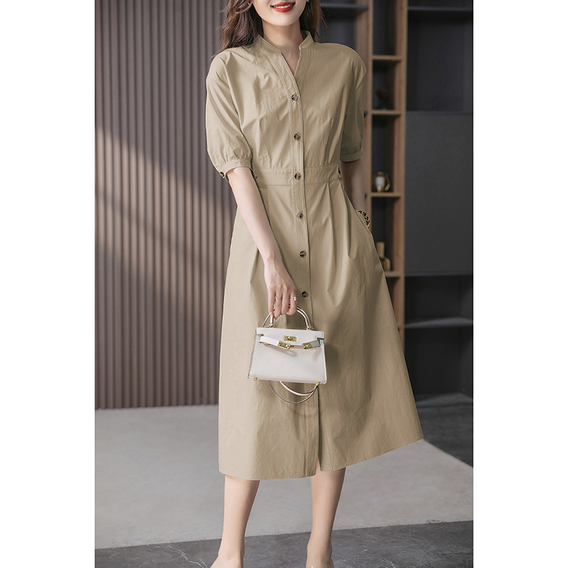 87437原形高级感V领连衣裙女2024春夏季新款韩版中长款高腰显瘦衬衫裙