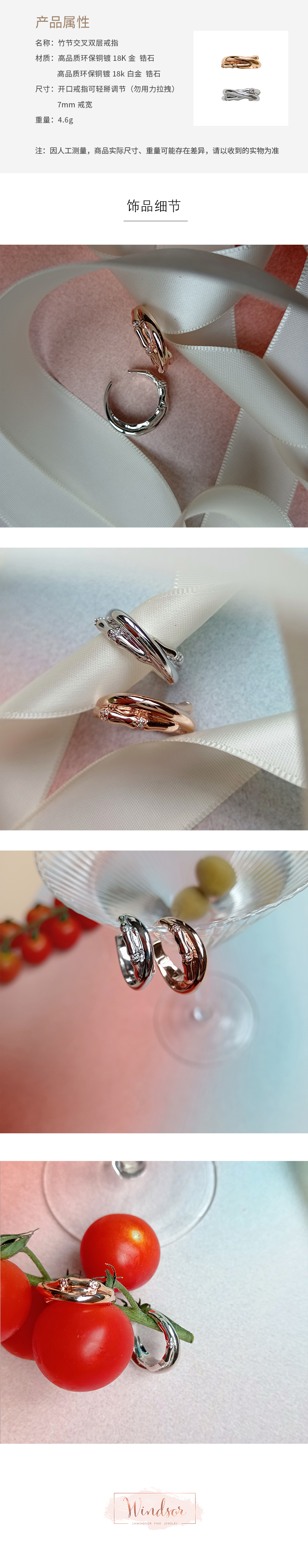 LHWINDSOR温莎珠宝 竹节交叉双层戒指