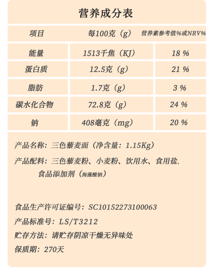贵州省惠水县悦绿野三色藜麦面1.15kg/箱