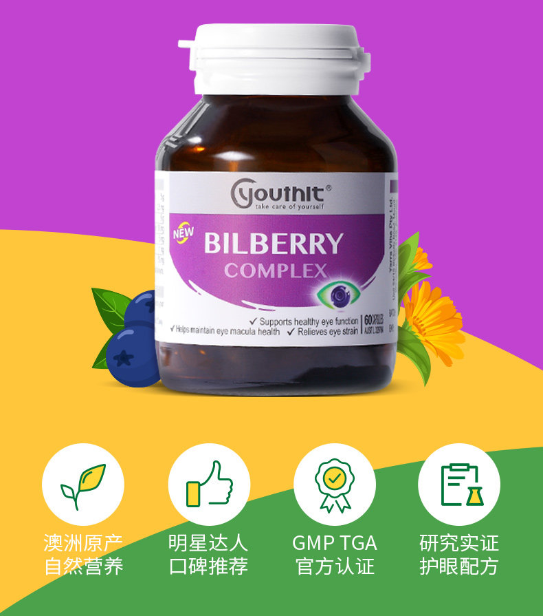 Youthit优思益蓝莓护眼丸葡萄籽奶蓟草胶囊蔓越莓 职场常备套装