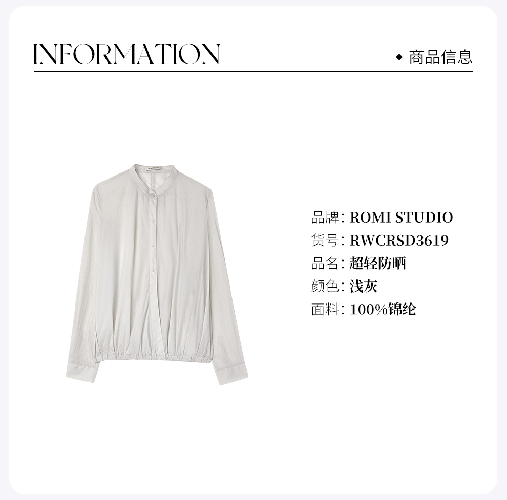 ROMI STUDIO 防晒UPF50轻量化超轻薄微皱肌理防晒外套RWCRSD3619
