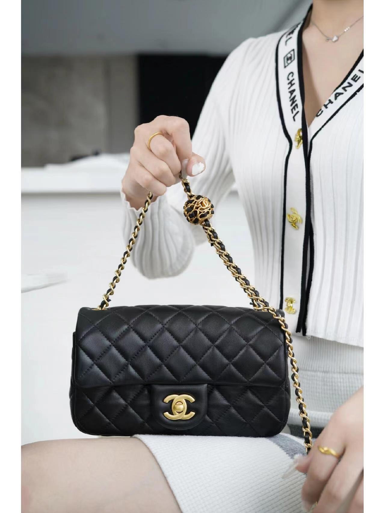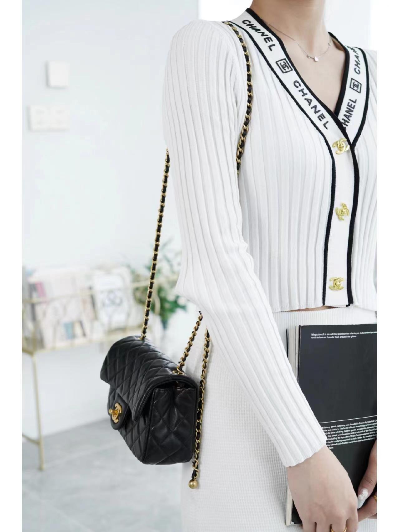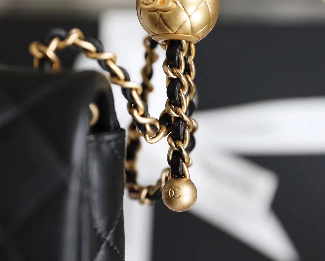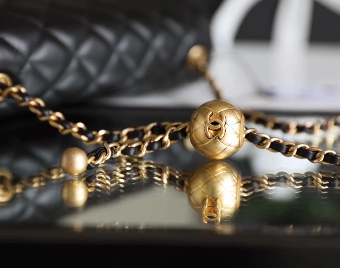 为吸引眼球的肩带菱格纹小金属圆球设计,