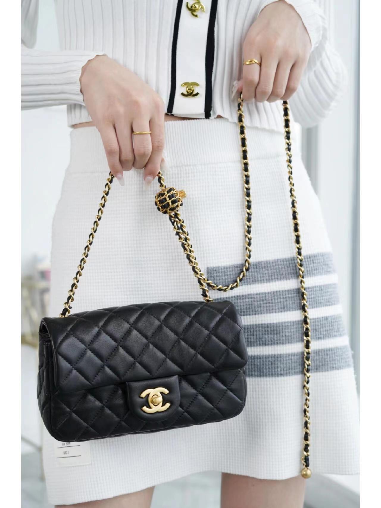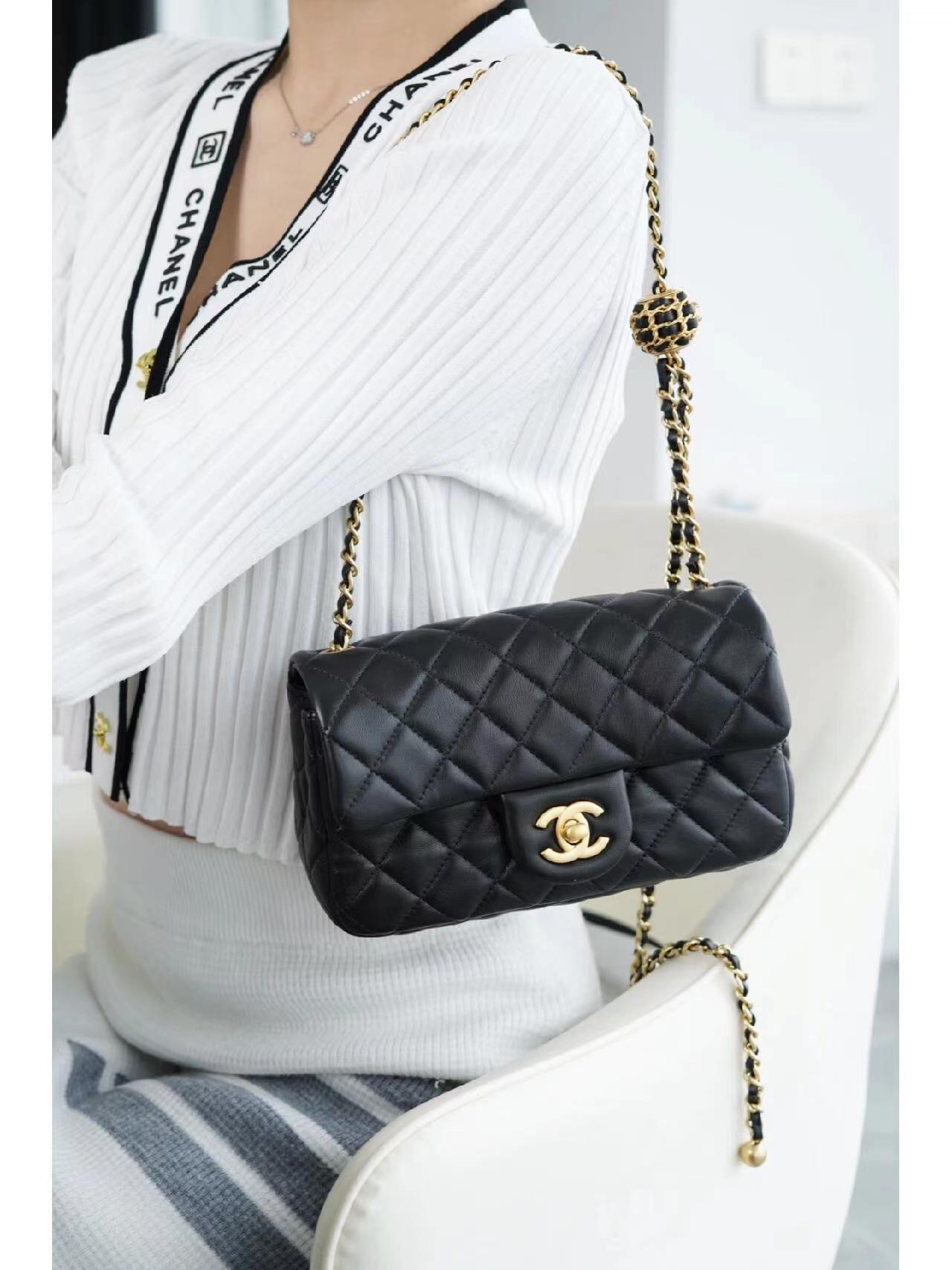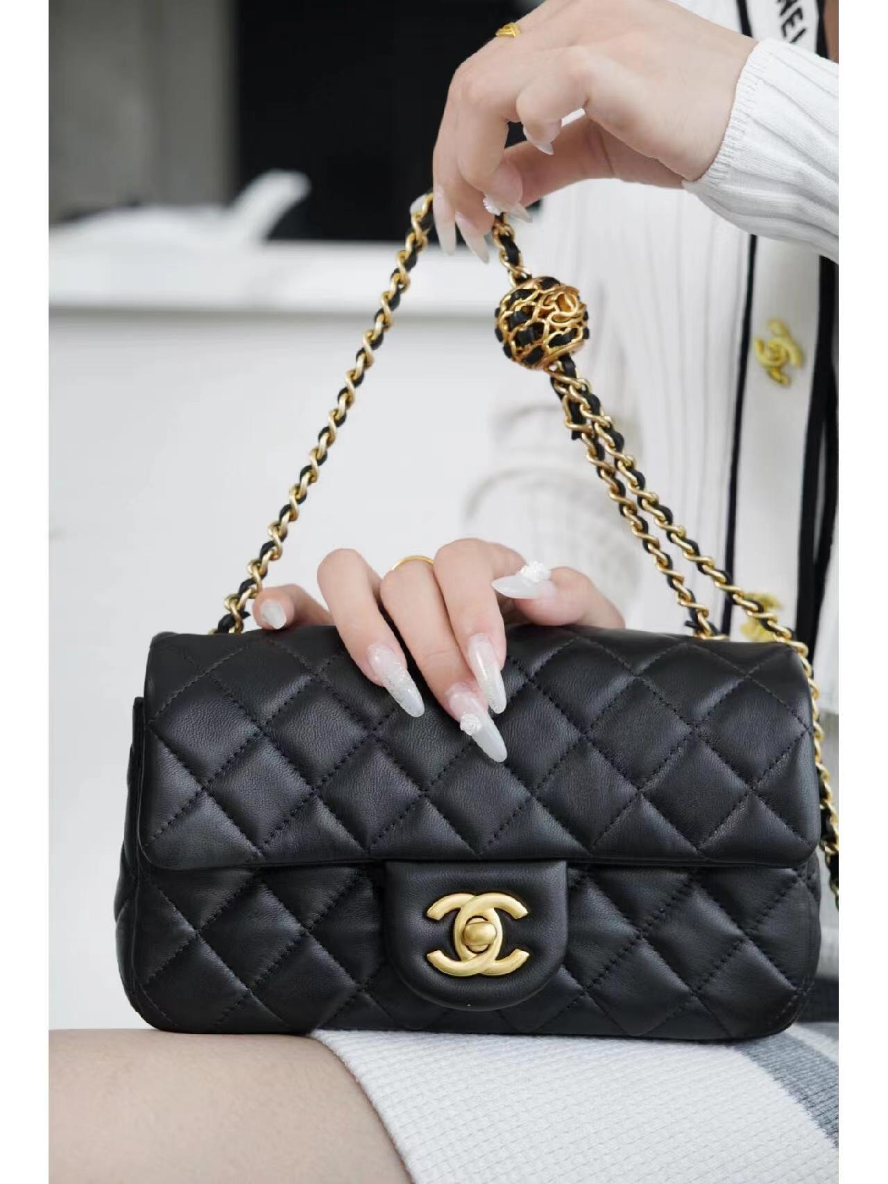 为吸引眼球的肩带菱格纹小金属圆球设计,